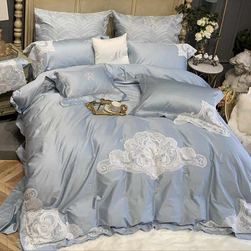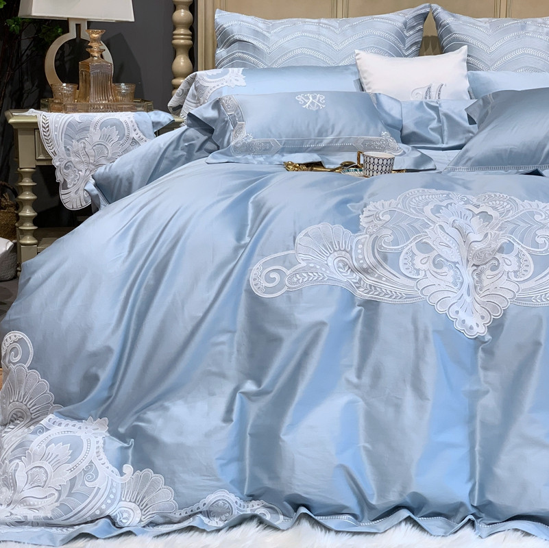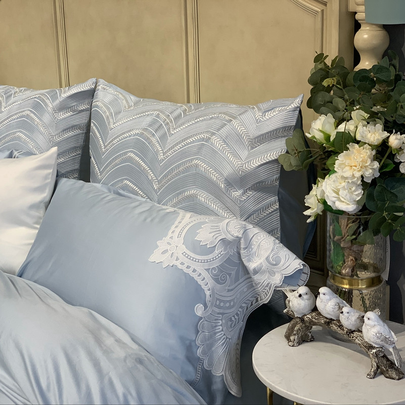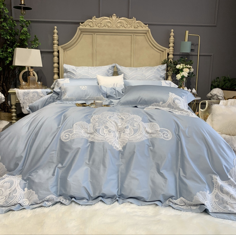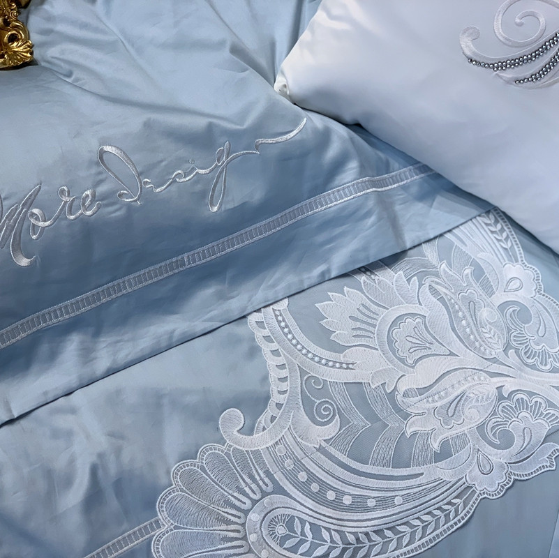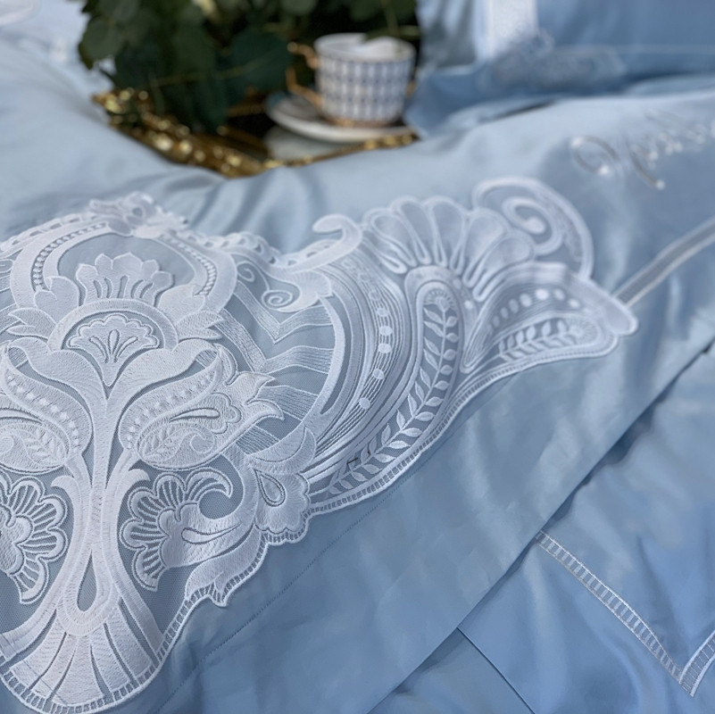 缔缦家纺 2022新款100支长绒棉蕾丝系列四件套-塞拉 雾霾蓝