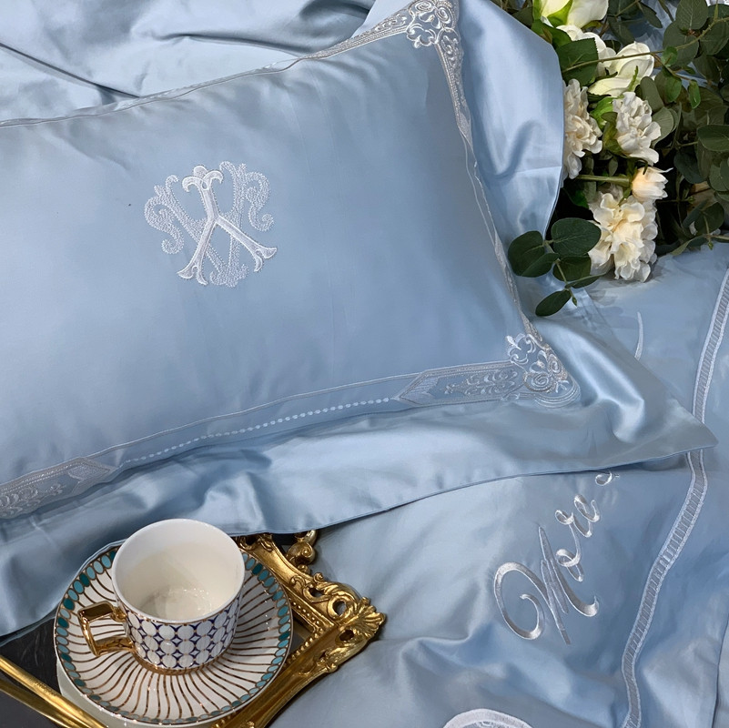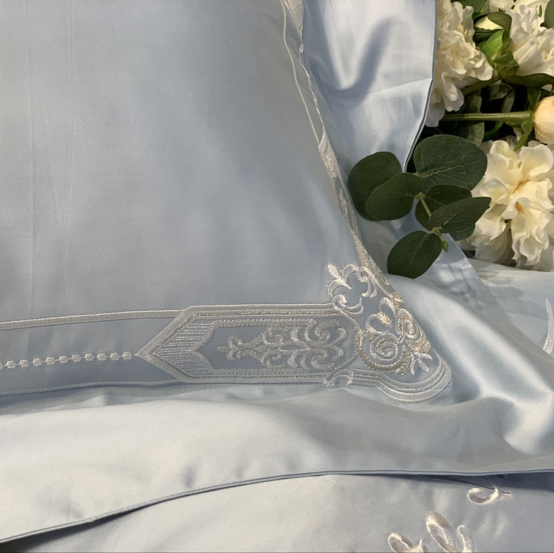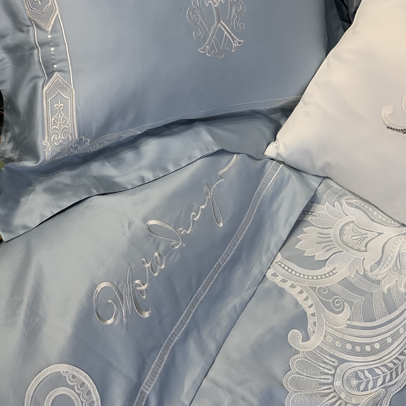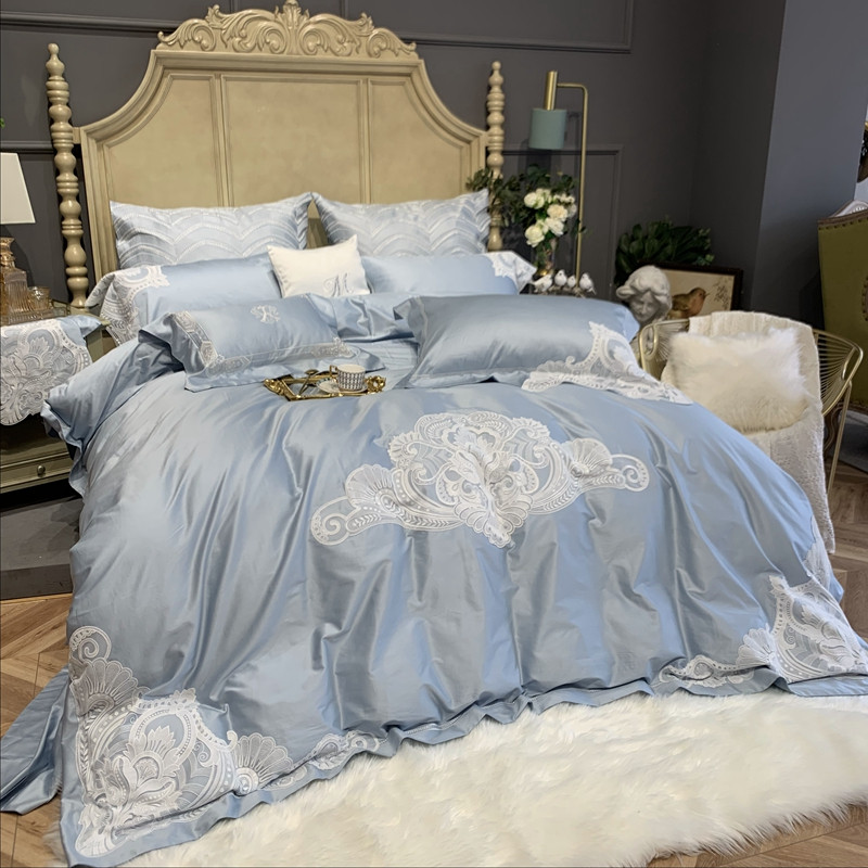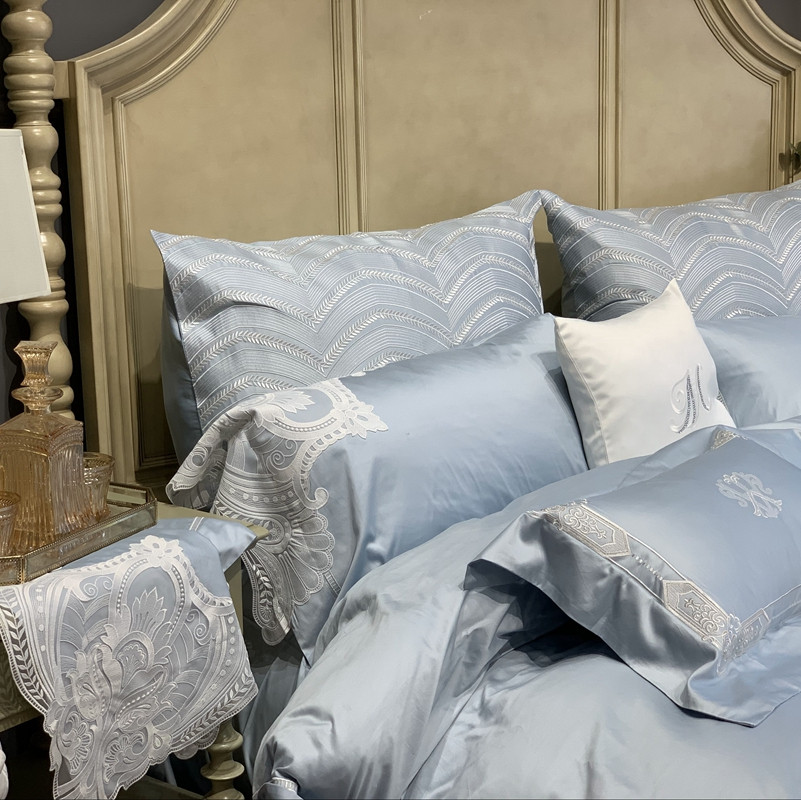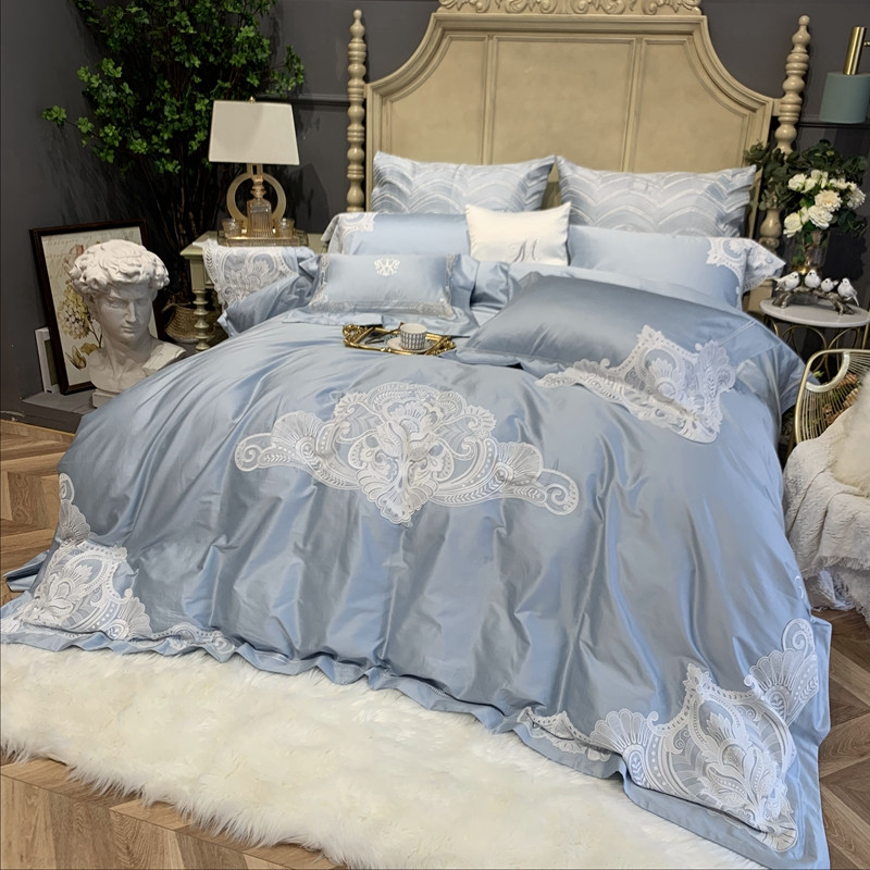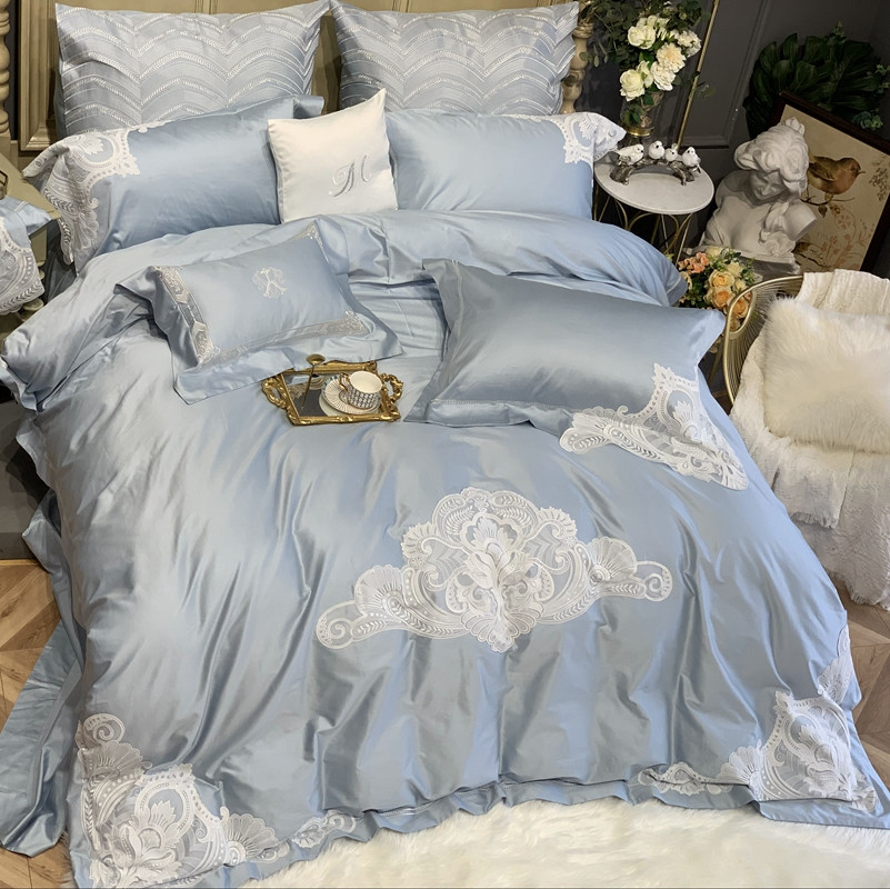 缔缦家纺 2022新款100支长绒棉蕾丝系列四件套-塞拉 雾霾蓝