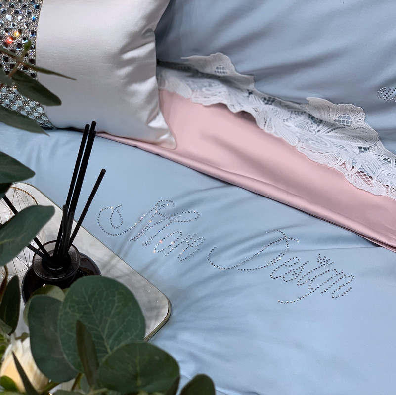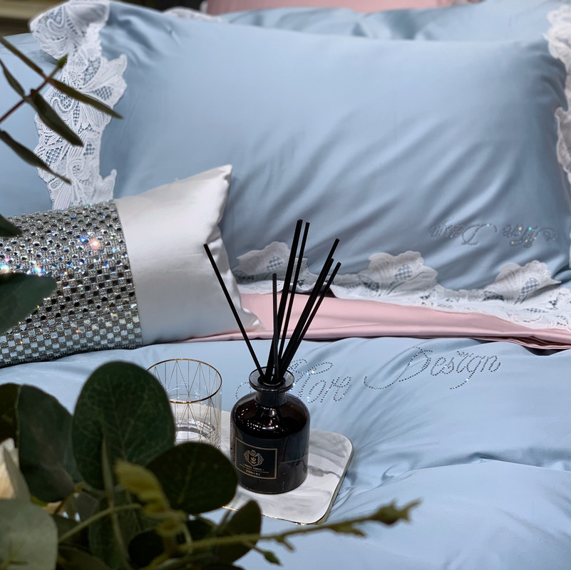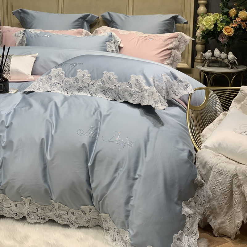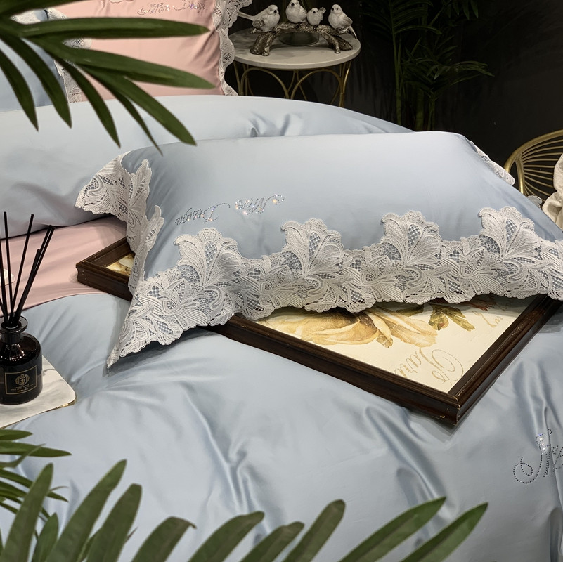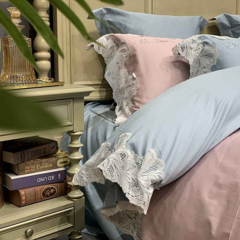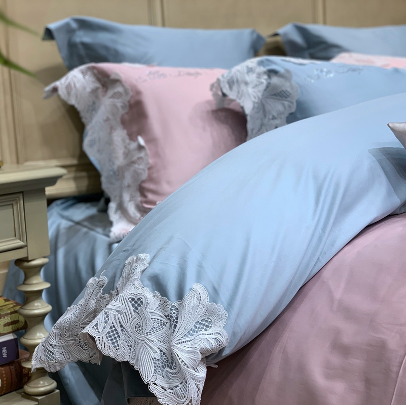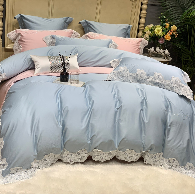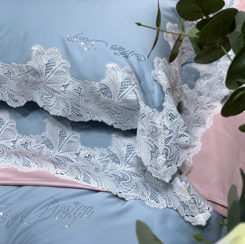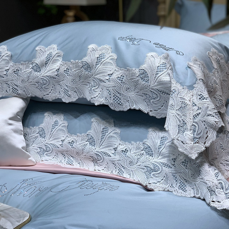 缔缦家纺 2022新款100支长绒棉蕾丝系列四件套-莎桦 雾霾蓝