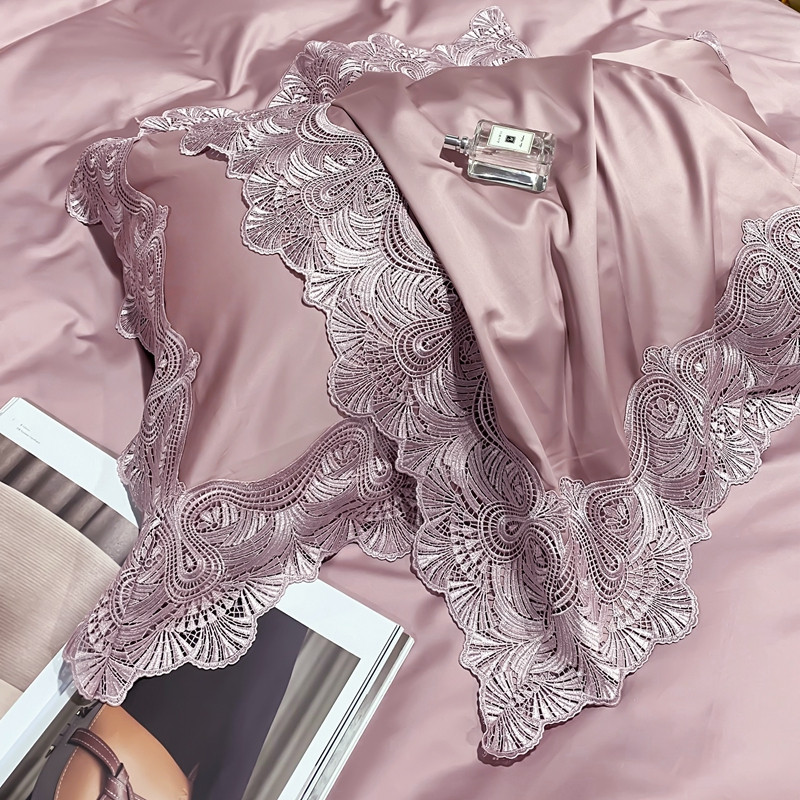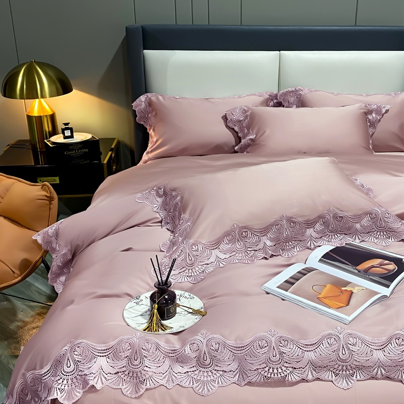 缔缦家纺 2022新款100支长绒棉蕾丝四件套-夏丽尔公主 豆沙