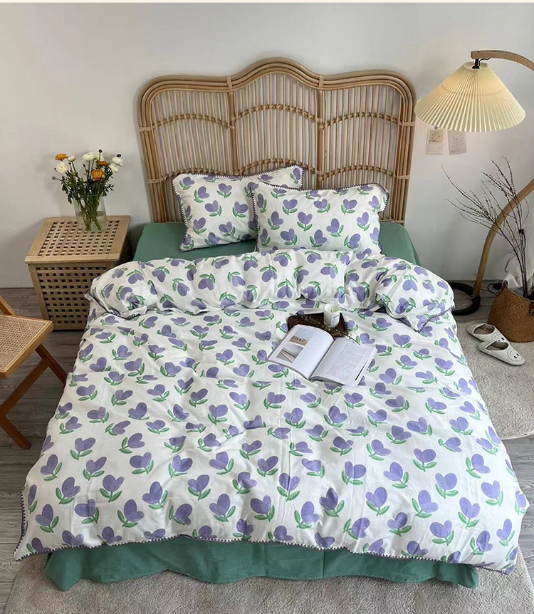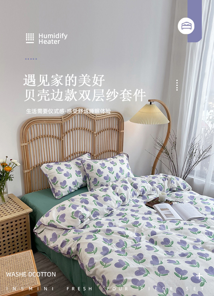(总)源启生活 2022新全棉双层纱贝壳边四件套纯棉三件套