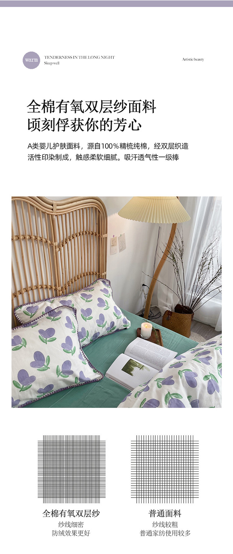 (总)源启 2022新款韩系小清新花边款双层纱四件套,花开,流年,日和,若雨,闲云