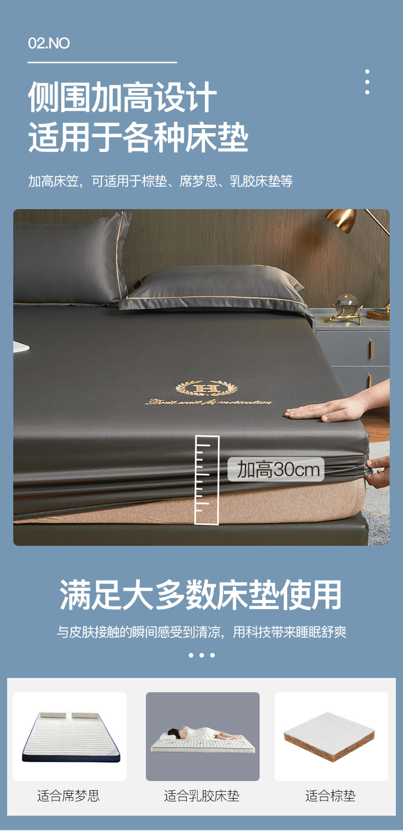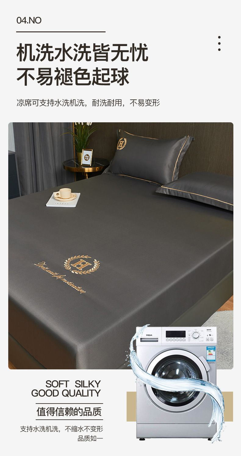商品名称:冰丝床笠单件可水洗夏天床罩防尘罩轻奢床套罩床垫套罩全包三件套