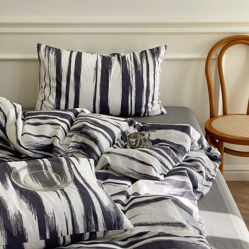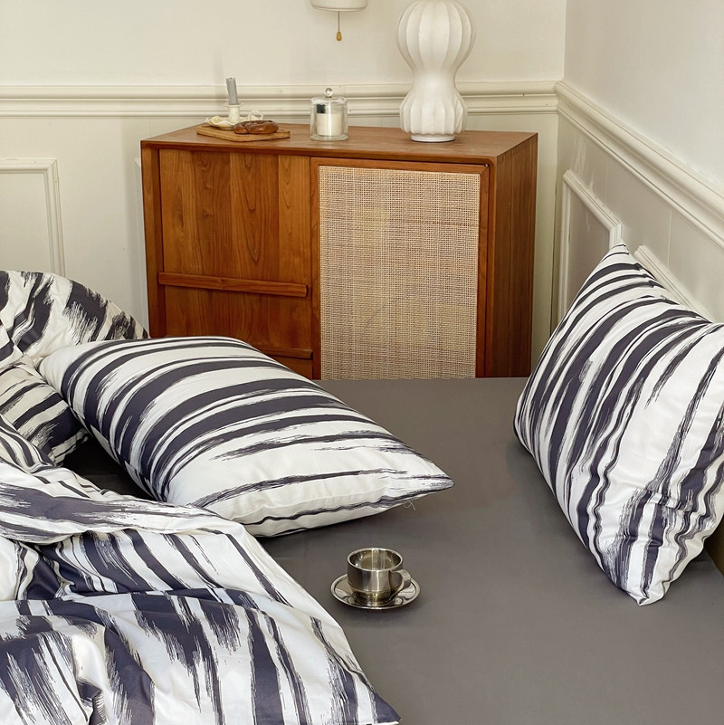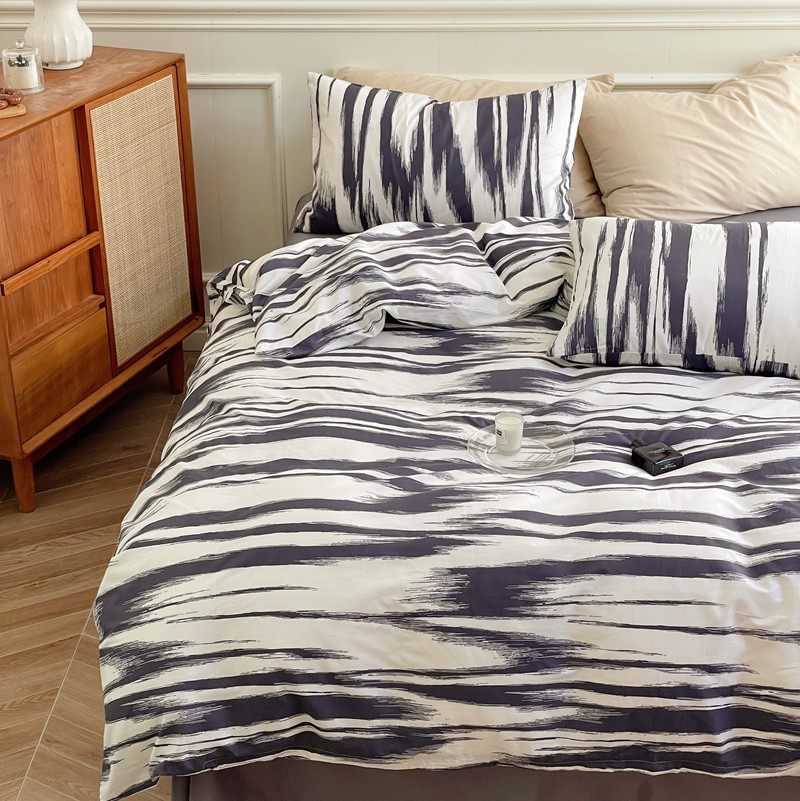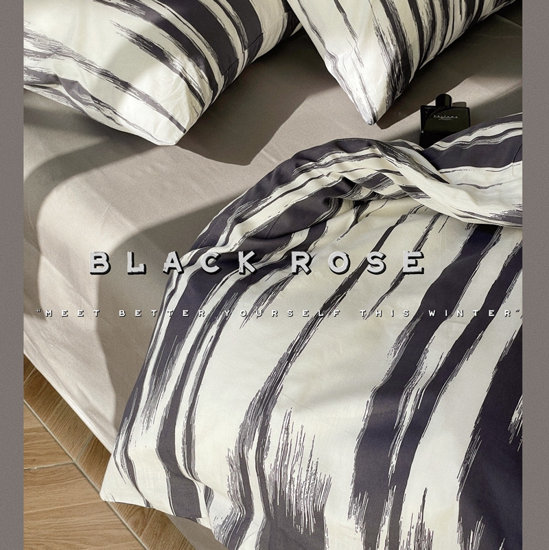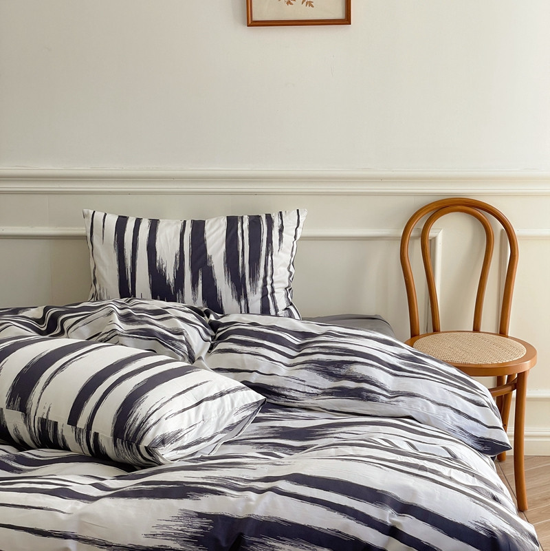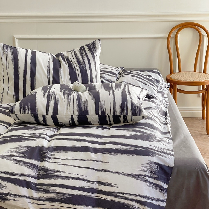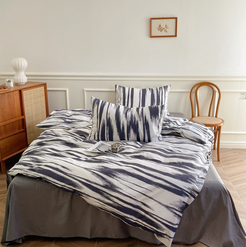 商品名称:窝米2022新款13370全棉四件套花卉系列 水波纹炭黑