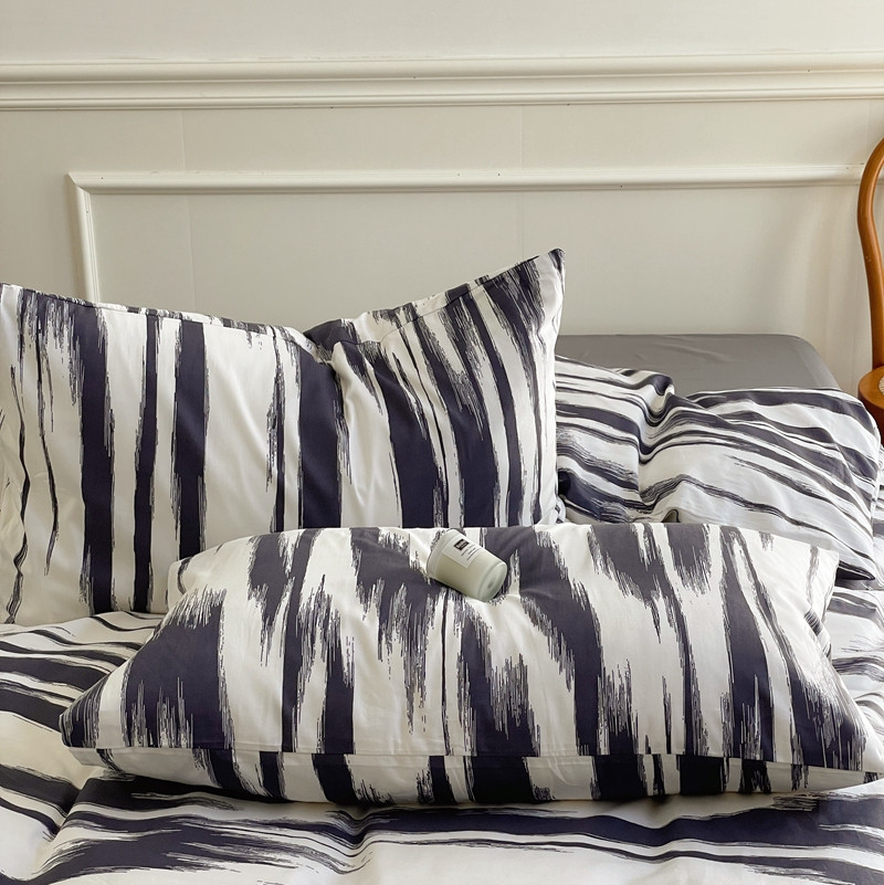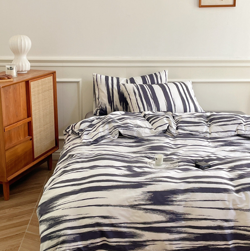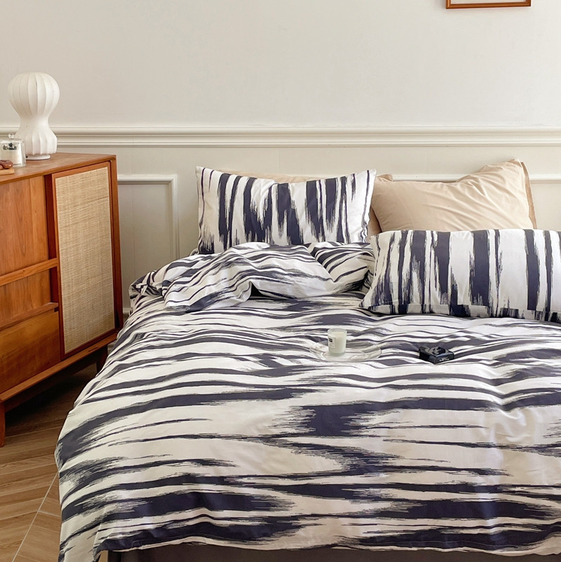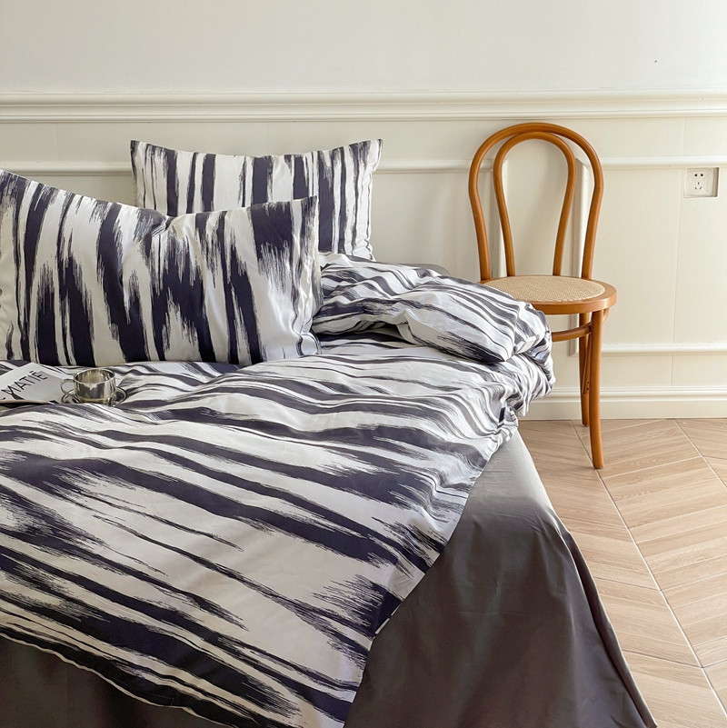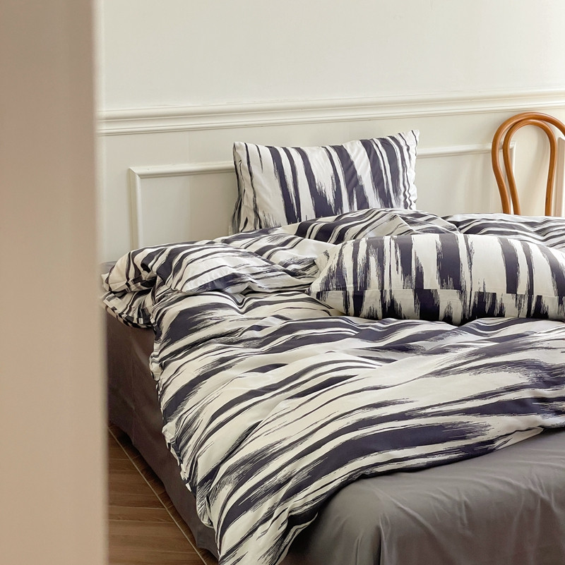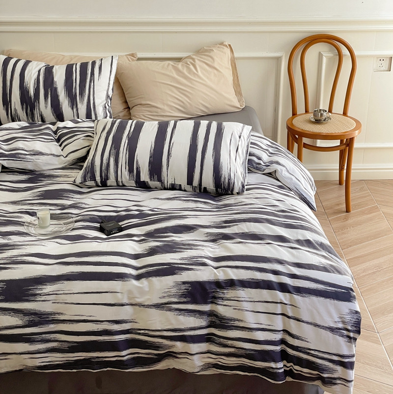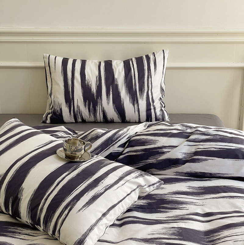 商品名称:窝米2022新款13370全棉四件套花卉系列 水波纹炭黑
