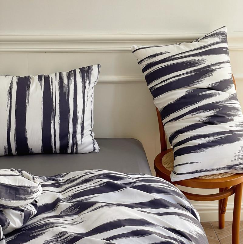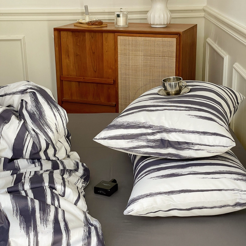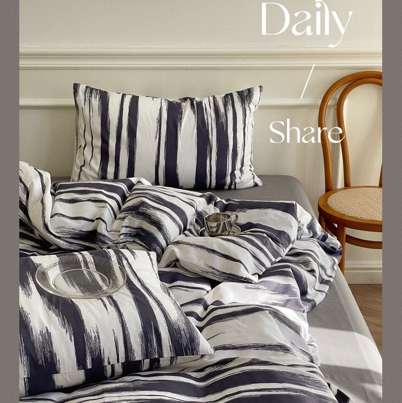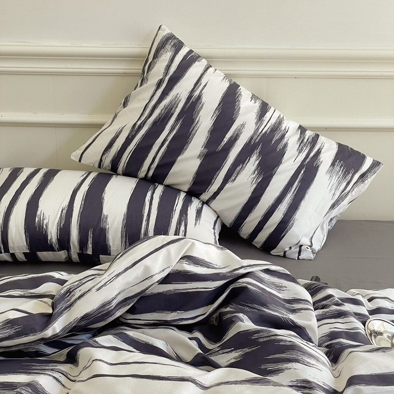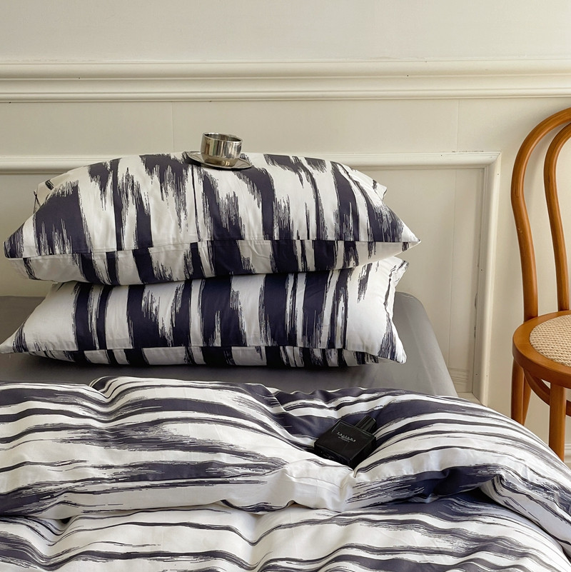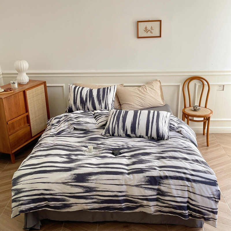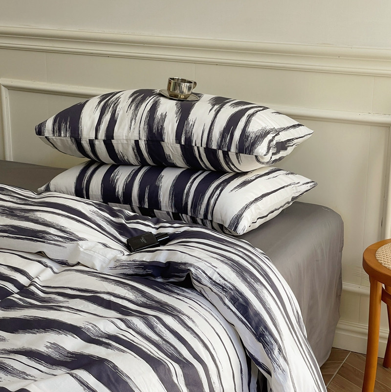 商品名称:窝米2022新款13370全棉四件套花卉系列 水波纹炭黑