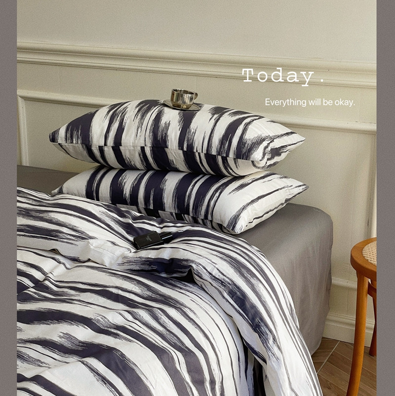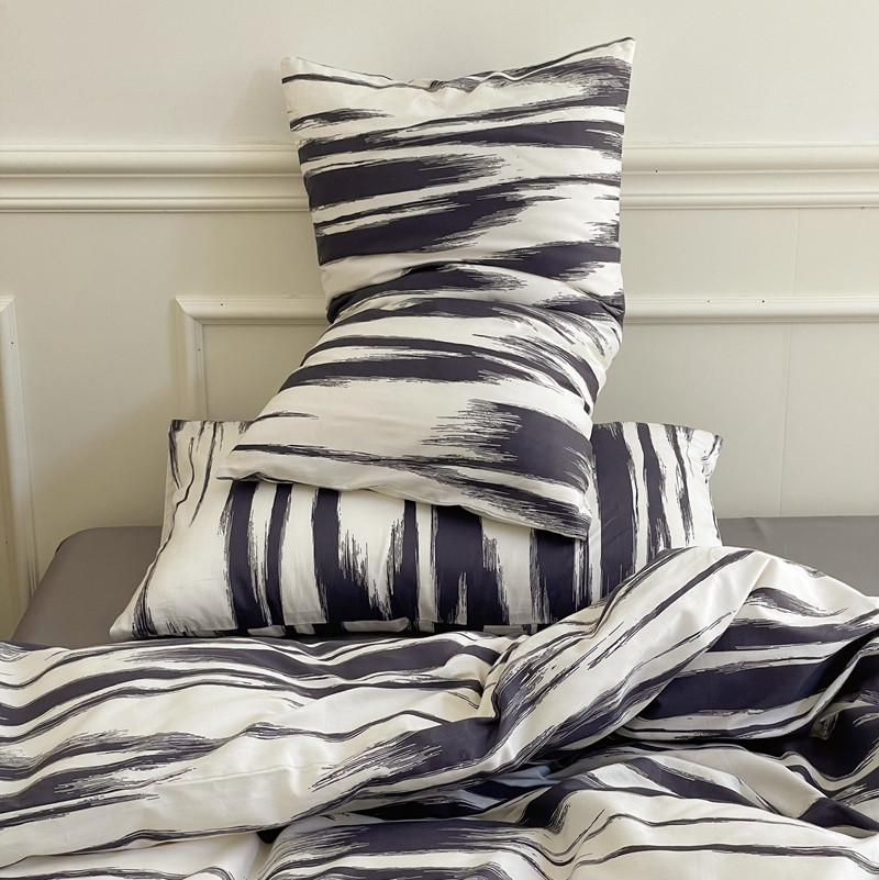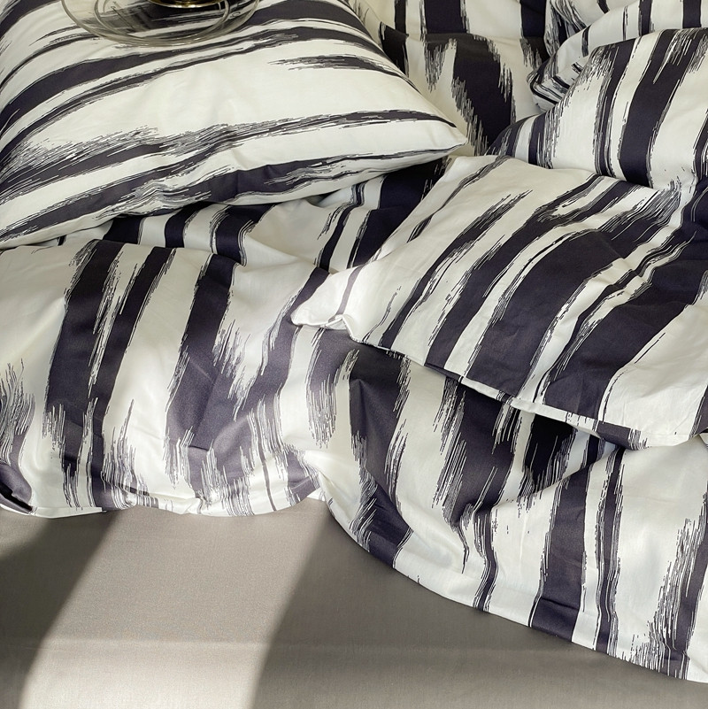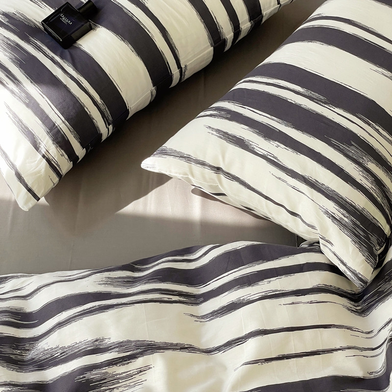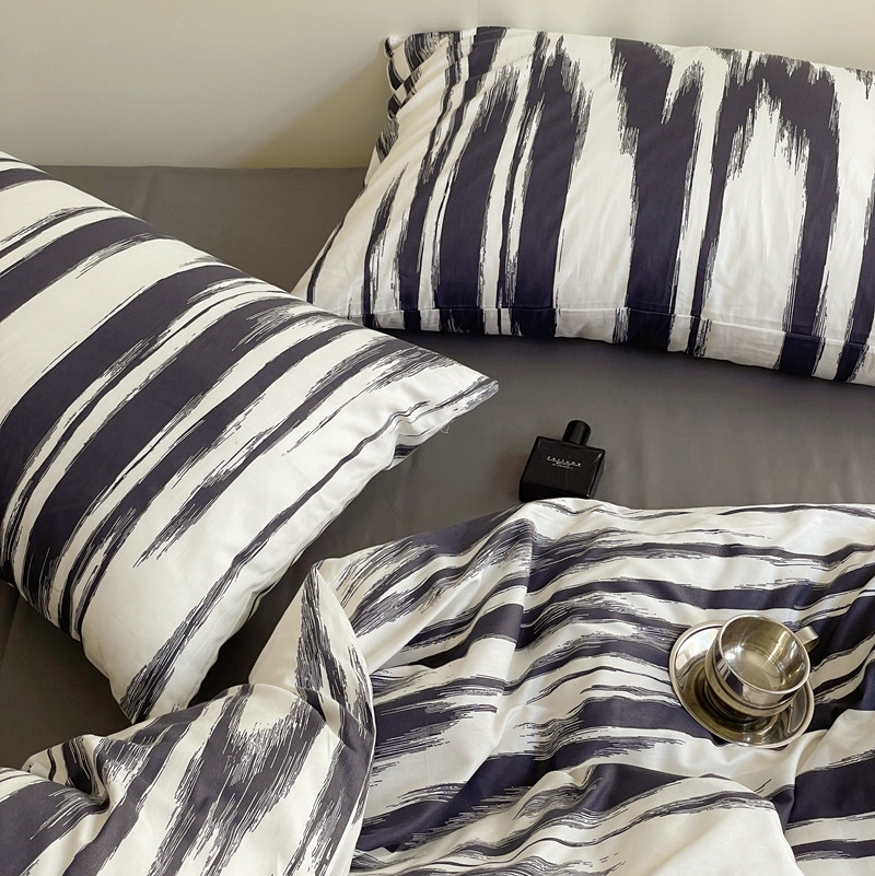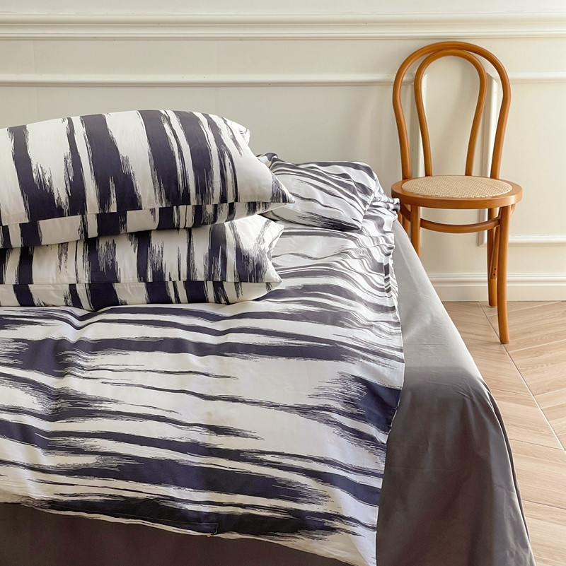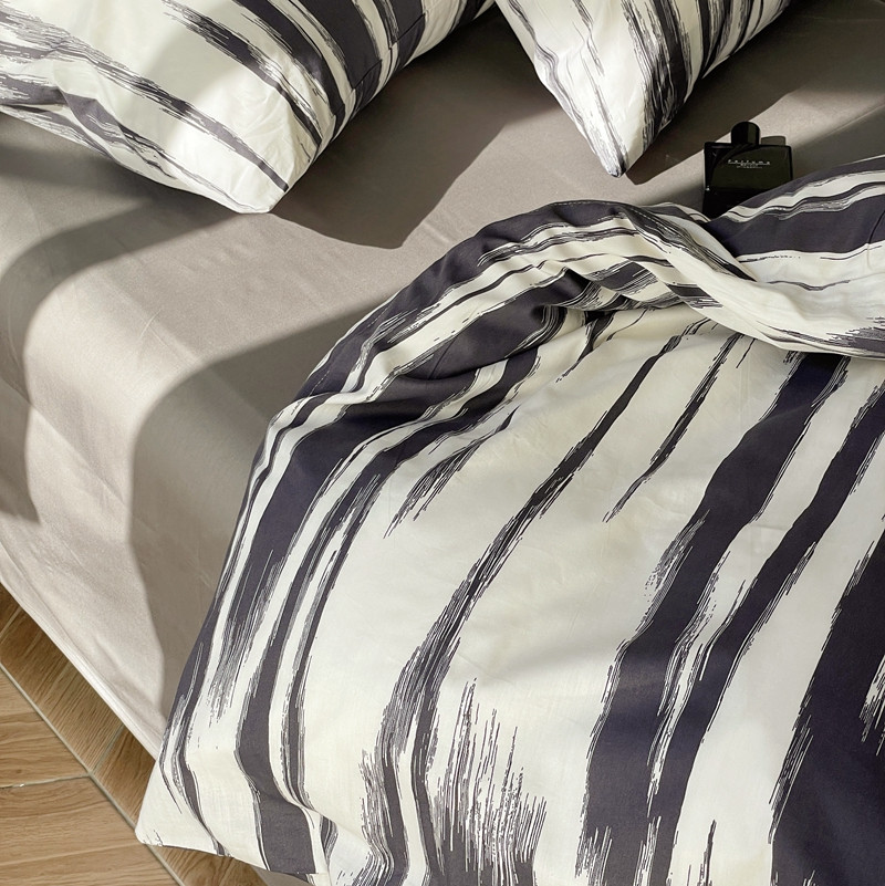窝米2022新款13370全棉四件套花卉系列 水波纹炭黑
