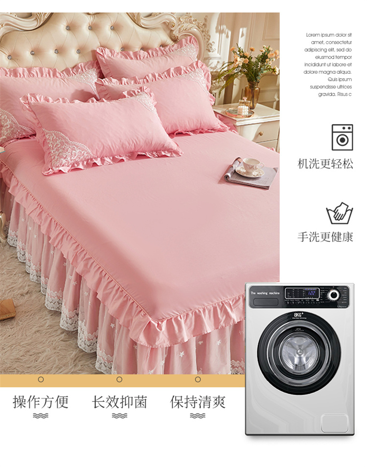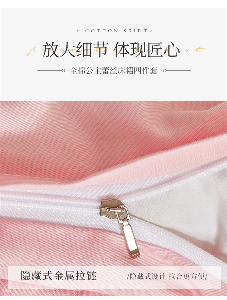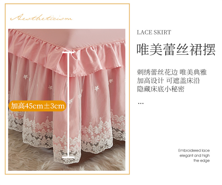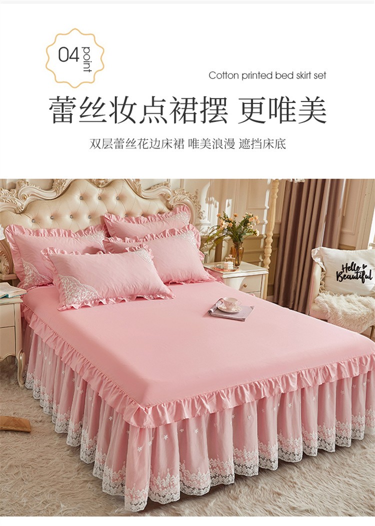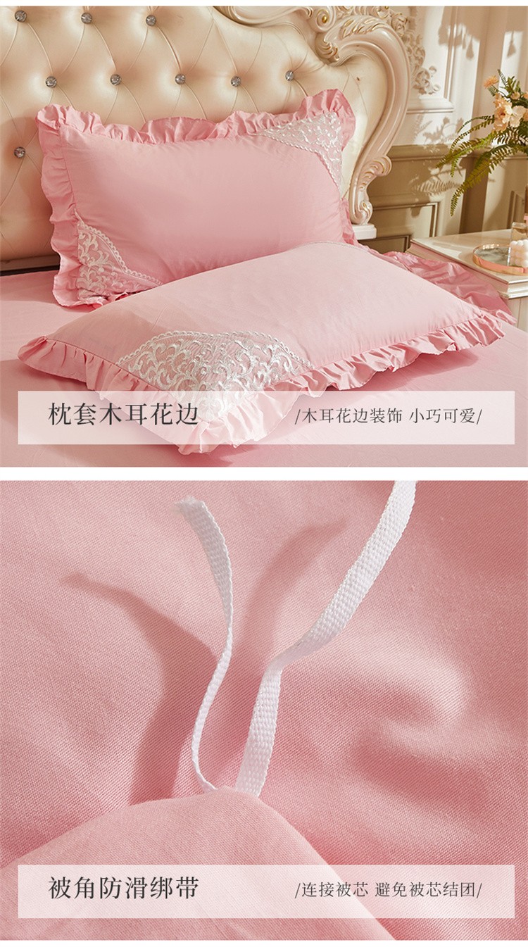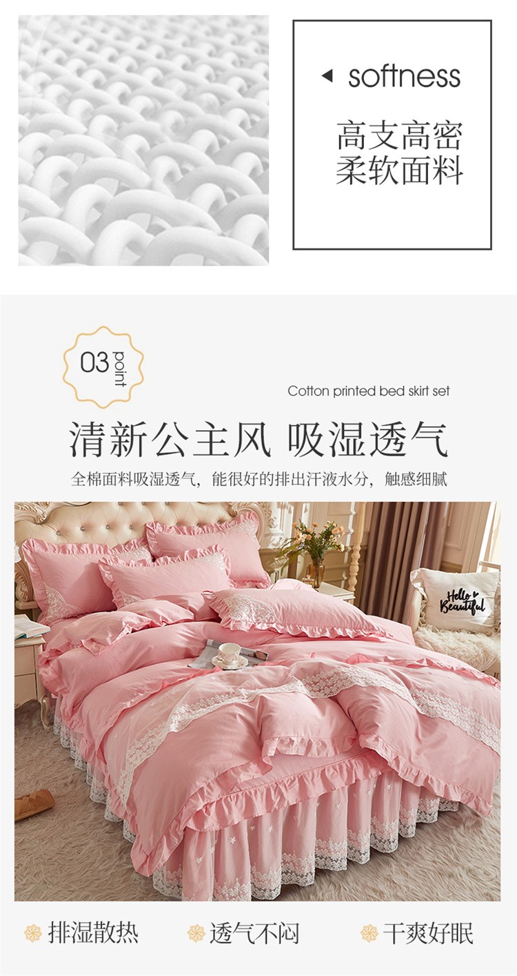 当前位置: 91家纺网 > 商品网购 > 床品套件 > 四件套 > 全棉普通四件套 > 十个点 2022新款纯色全棉公主风蕾丝花边床裙四件套 玉粉色
