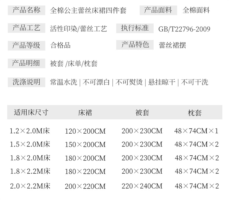 200*220cm全加大床裙四件套 | ¥270.00 |