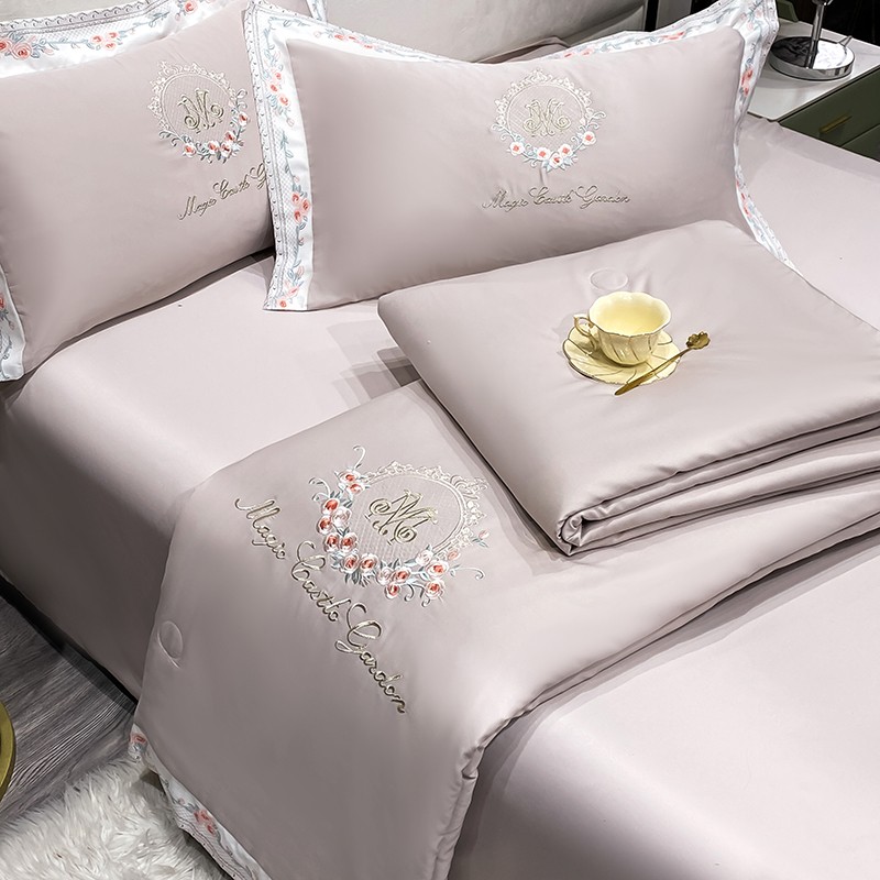 丽卡家纺 2023新款水洗天丝刺绣夏被四件套-梦露梦露-米咖