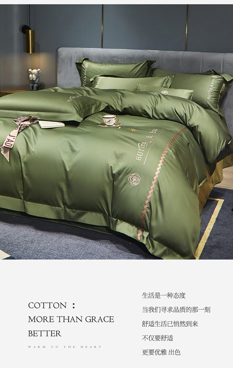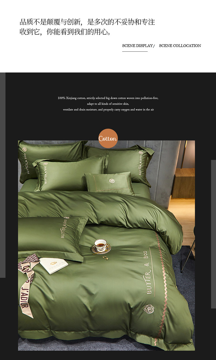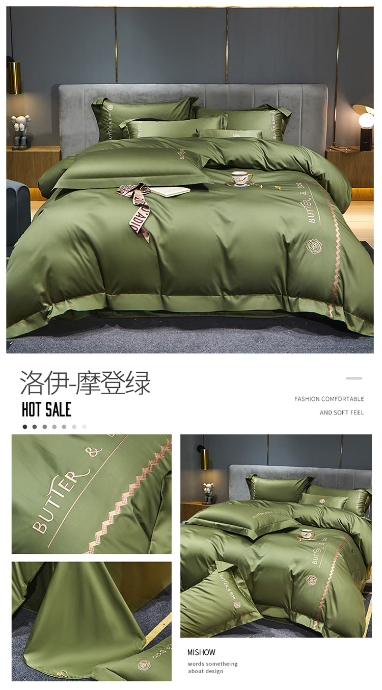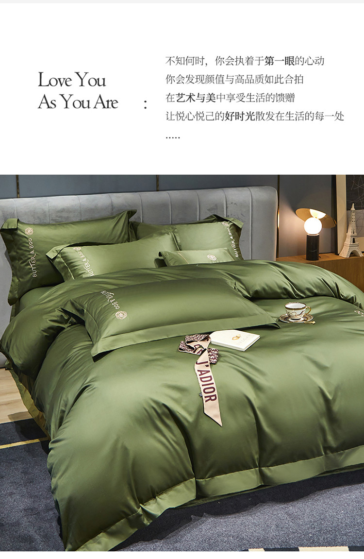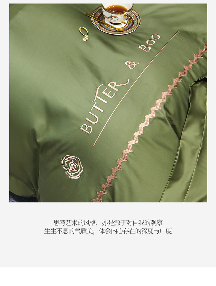 初拾 2022新款100支澳棉极简轻奢洛伊系列四件套-场景一 洛伊-摩登绿