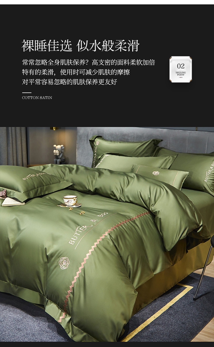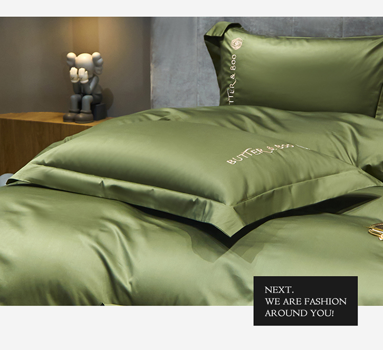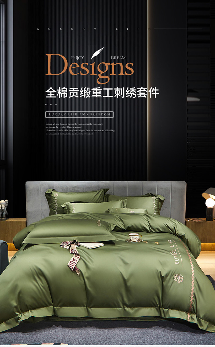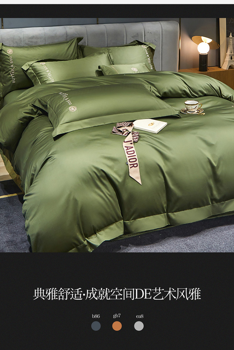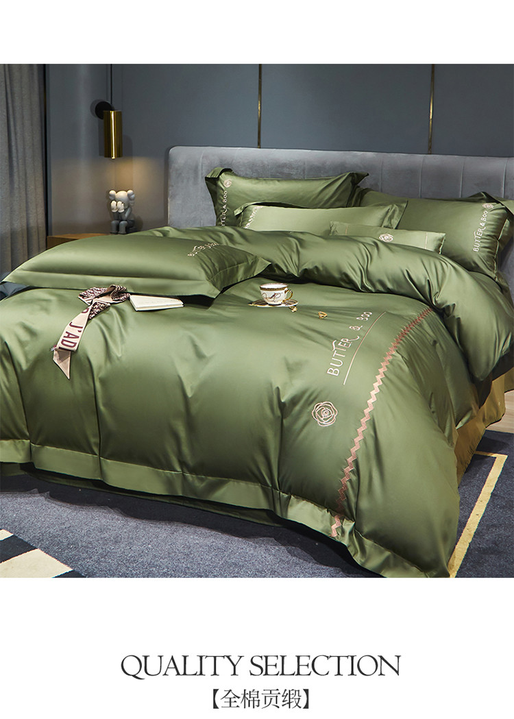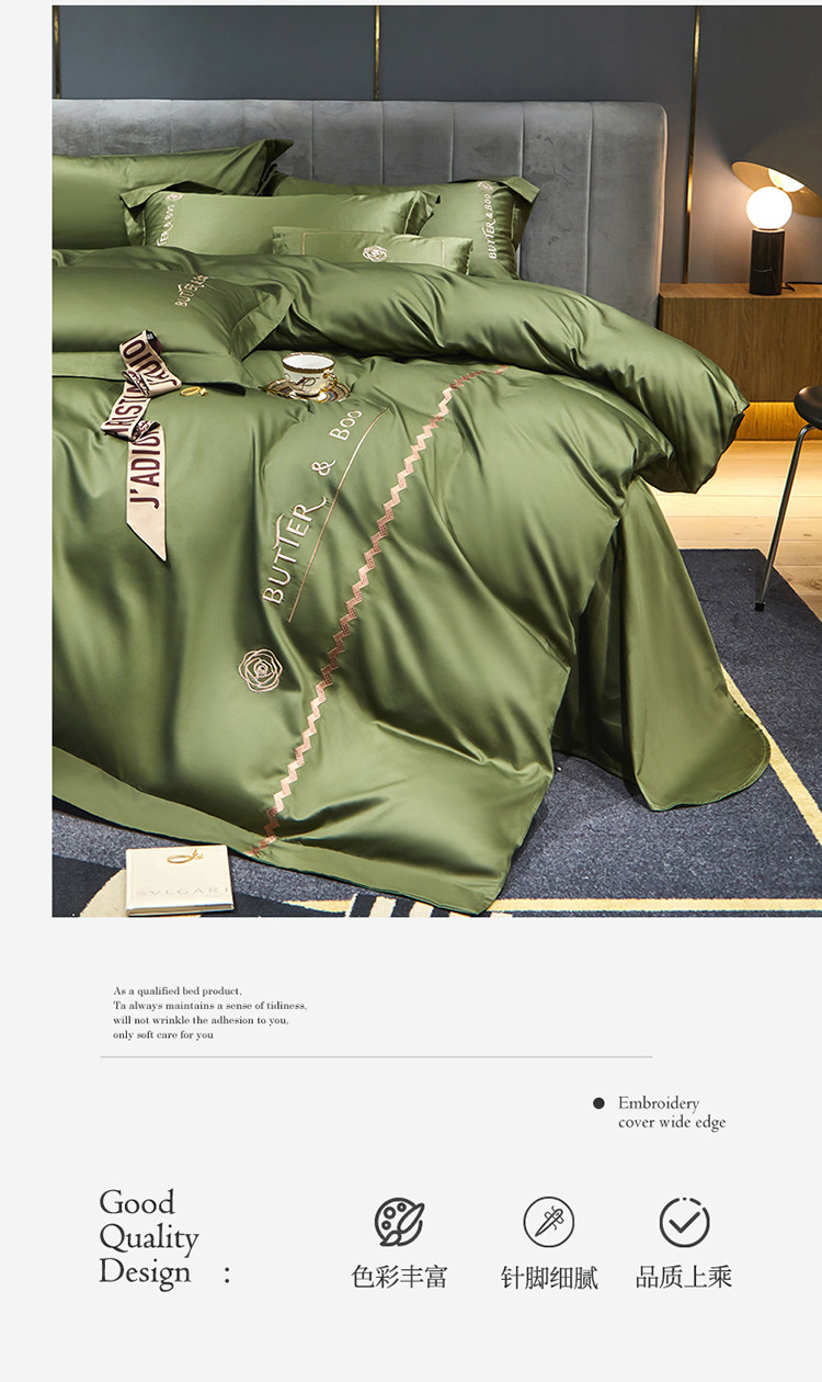 初拾 2022新款100支澳棉极简轻奢洛伊系列四件套-场景一 洛伊-摩登绿