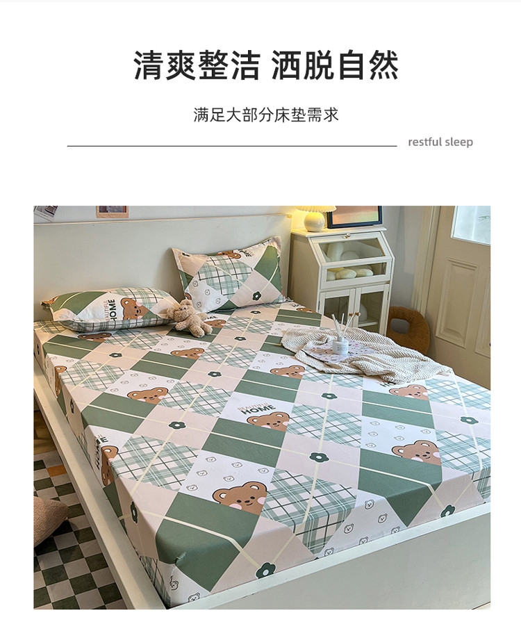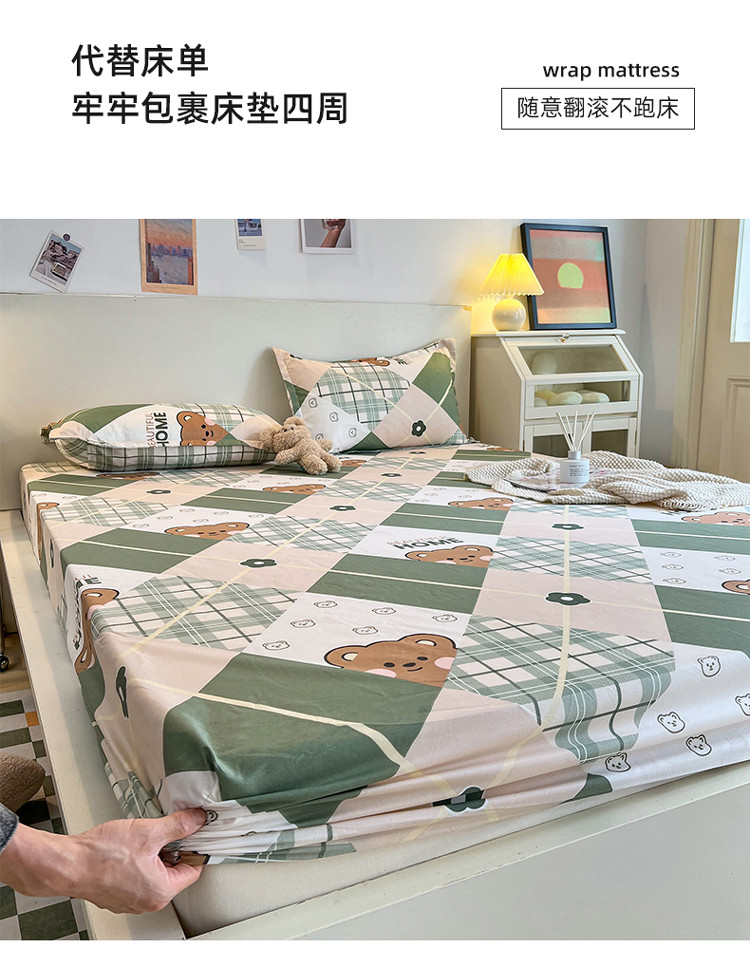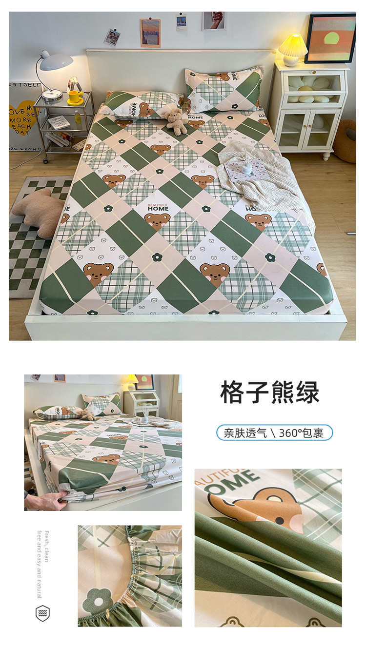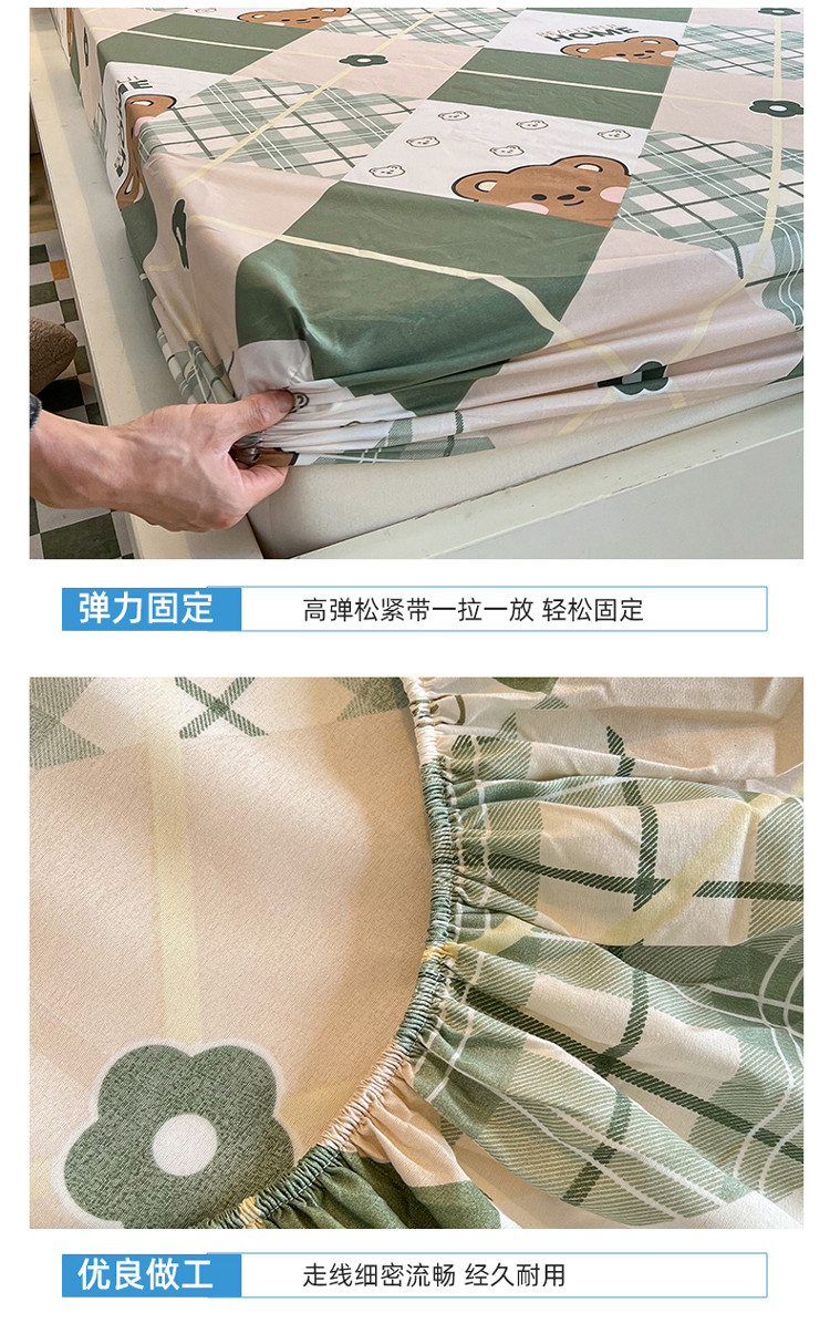 宏源家纺 2022新款亲肤棉芦荟棉单床笠 格子熊绿