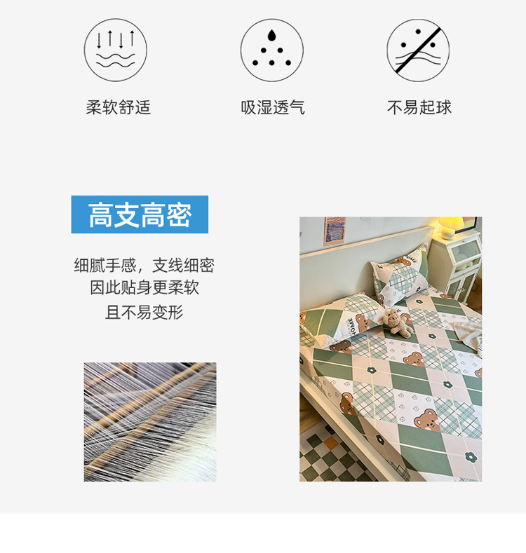 商品名称:宏源家纺 2022新款亲肤棉芦荟棉单床笠 格子熊绿
