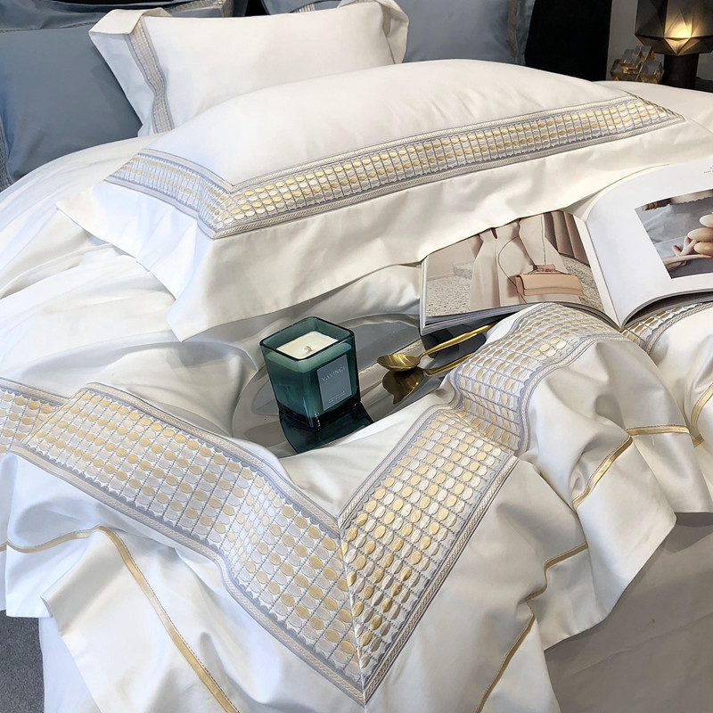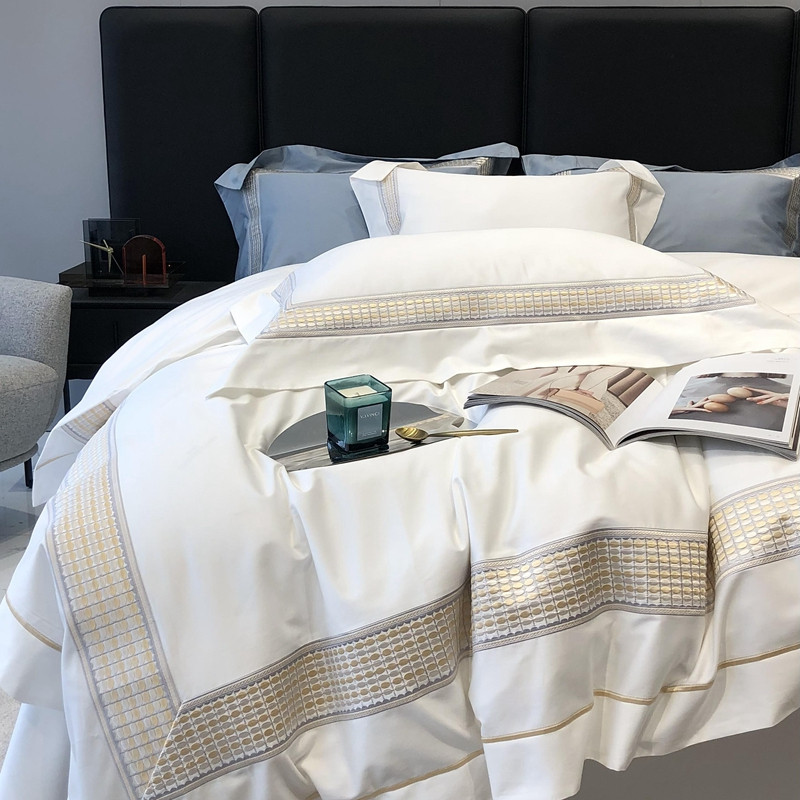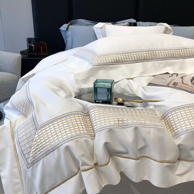 (总)太古汇家居 2025新款打孔镂空宽边格拉夫系列四件套,格拉夫-粉,格拉夫-红,格拉夫-蓝,格拉夫-米白