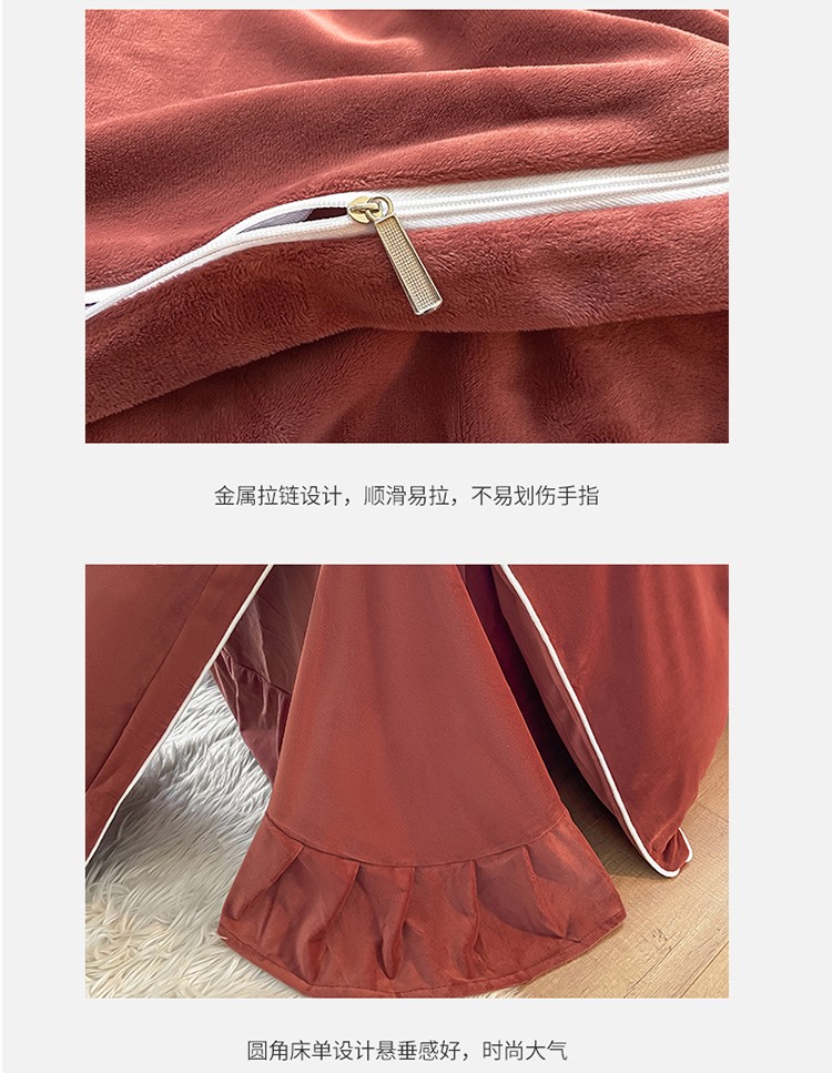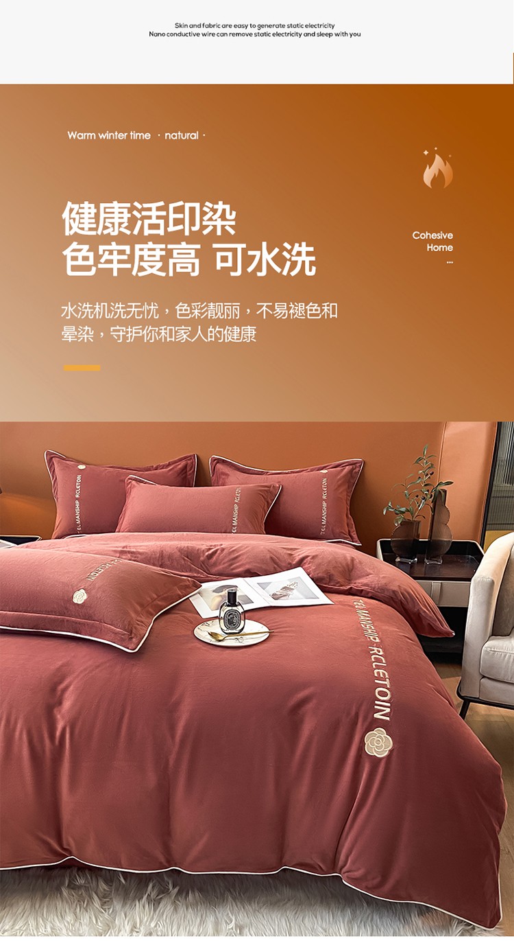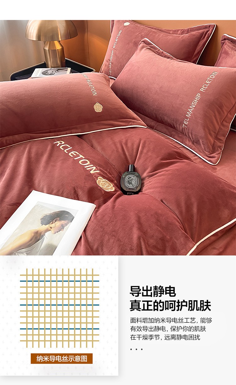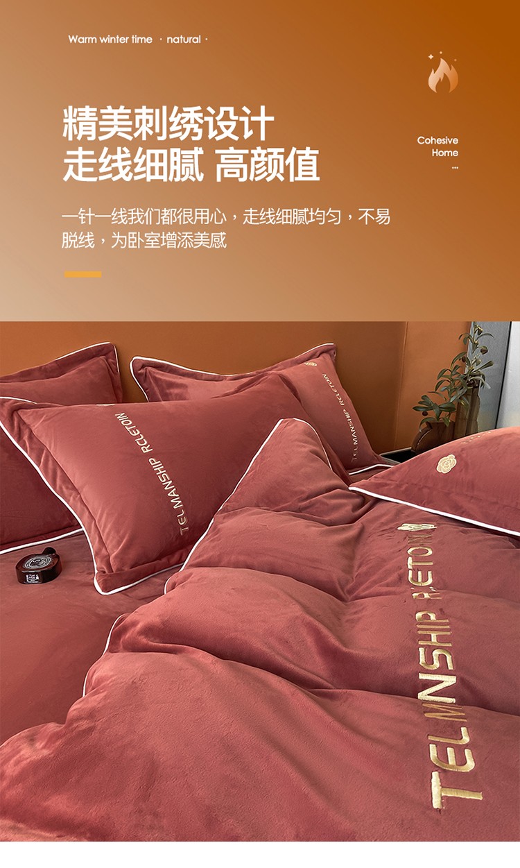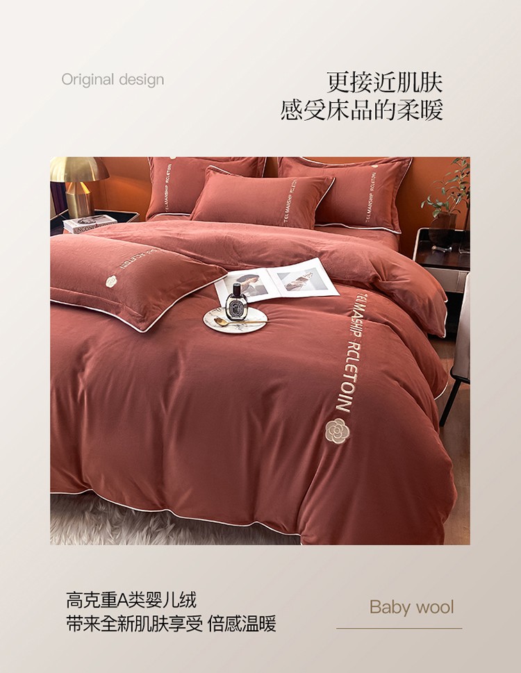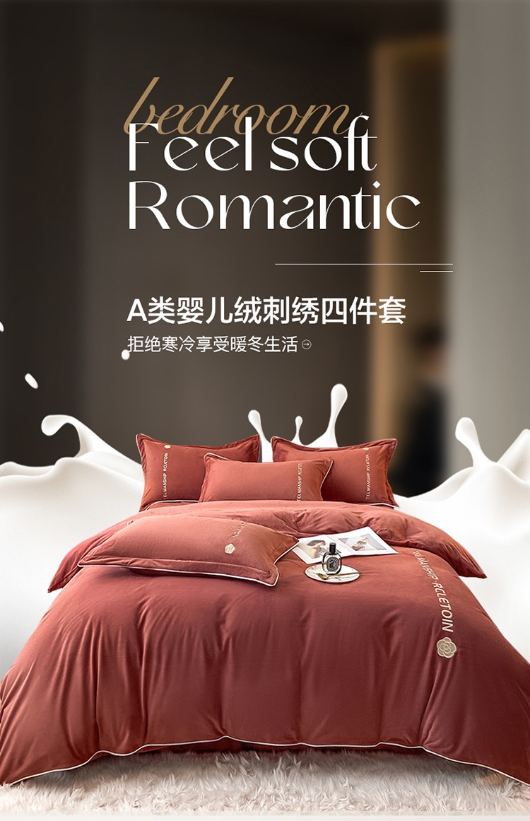 商品名称:嗯呢 2023新款A类高克重轻奢刺绣婴儿绒四件套 暗红