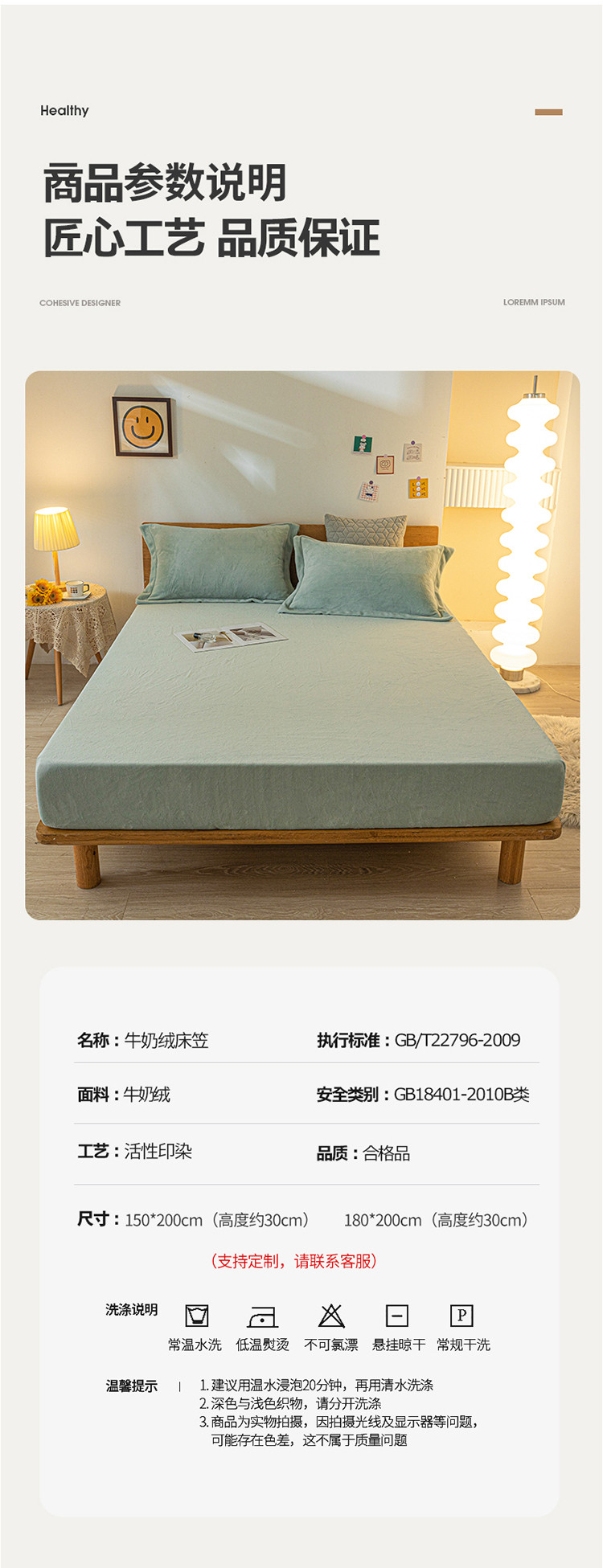 (总)好阁 2022新款200g牛奶绒单品床笠