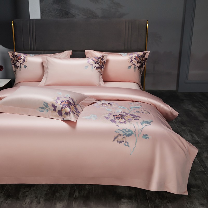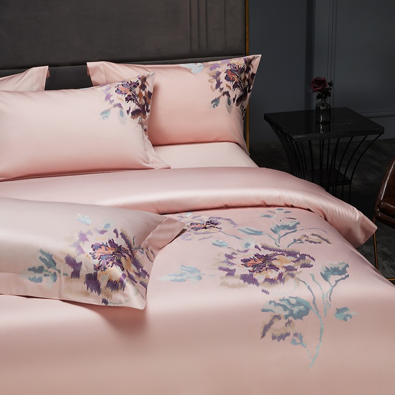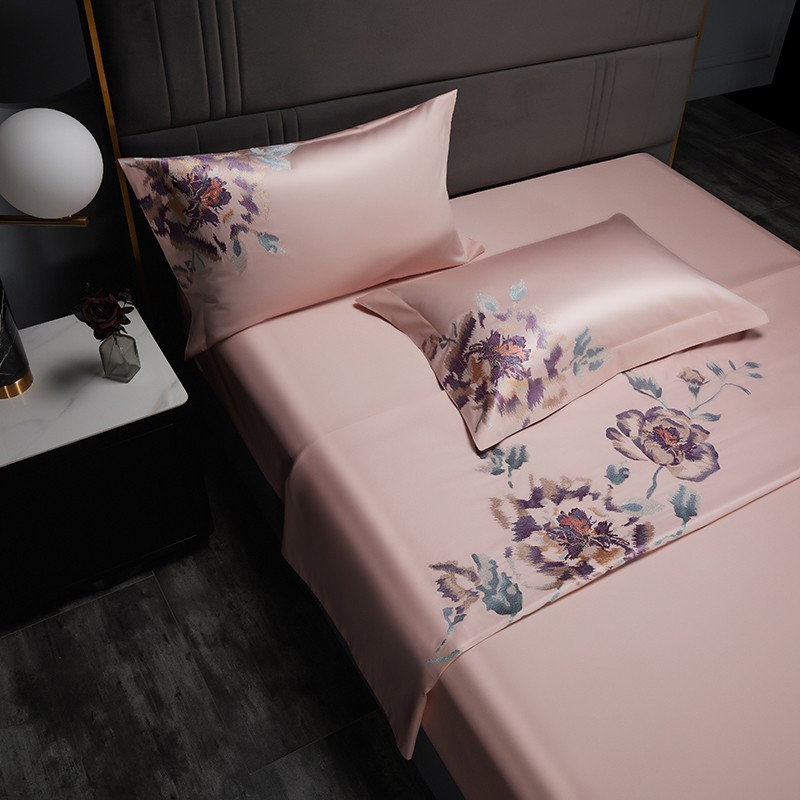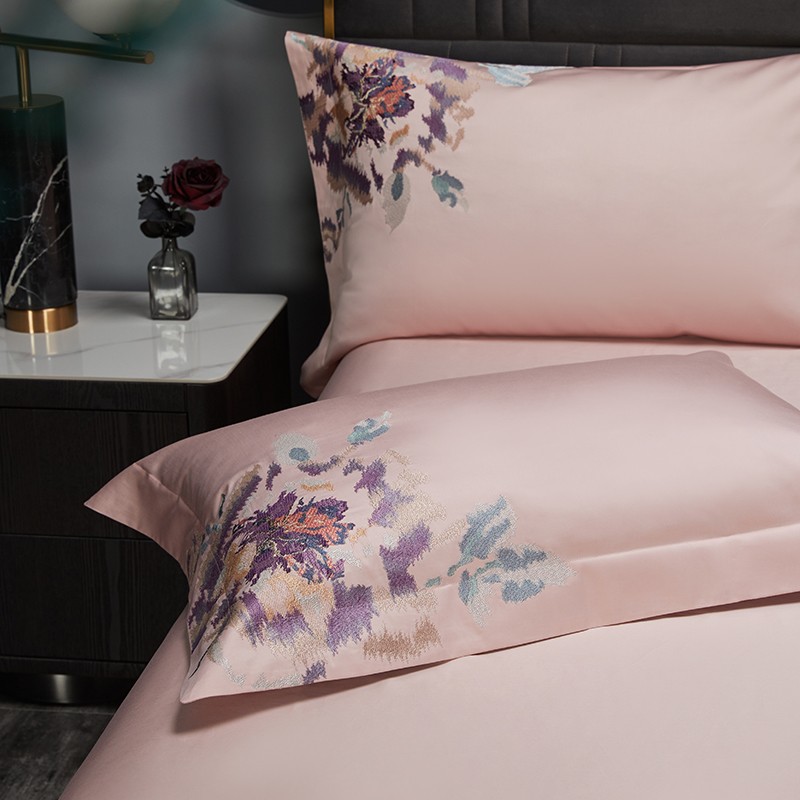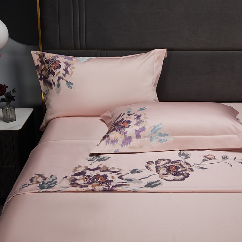 缔缦 2022新款100s澳棉全工艺秋冬居家四件套-花影伊人 粉