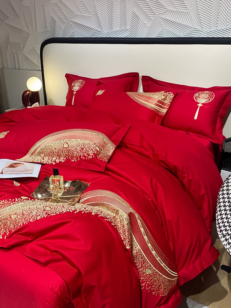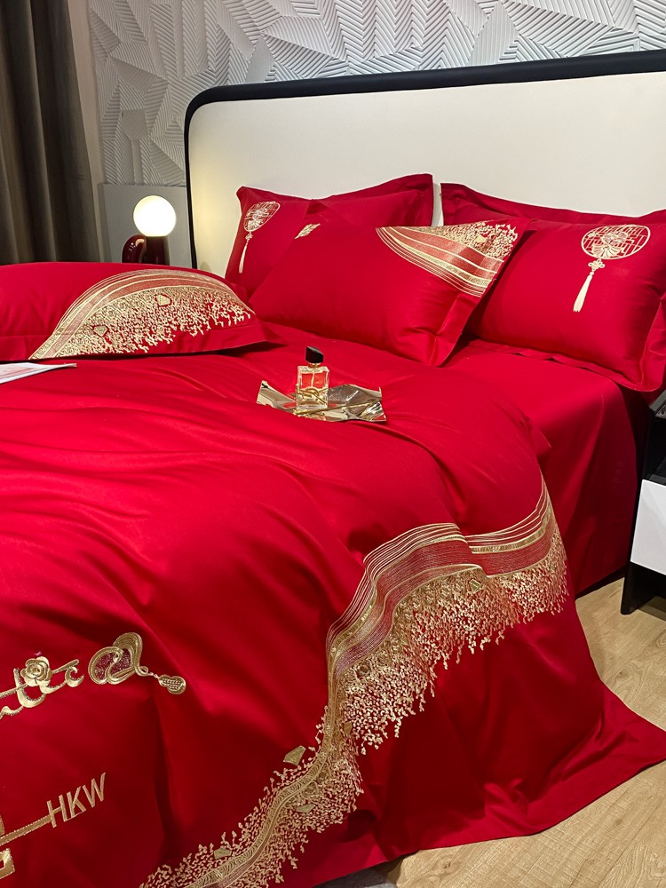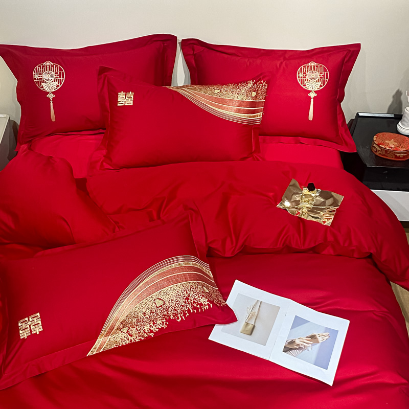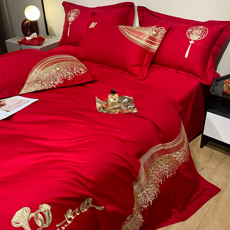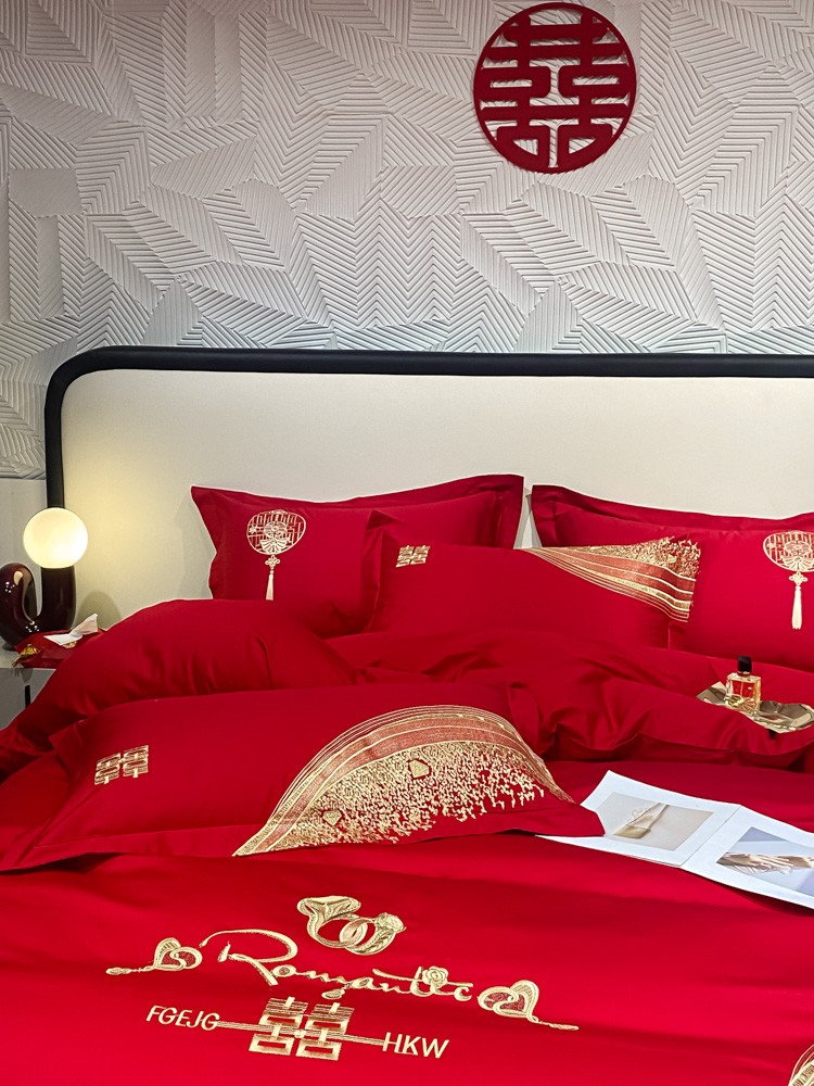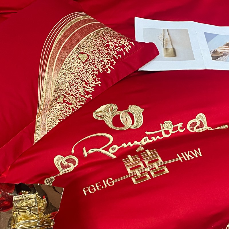 (总)用心 2026年新款双面长绒棉提花婚庆刺绣四件套,喜上喜,禧爱,吉祥