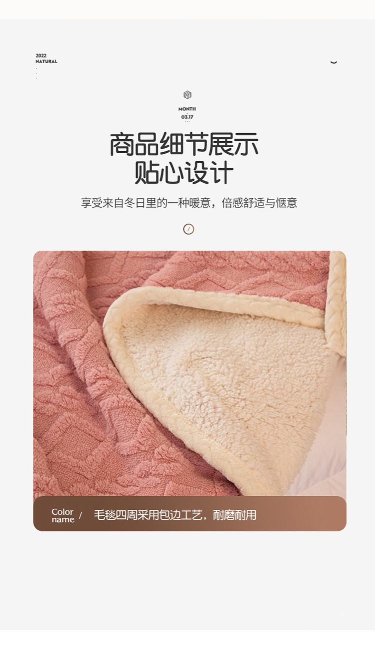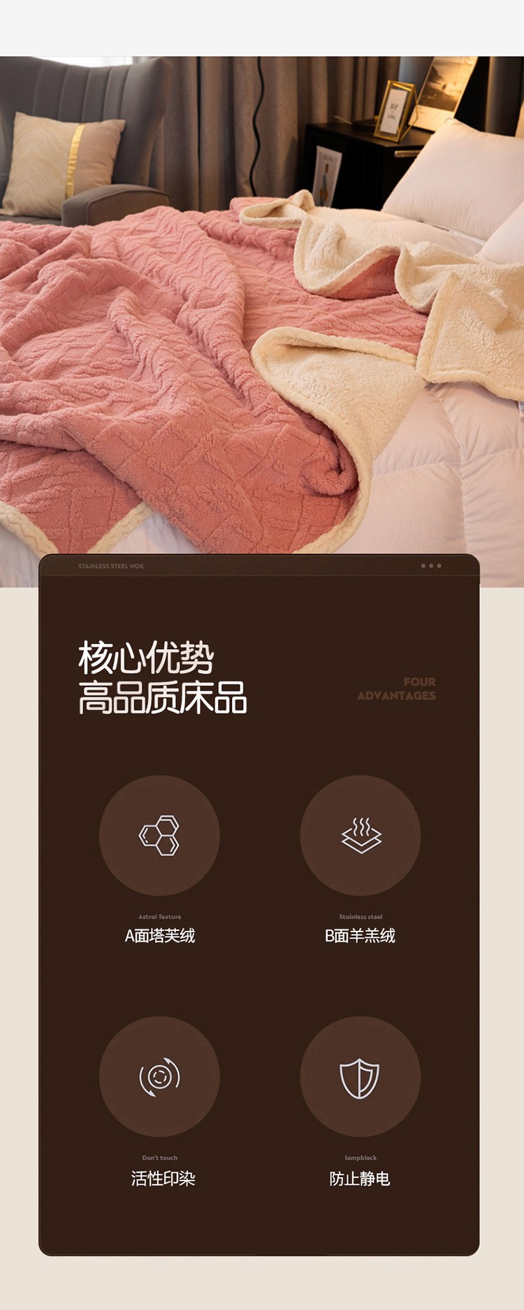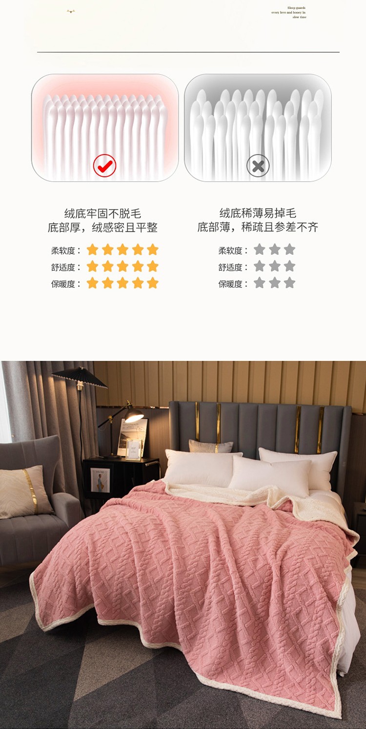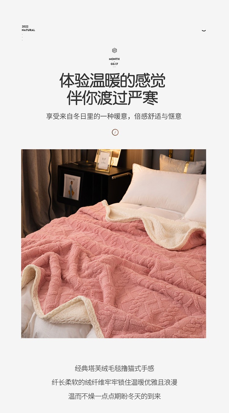 商品名称:卡琪曼 2022双面塔芙绒羊羔绒毛毯办公室午睡盖毯子 粉色