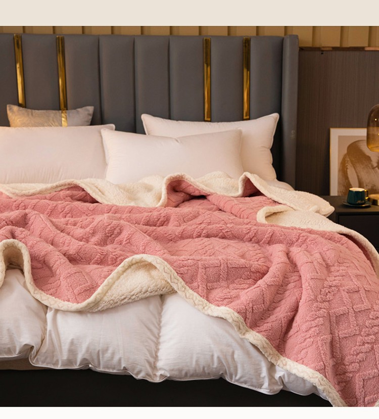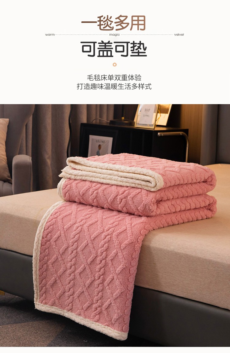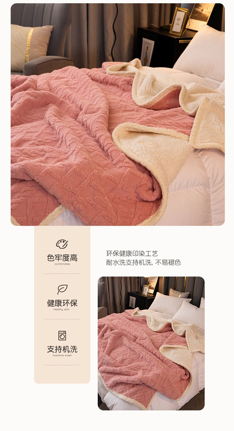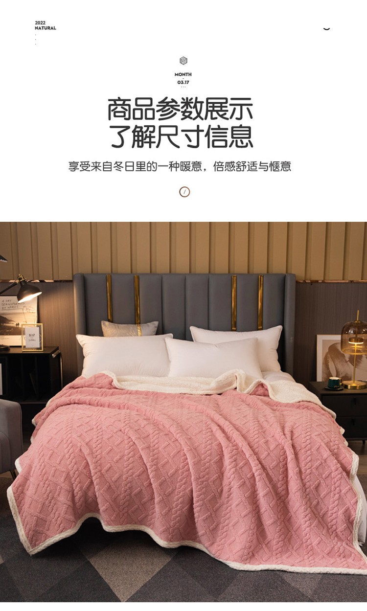 (总)卡琪曼 2025新款阳离子提花羊羔绒毛毯盖毯毯子,军绿,粉色,米白,浅灰,浅紫色,深灰,驼色,雾蓝