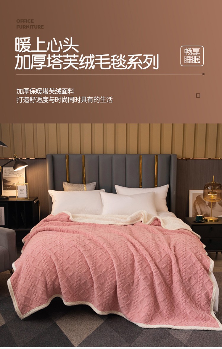 卡琪曼 2022双面塔芙绒羊羔绒毛毯办公室午睡盖毯子 粉色