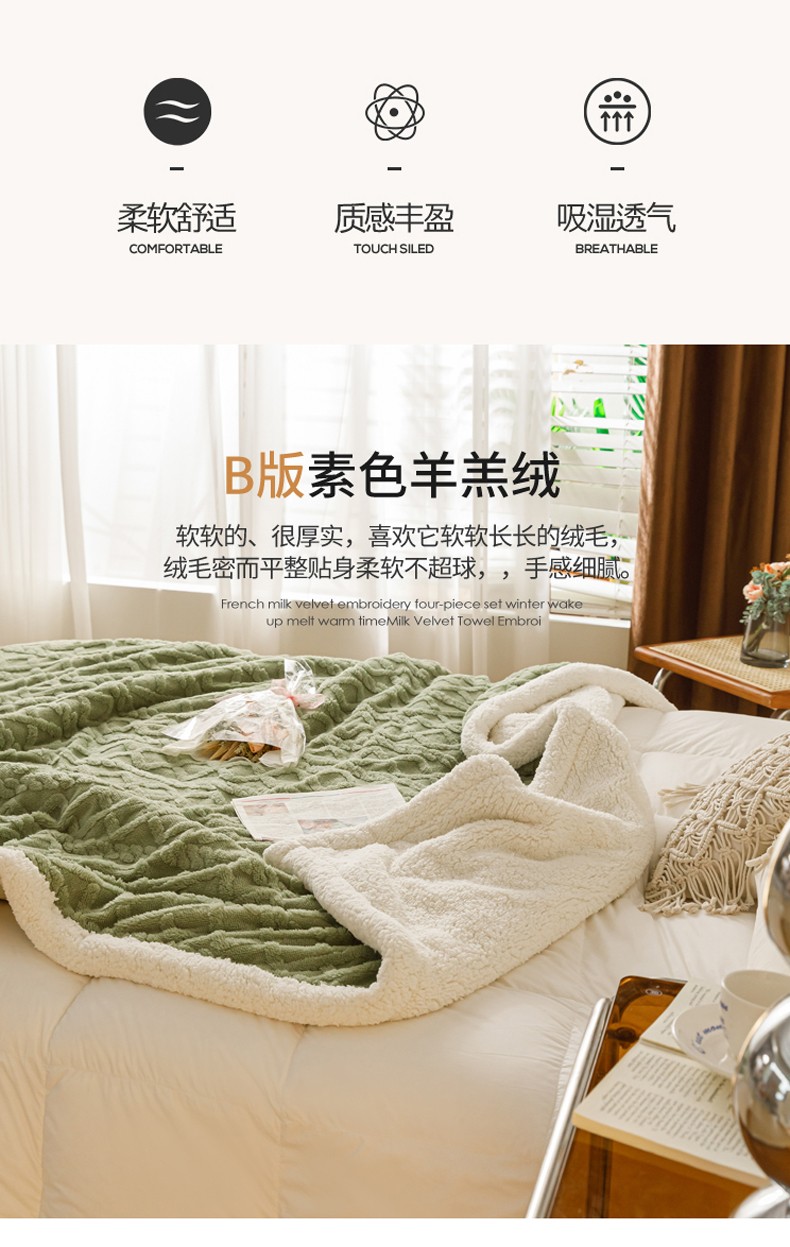 (总)简爱 2025新款法莱绒羊羔绒多功能被套毯,藏青,豆沙,鹅黄,湖蓝,酒红,咖啡,浅绿,深灰,驼色,夕阳红,银灰,玉色