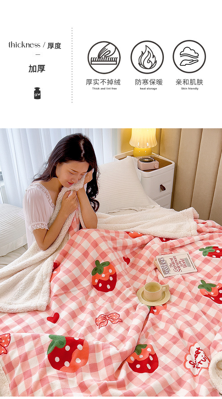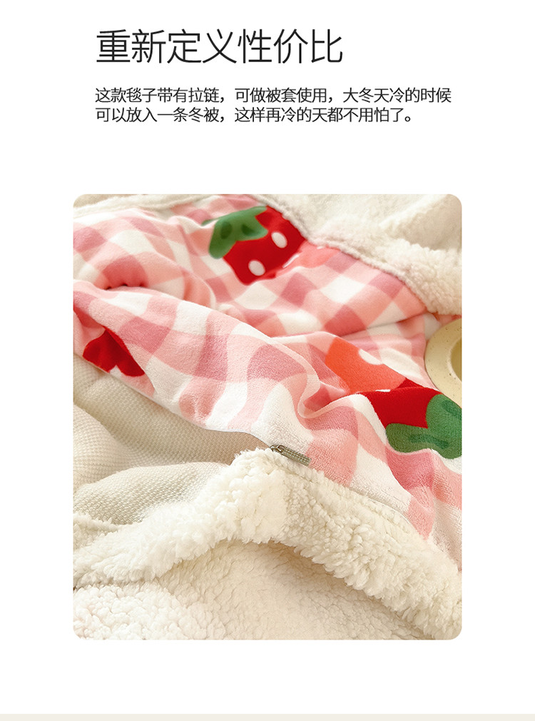 商品名称:兄弟坊 2022新款牛奶绒印花多功能毛毯被 草莓格