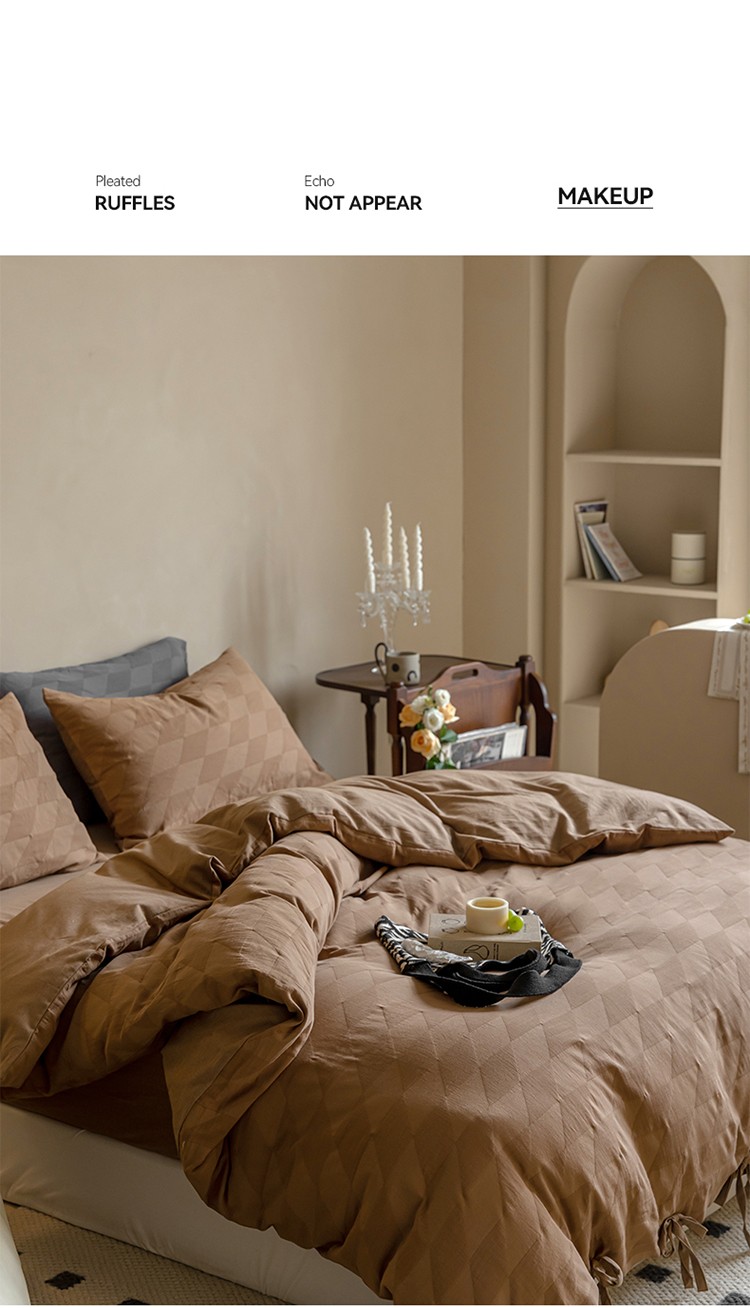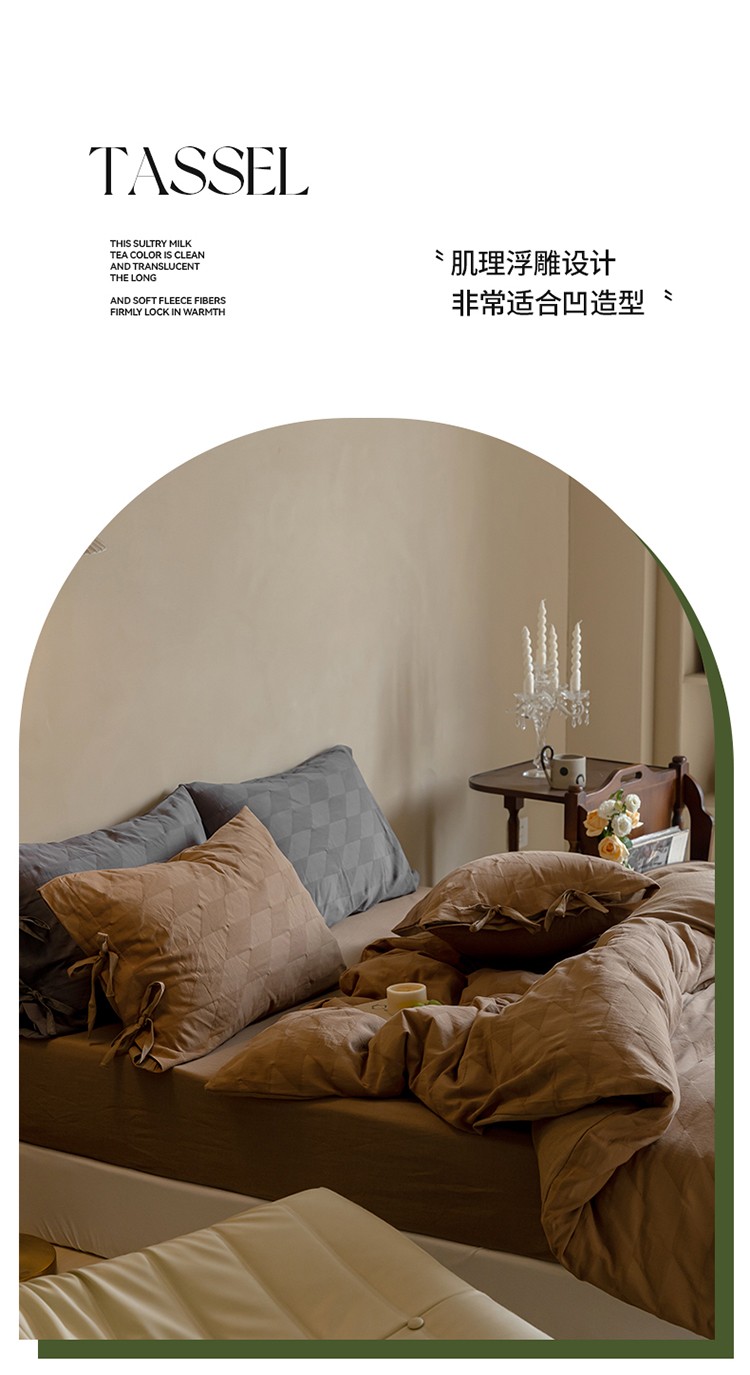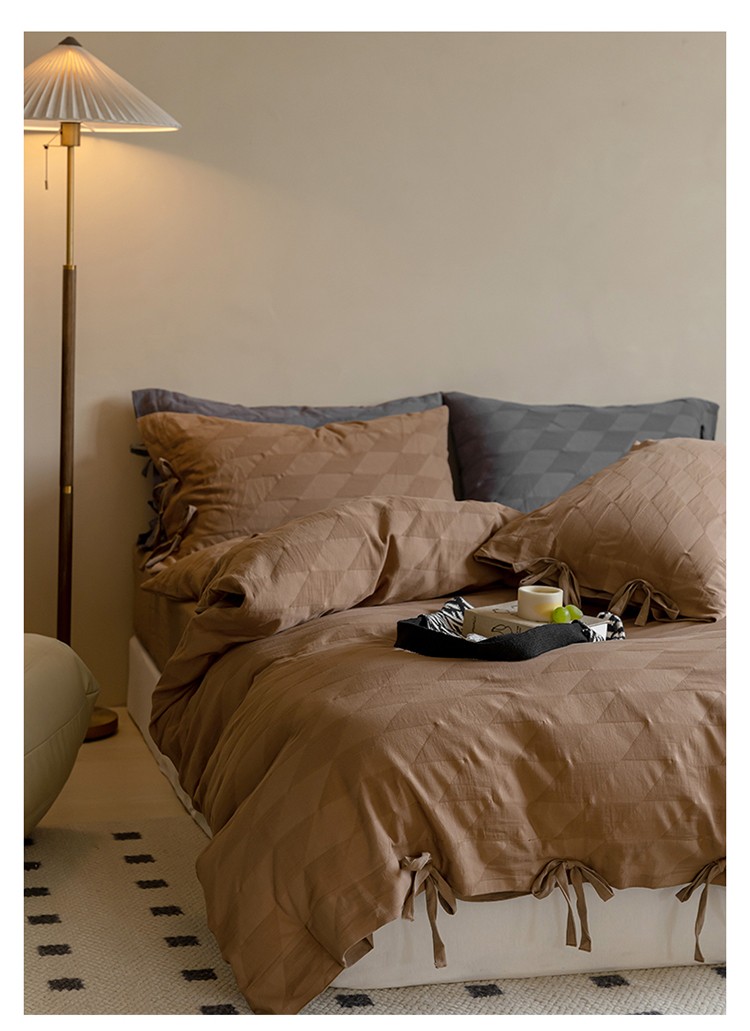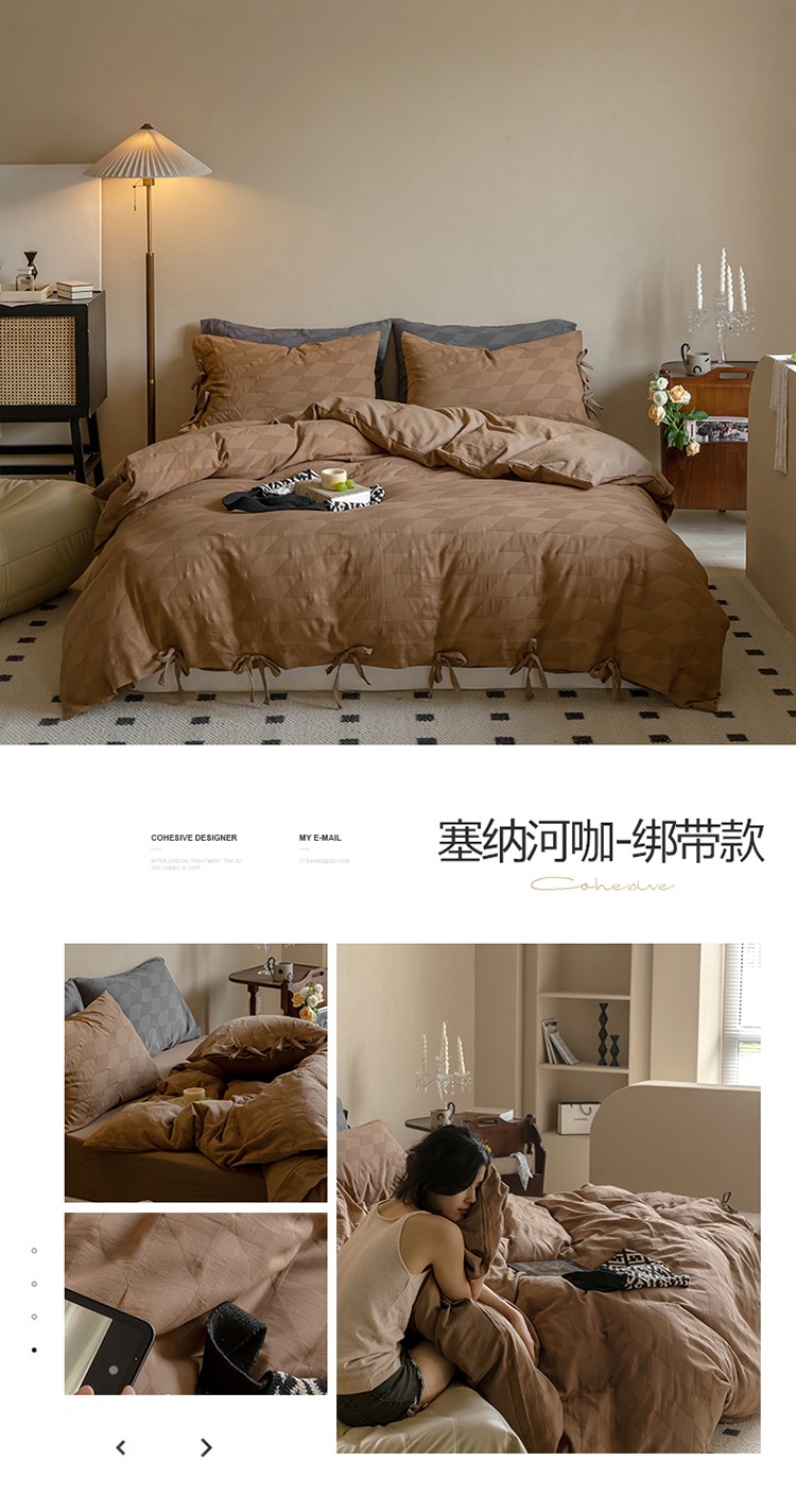 华超针织 2022新款60支肌理浮雕亲柔纱四件套 塞纳河咖绑带款