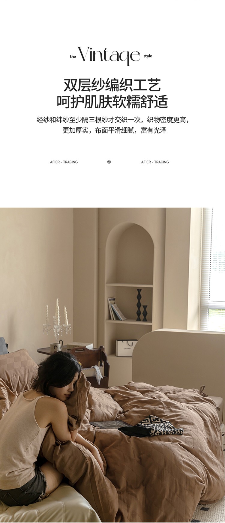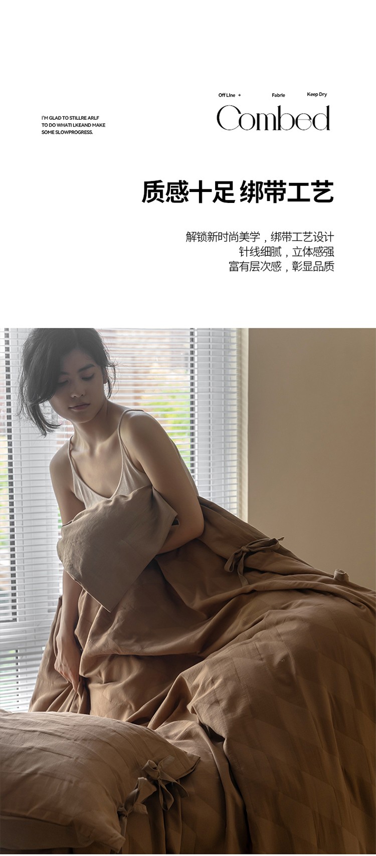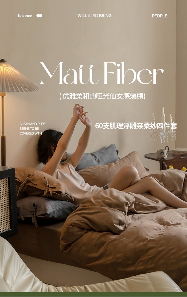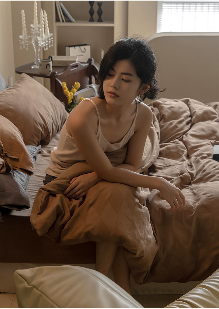 华超针织 2022新款60支肌理浮雕亲柔纱四件套 塞纳河咖绑带款