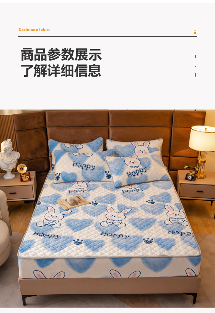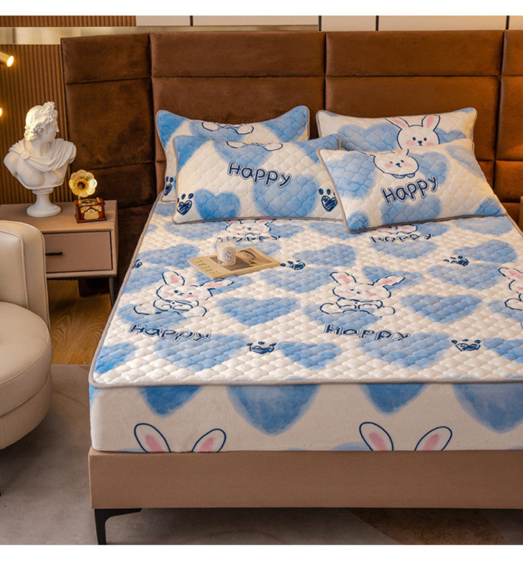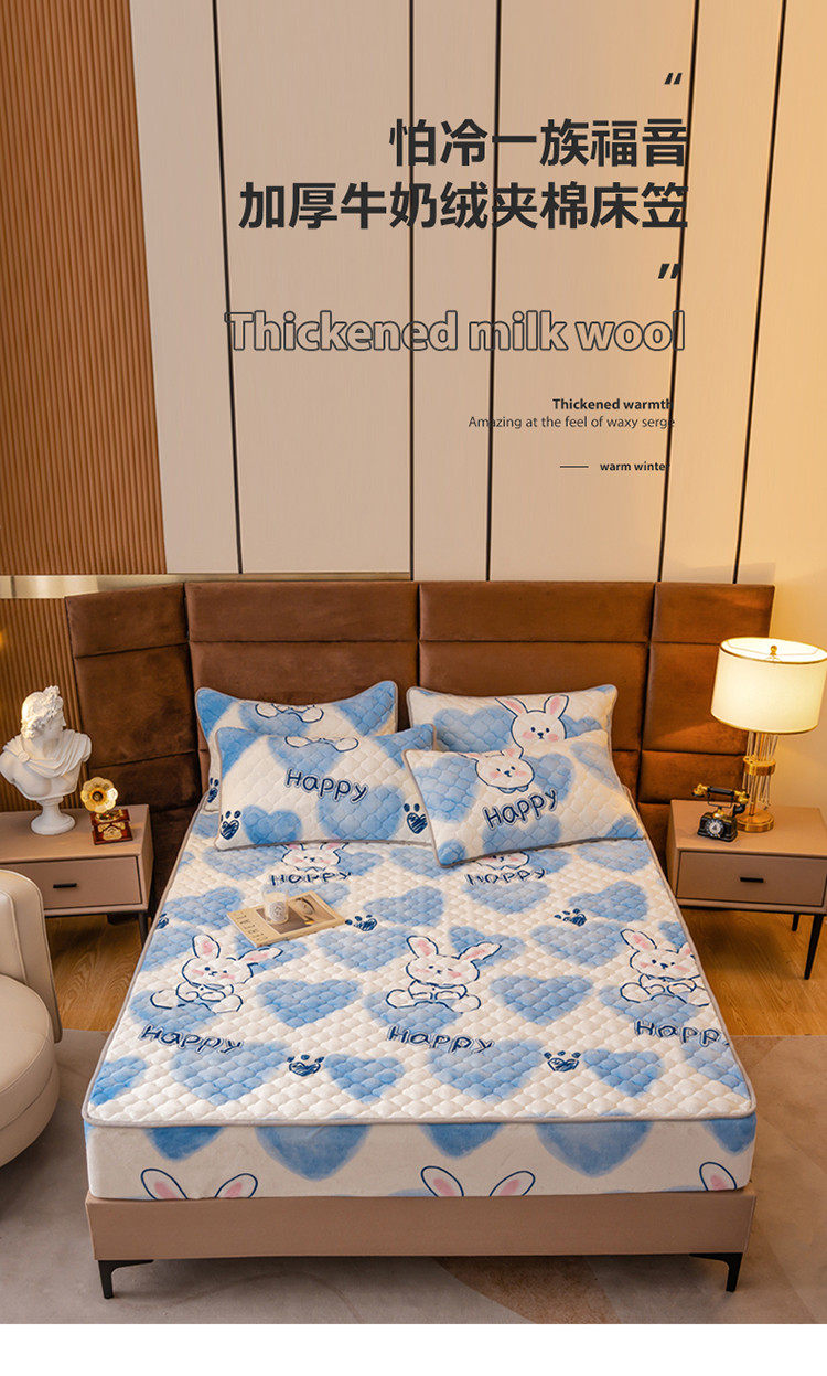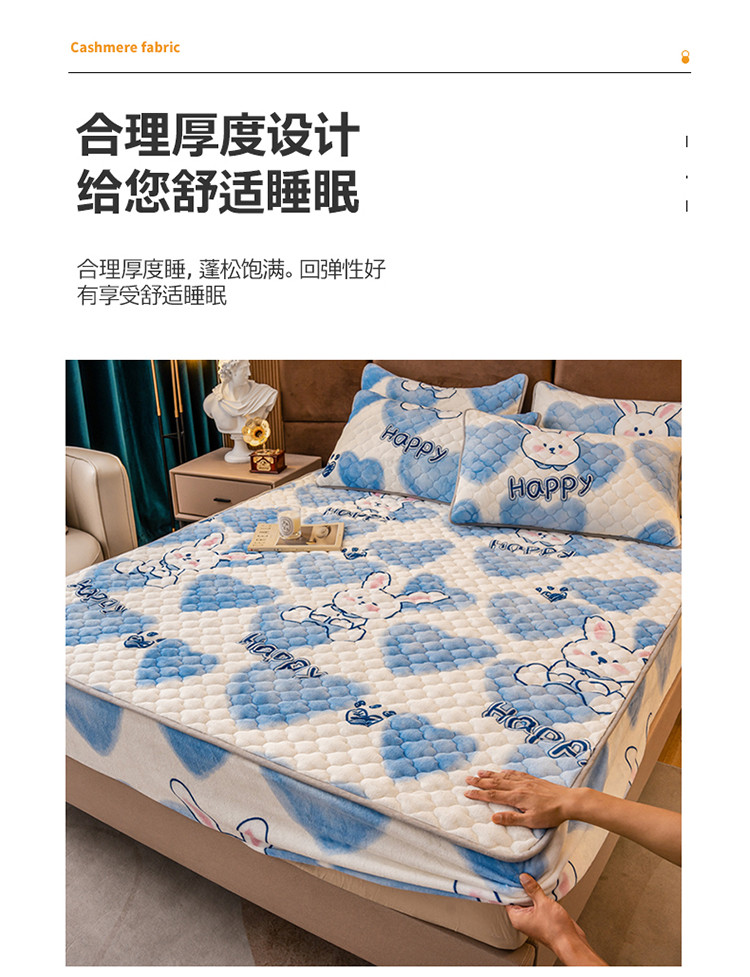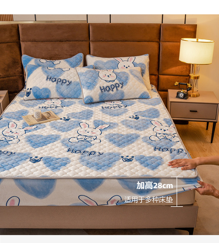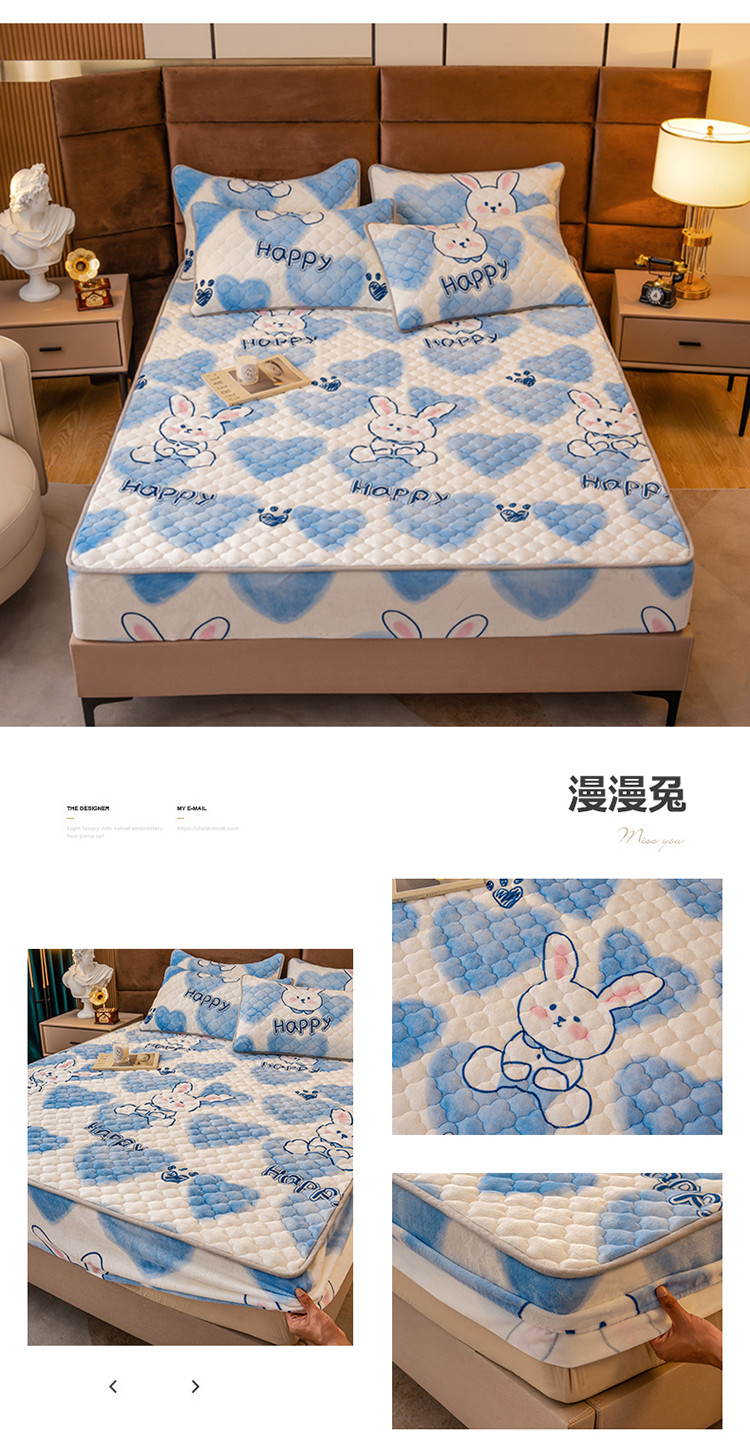 美莱 2022年夹棉加厚牛奶绒床笠单件三件套直播爆款 漫漫兔