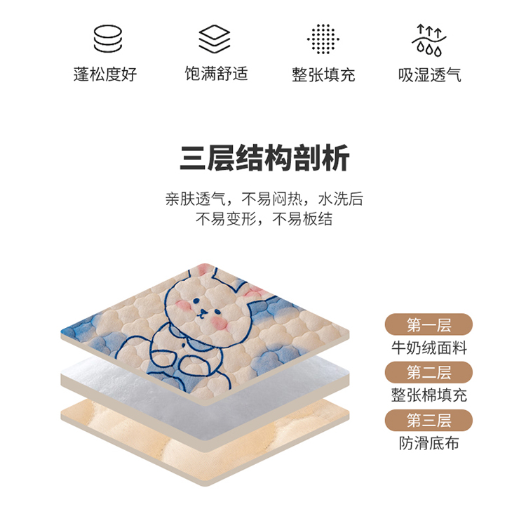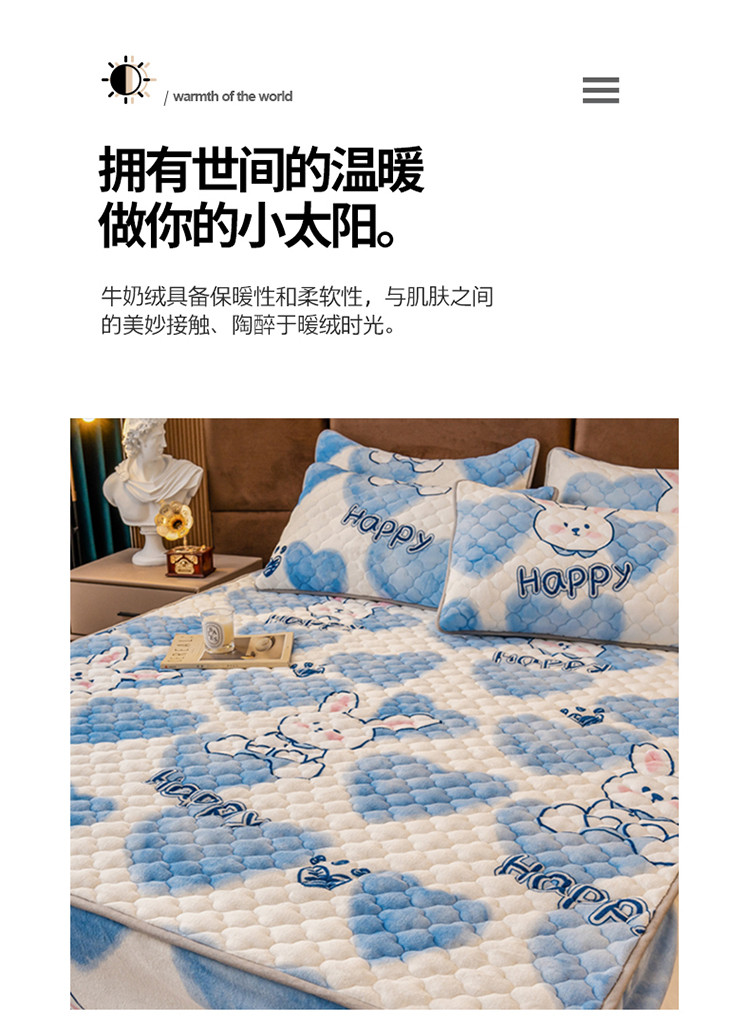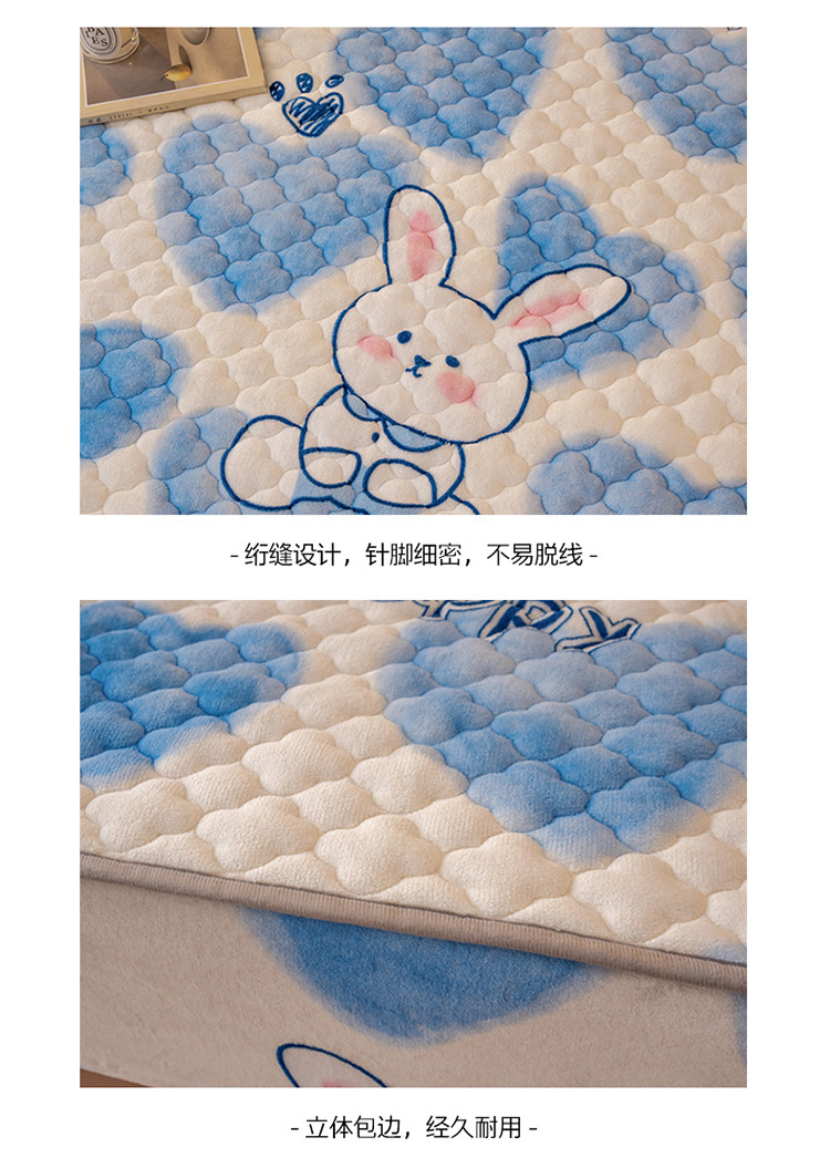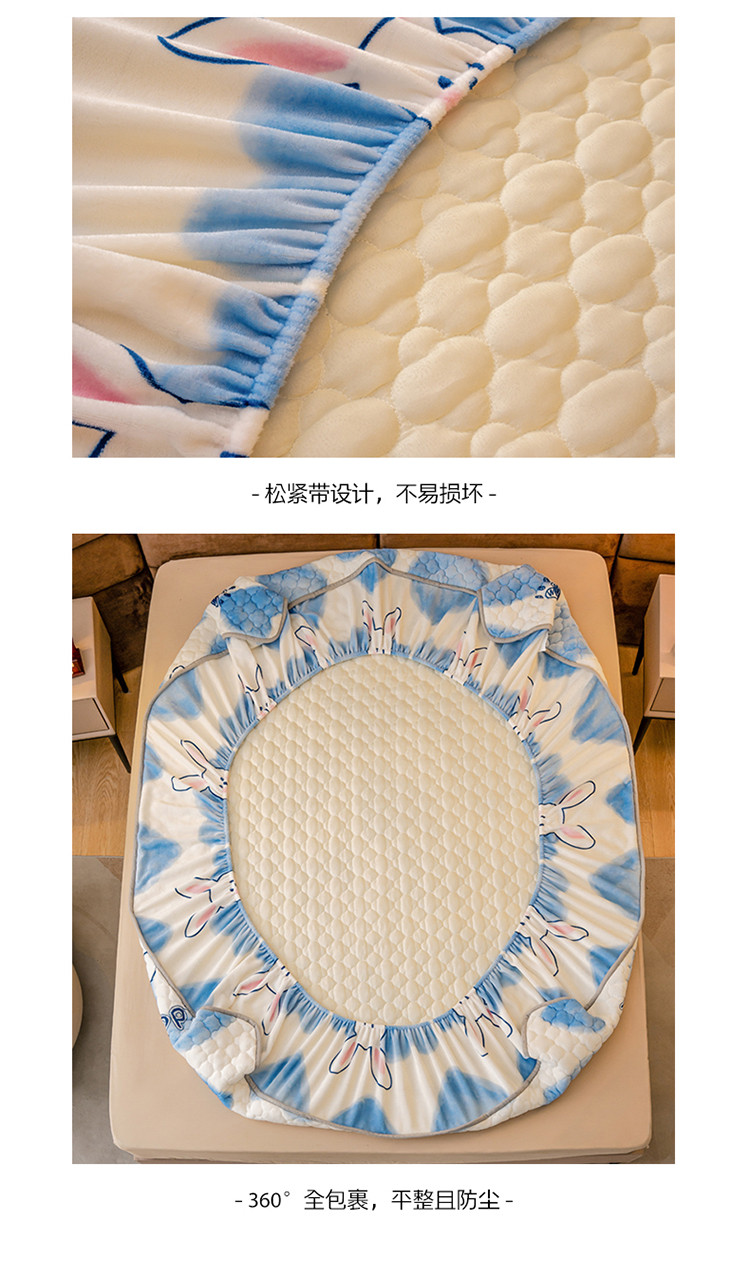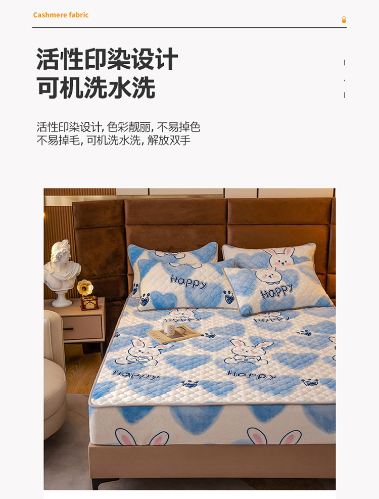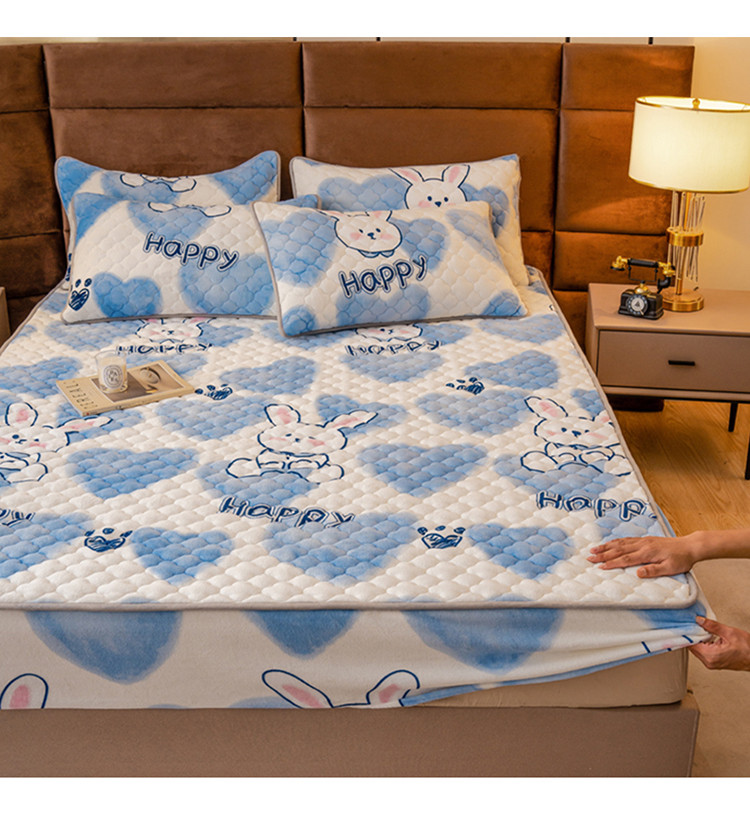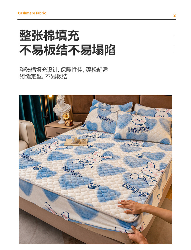 美莱 2022年夹棉加厚牛奶绒床笠单件三件套直播爆款 漫漫兔