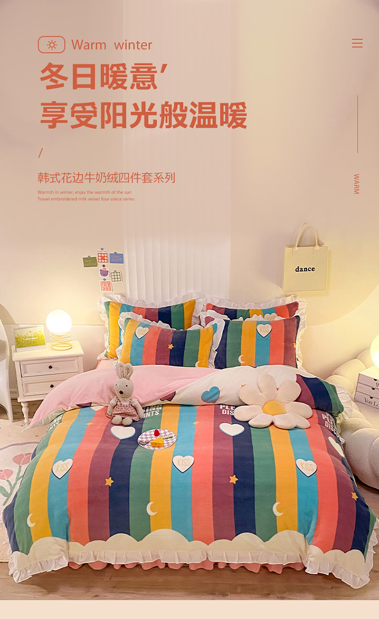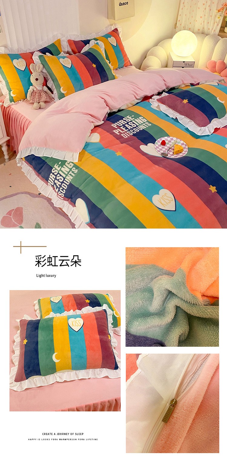当前位置: 91家纺网 > 商品网购 > 床品套件 > 四件套 > 牛奶绒四件套 > 绒兔兔 2022新款印花牛奶绒四件套提供买家秀彩虹云朵
