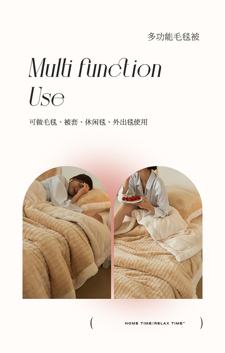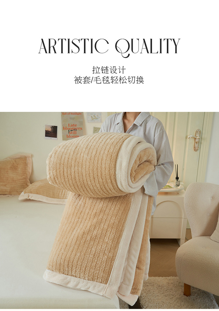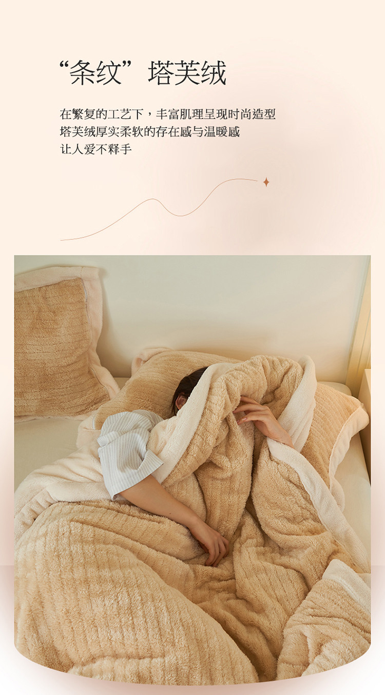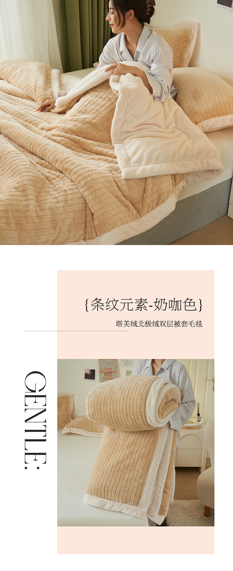 晨曦家纺 2022新款塔芙绒北极绒双层被套毛毯牛奶绒毯子 条纹元素-奶咖色