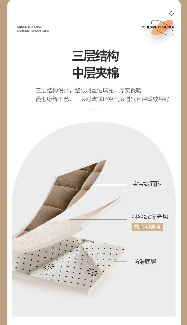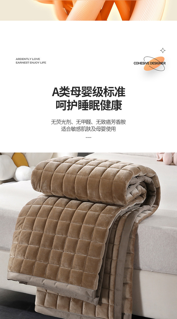 当前位置: 91家纺网 > 商品网购 > 床垫/床褥/床护垫 > 普通床垫 > 东宇 2022新款直播供货A类母婴级高克重宝宝绒床垫 咖啡金