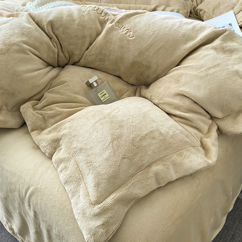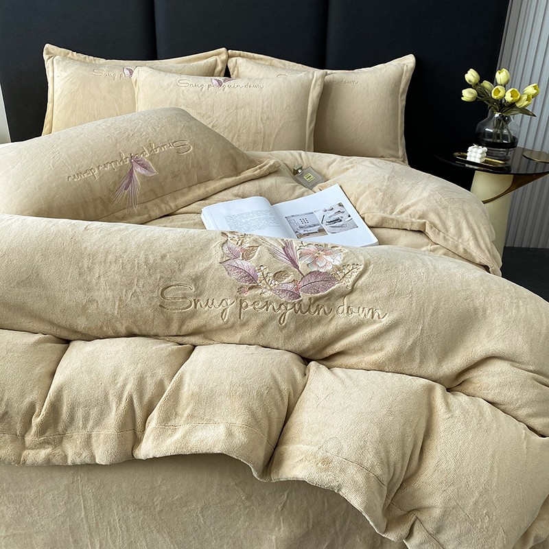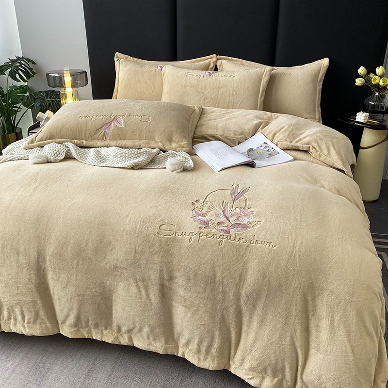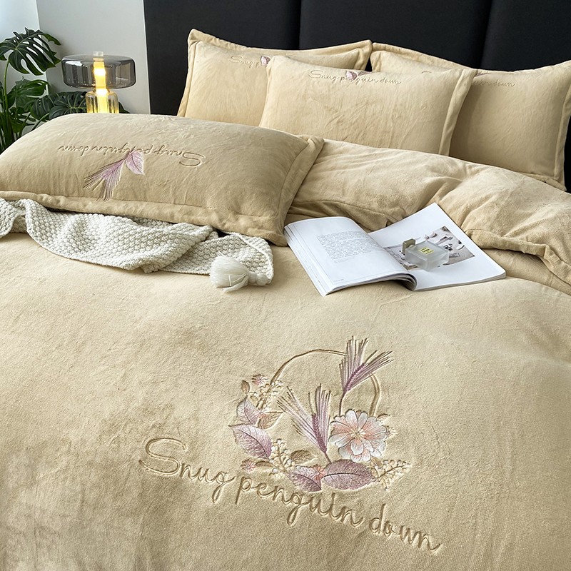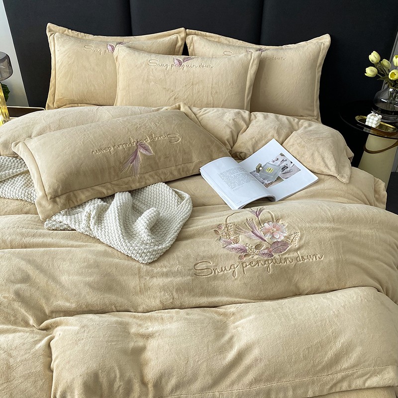 云锦 2022新款230g牛奶绒全消光四件套-含情麦麦 含情麦麦-卡其