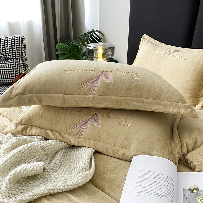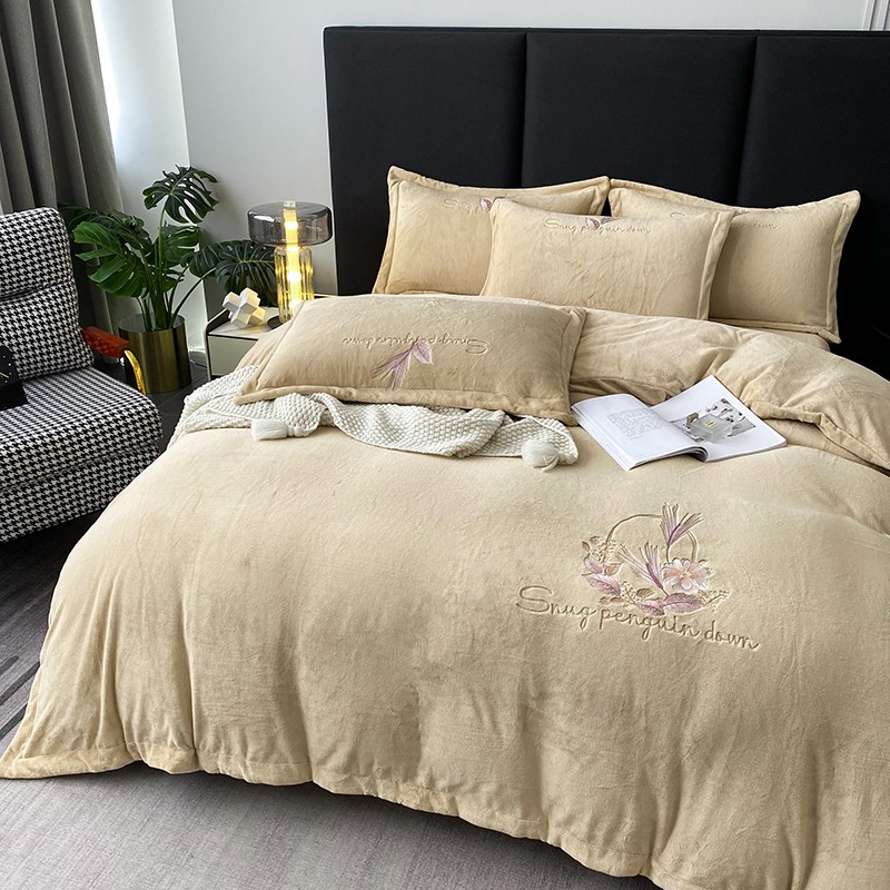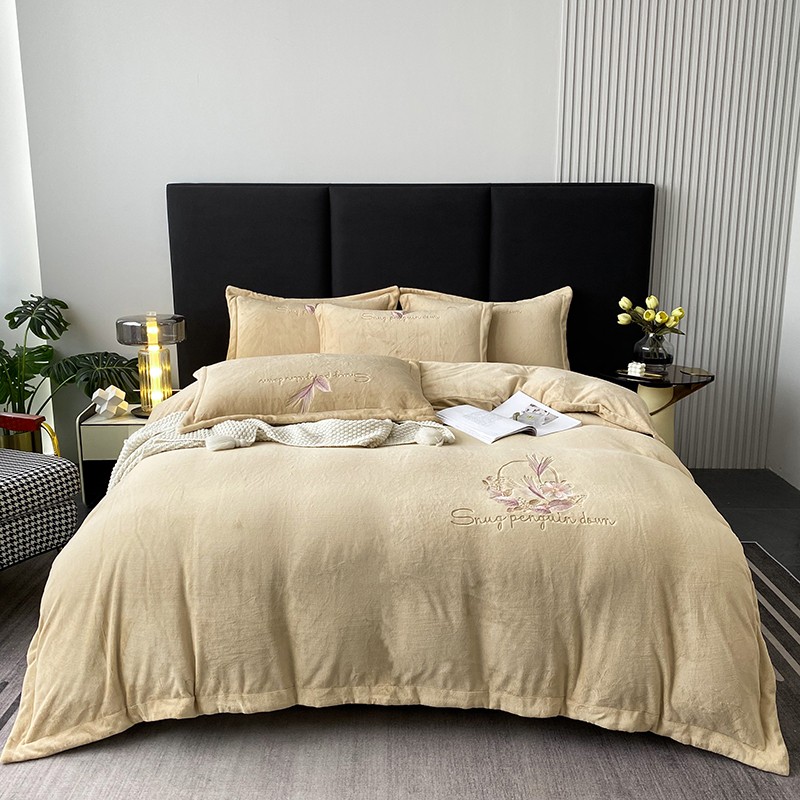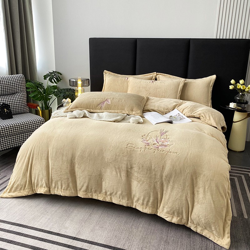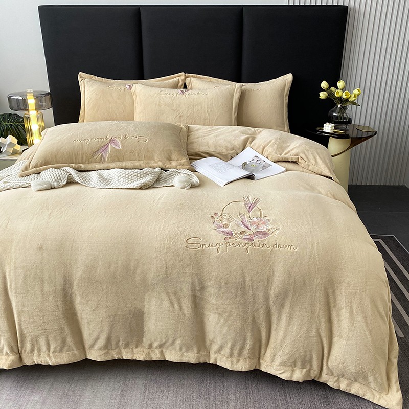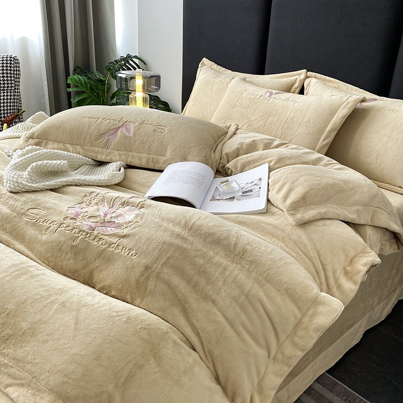 云锦 2022新款230g牛奶绒全消光四件套-含情麦麦 含情麦麦-卡其