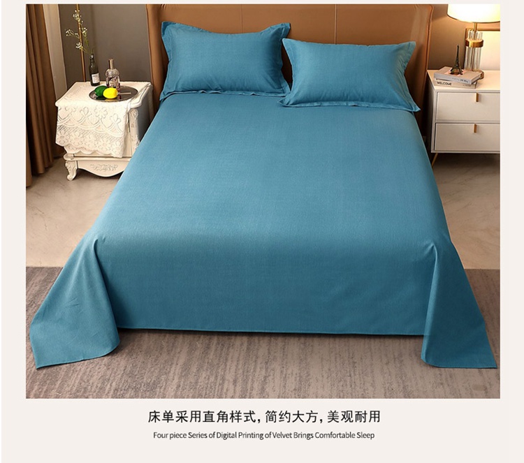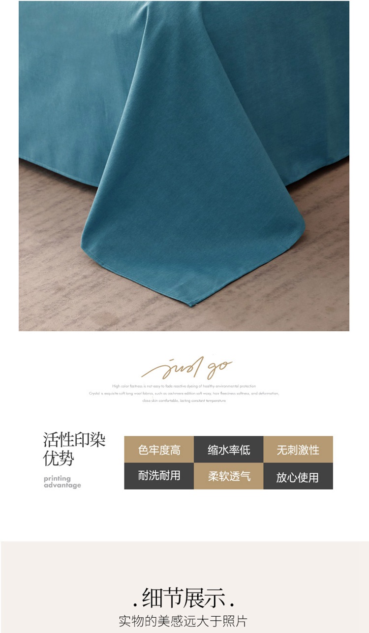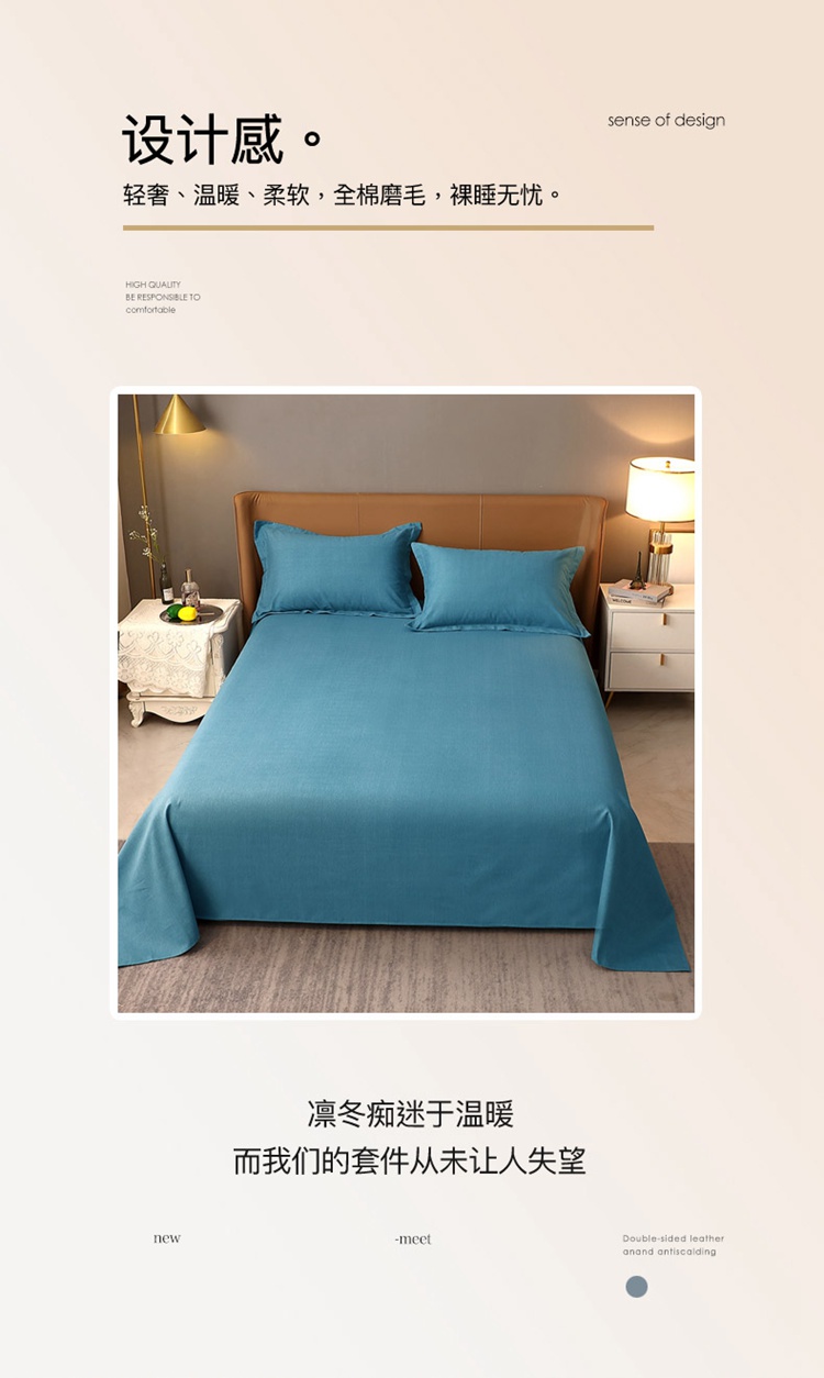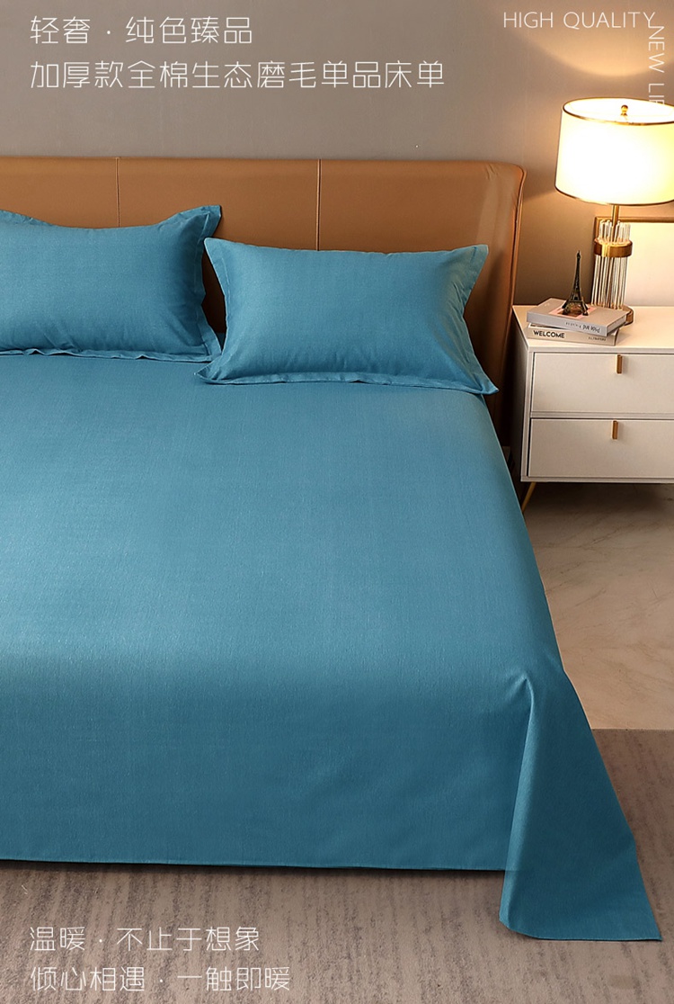 晶缦家纺 2022新款加厚全棉纯色生态磨毛多规格系列单床单 纯依-湖蓝