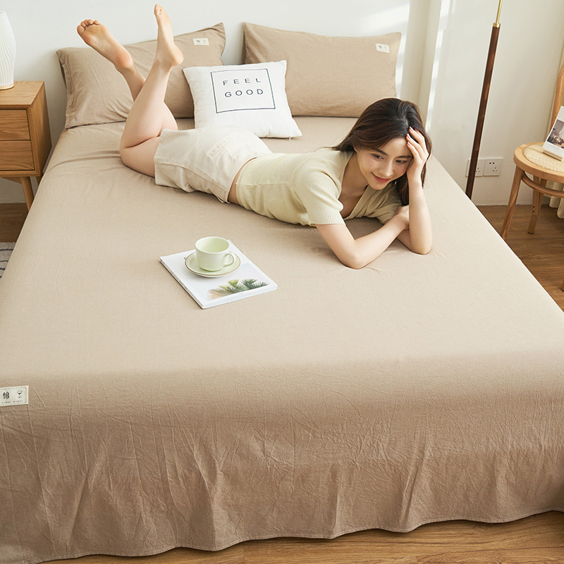 21度C 2023新款A类全棉色织水洗棉单品床单 洛卡-卡其
