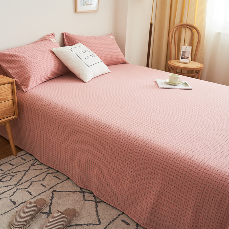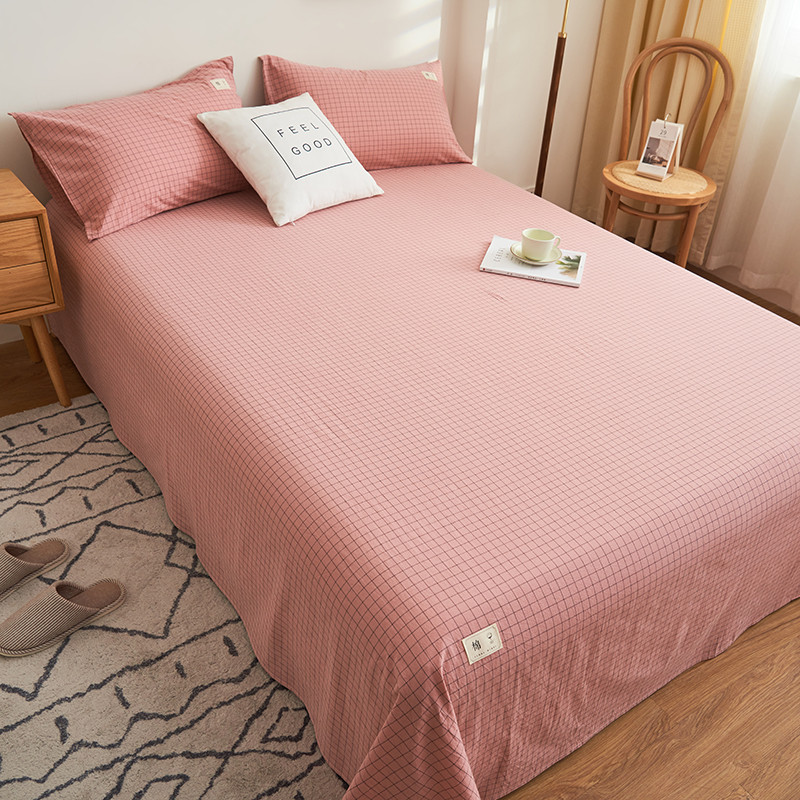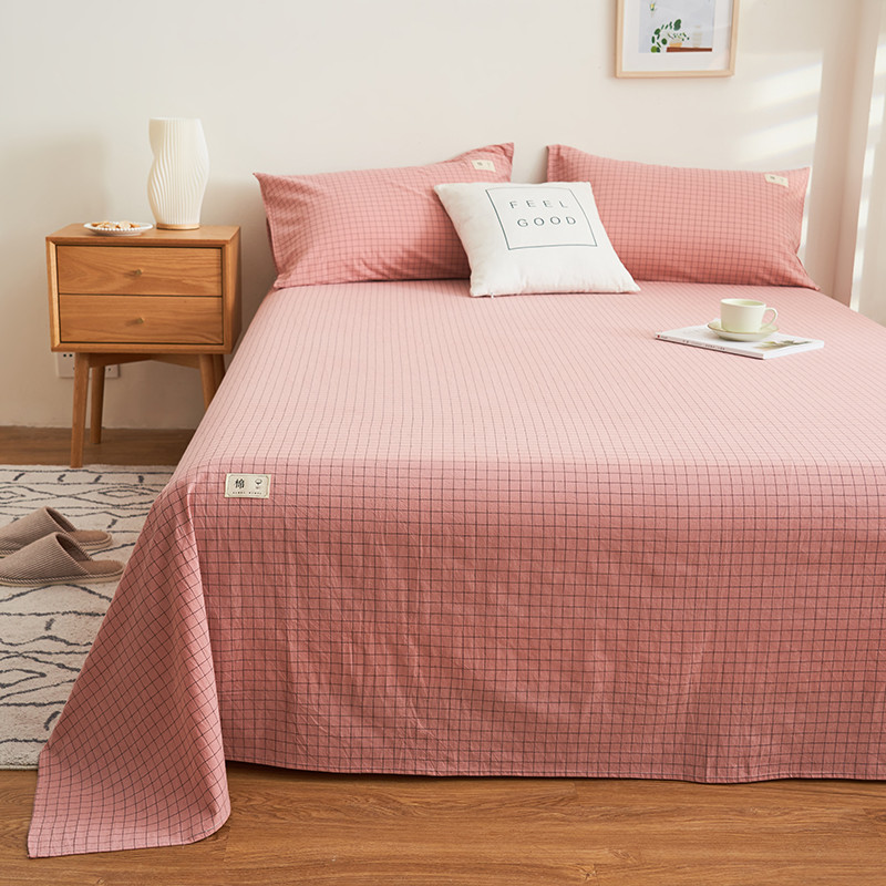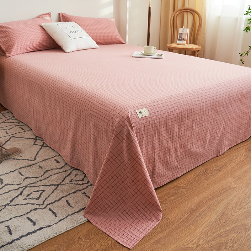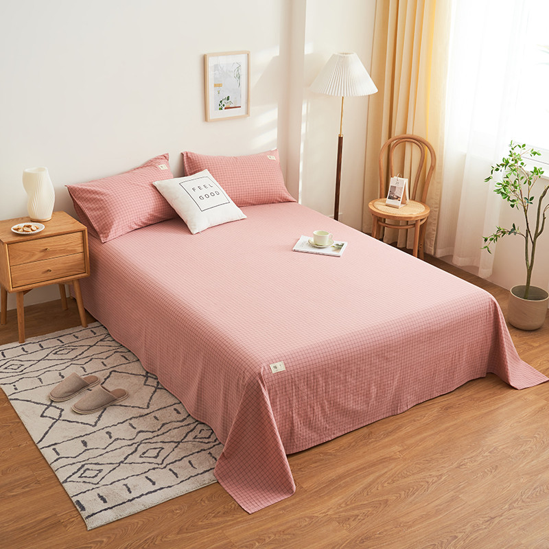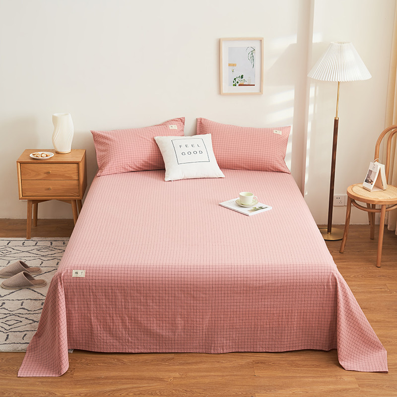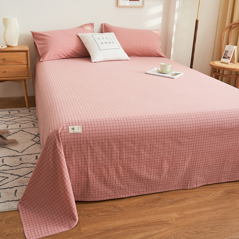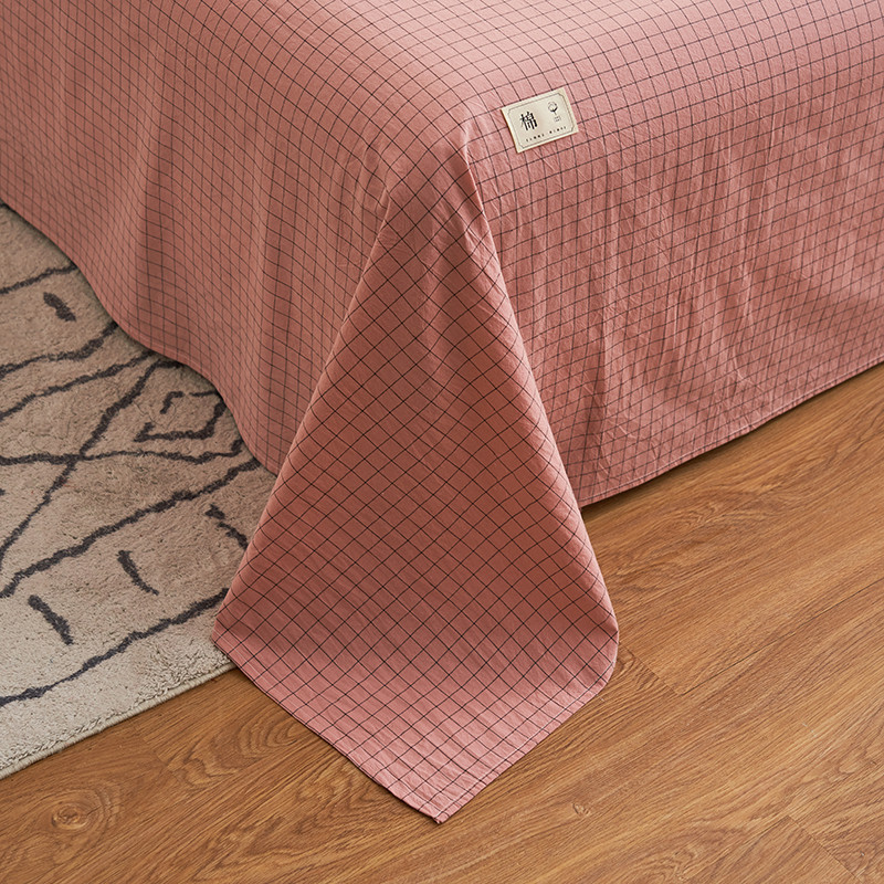 21度C 2023新款A类全棉色织水洗棉单品床单 细小格豆沙