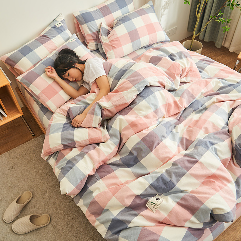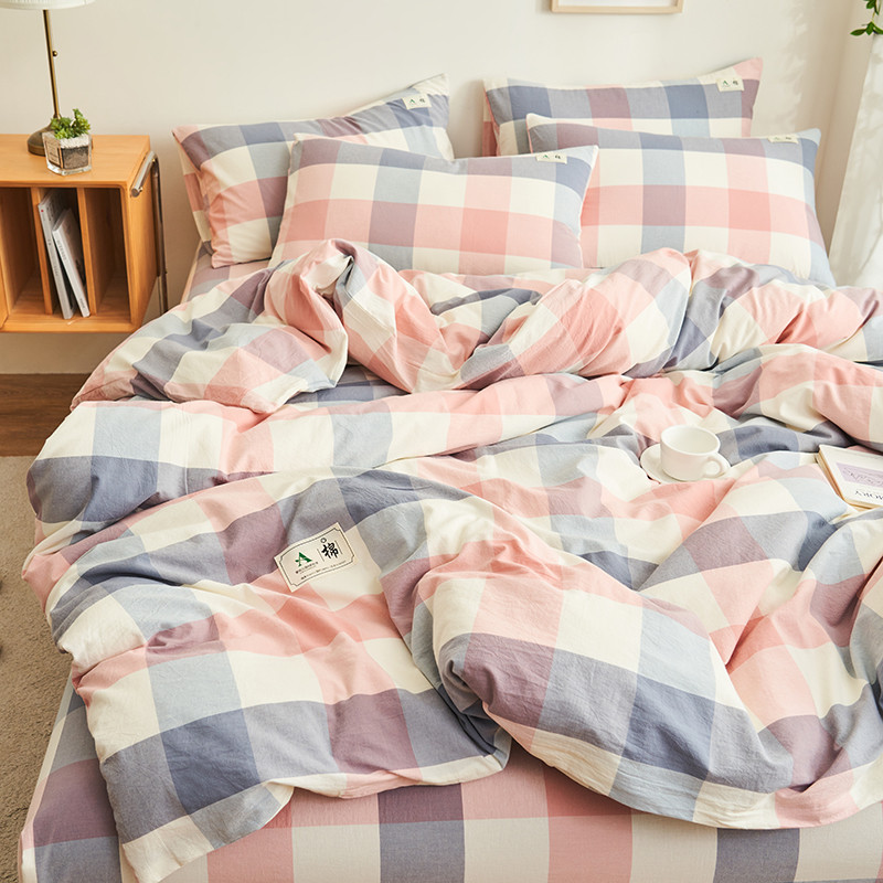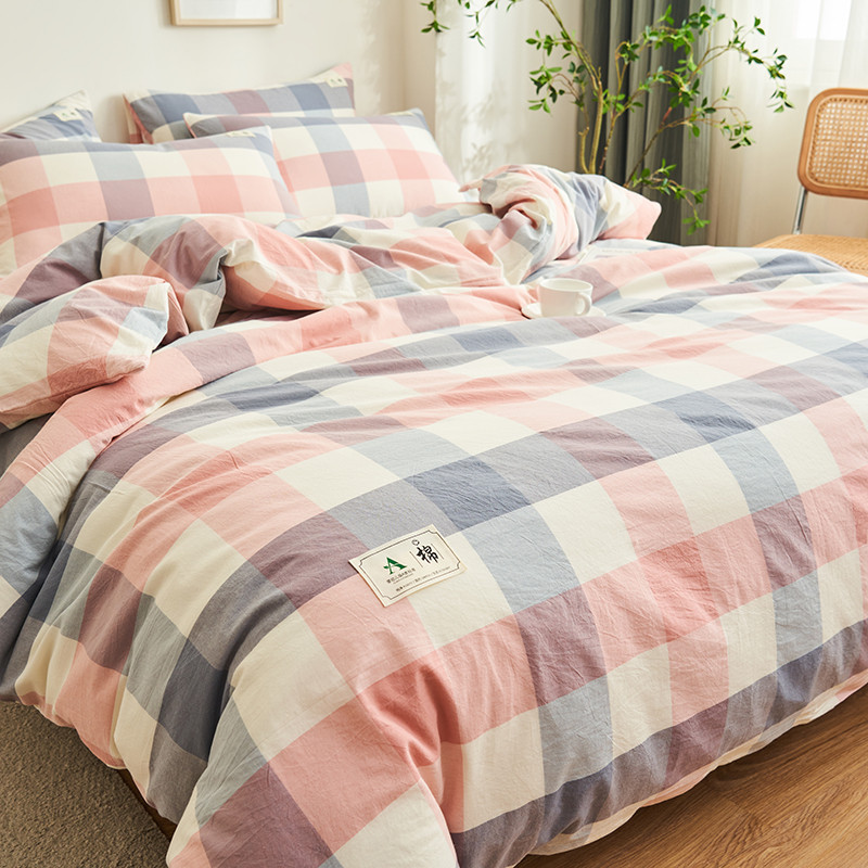• 91家纺网 家纺一手货源 找家纺 21度C 2023新款A类全棉色织水洗棉单品被套 格韵粉