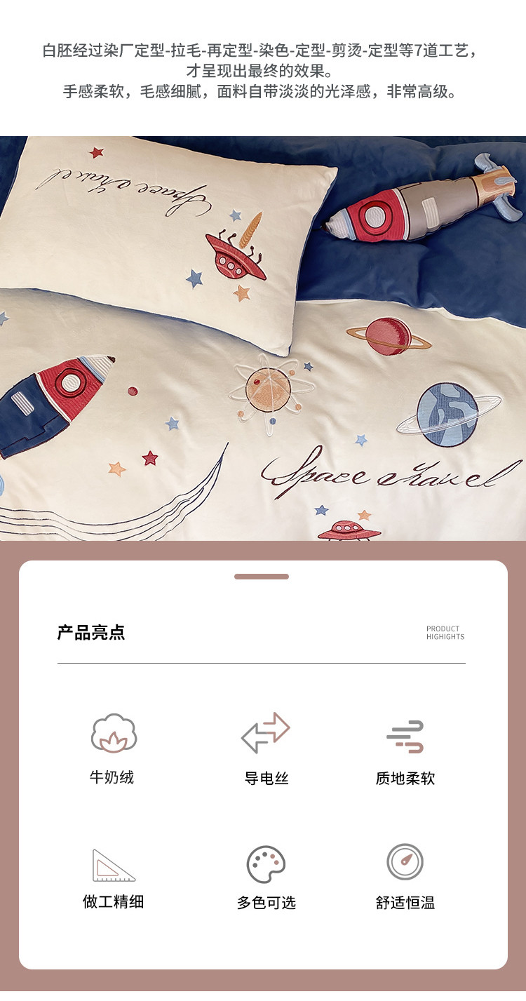 商品名称:(总)西西家居 2022新款全消光牛奶绒四件套-小火箭