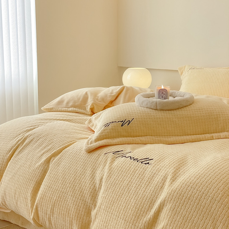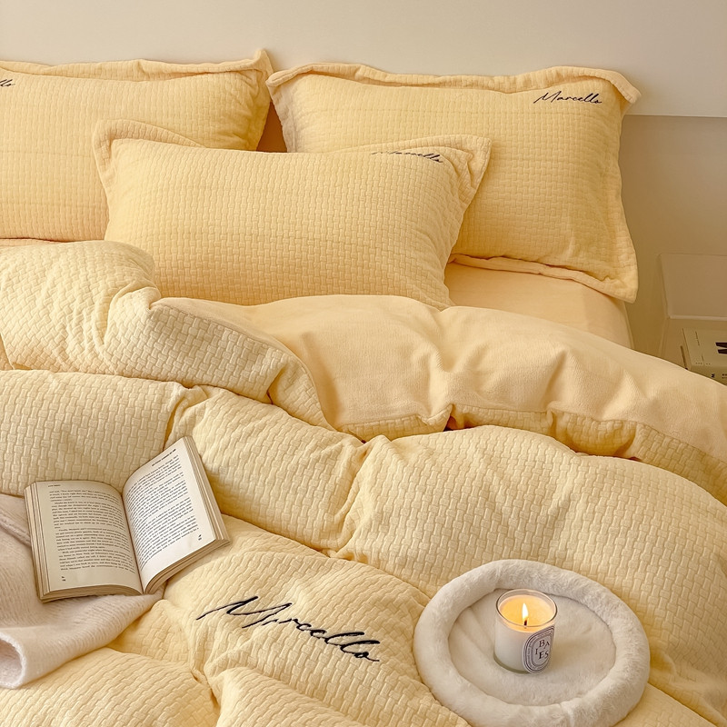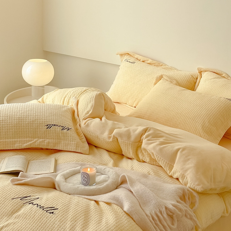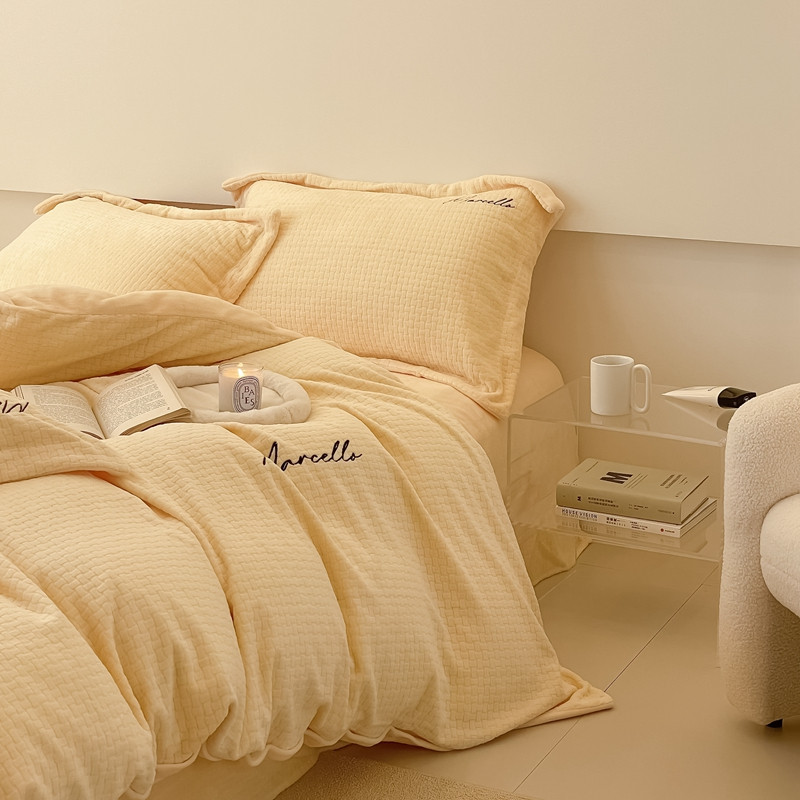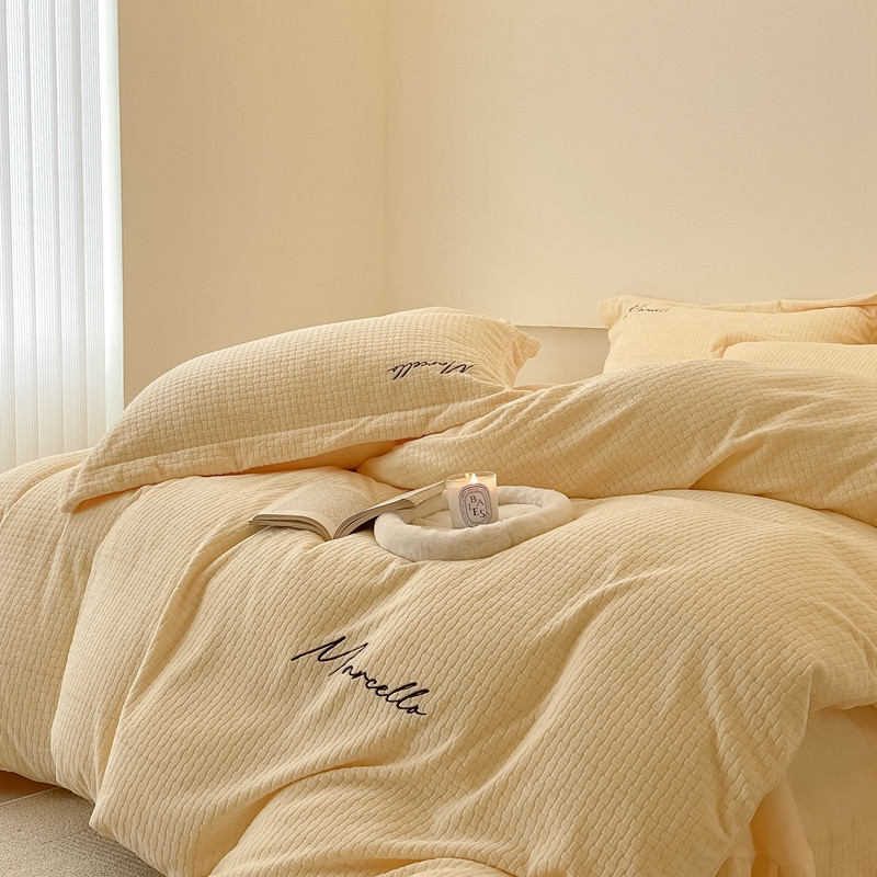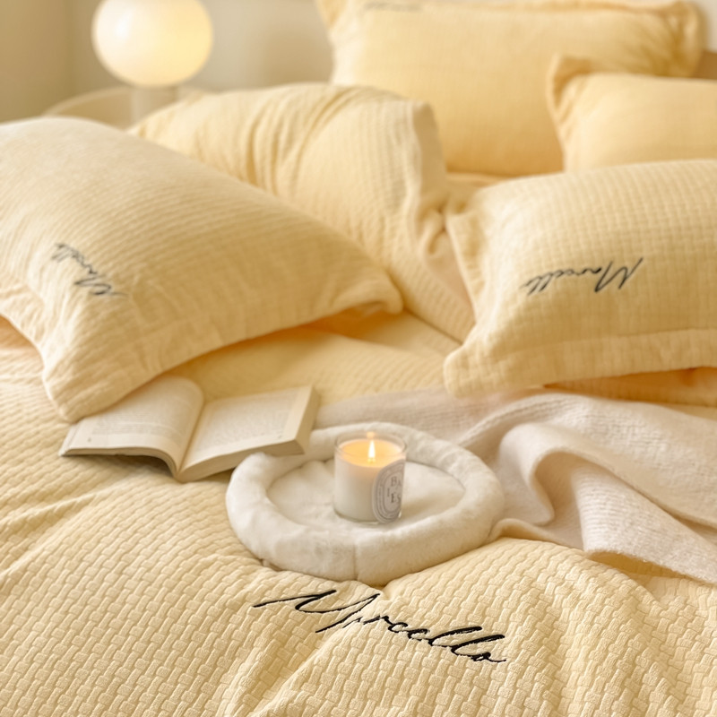 商品名称:潘朵拉 2022新款编织刺绣牛奶绒四件套 编织黄