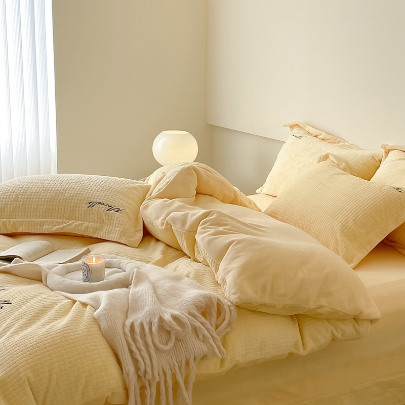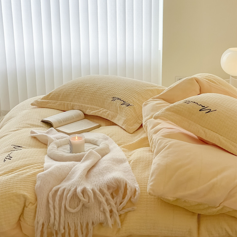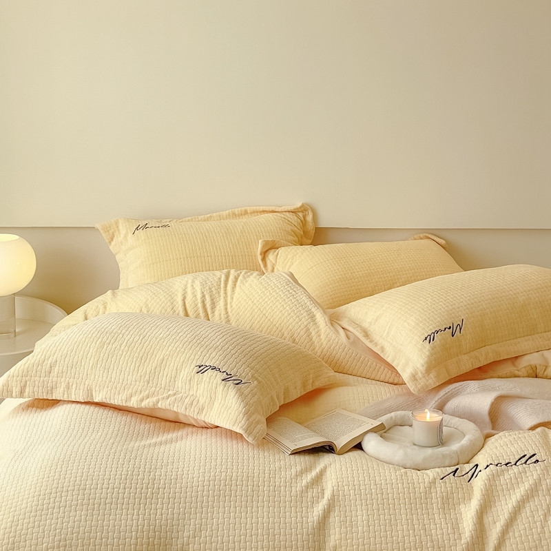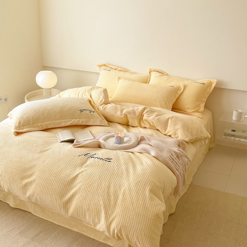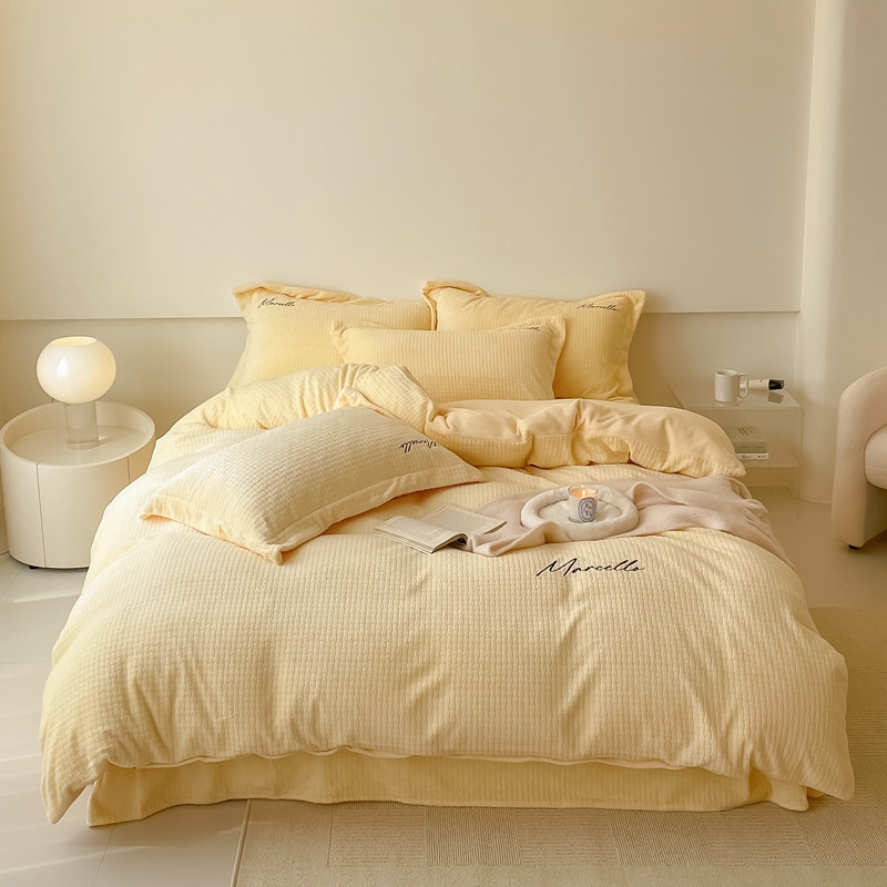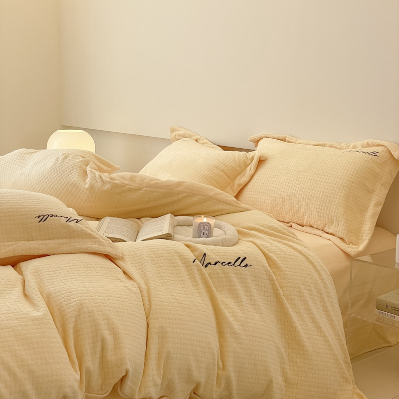 商品名称:潘朵拉 2022新款编织刺绣牛奶绒四件套 编织黄