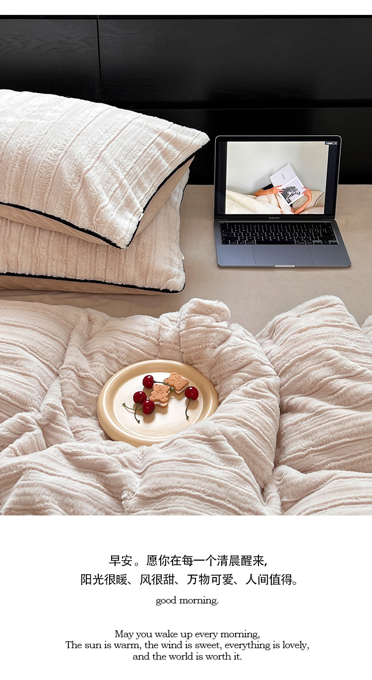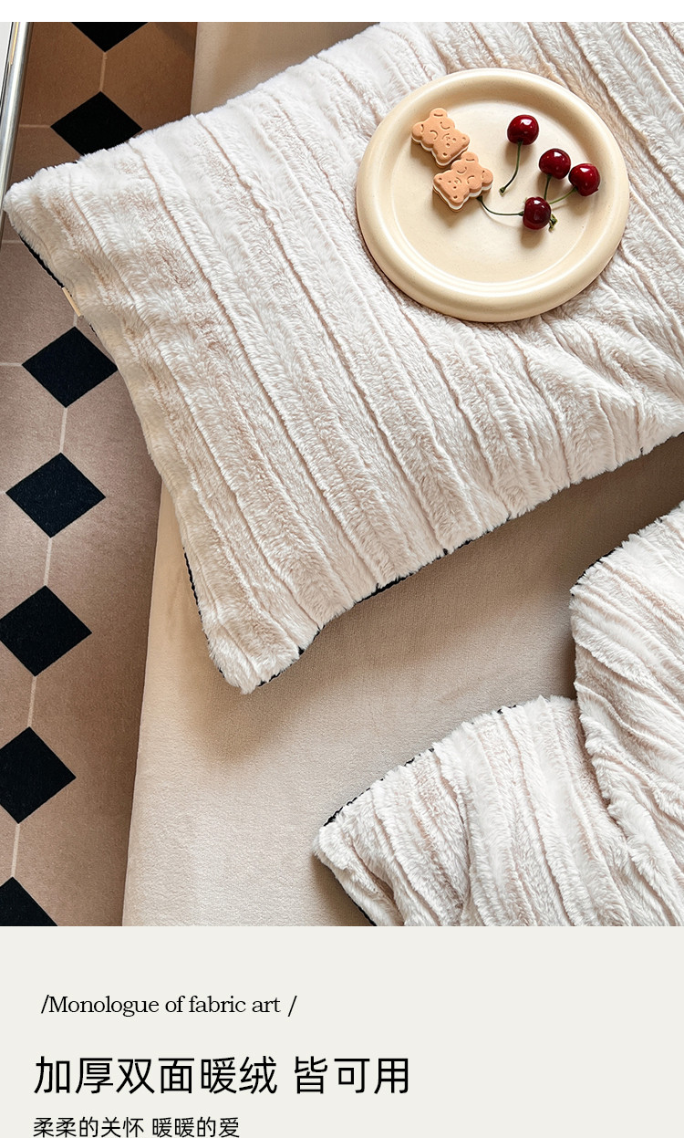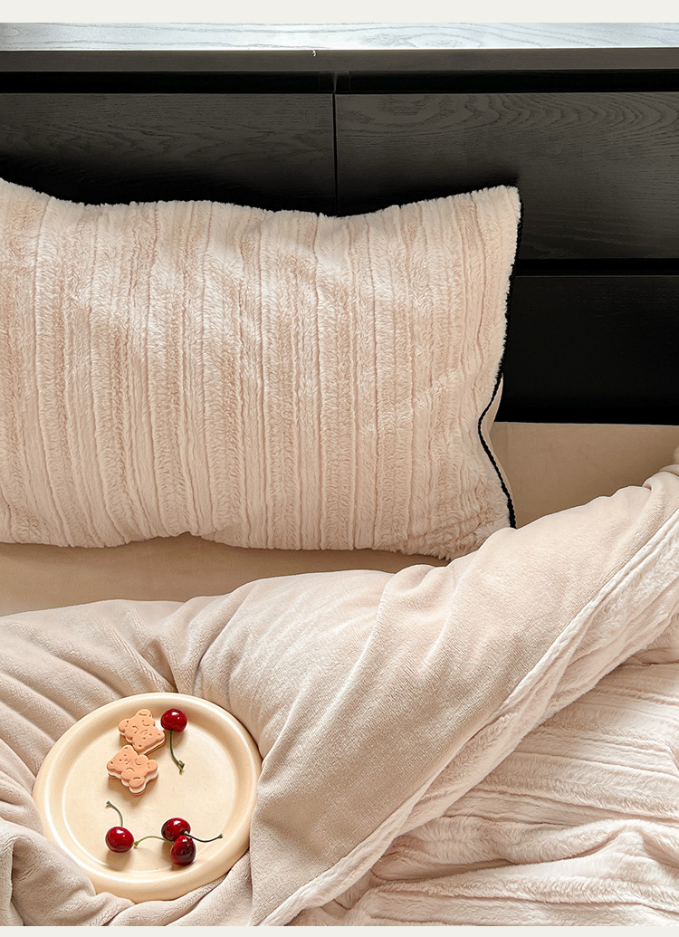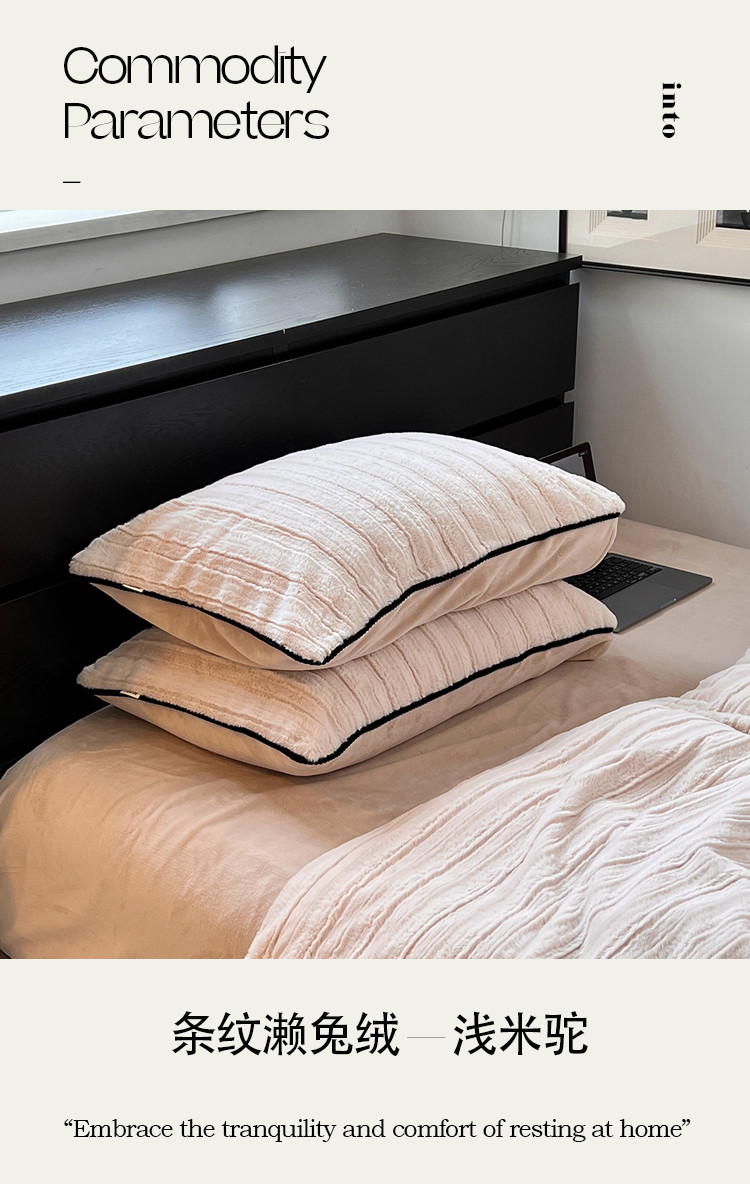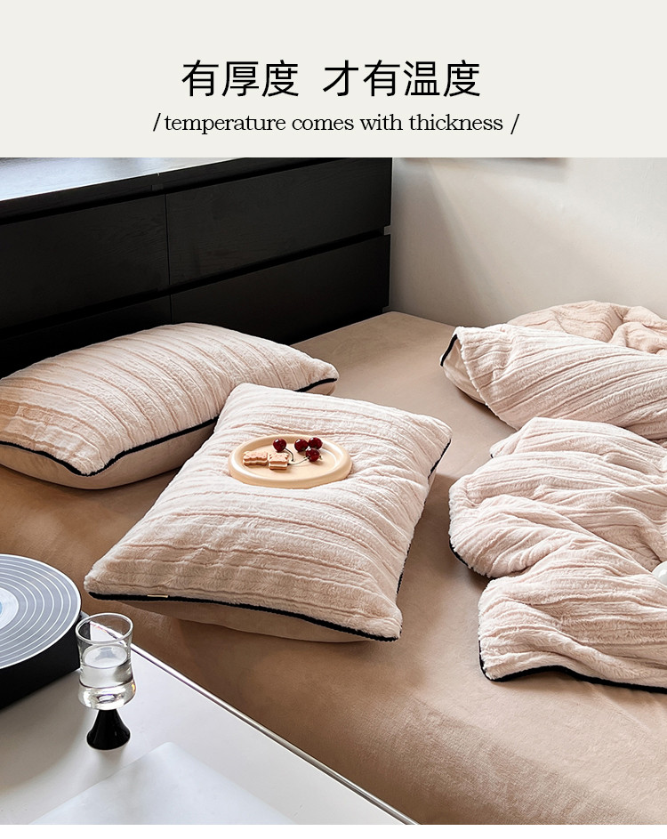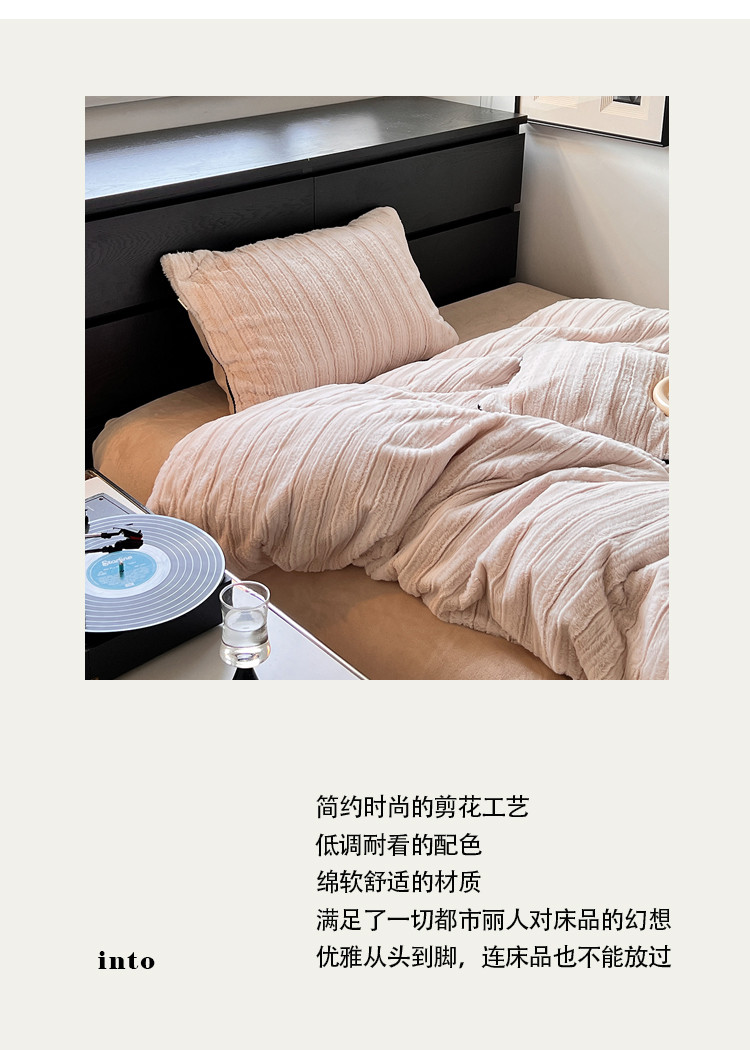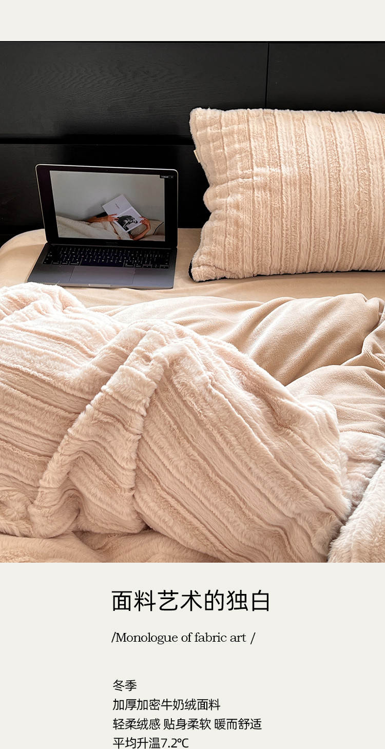 商品名称:桔子家纺 2022新款条纹濑兔毛绒系列四件套 浅米驼
