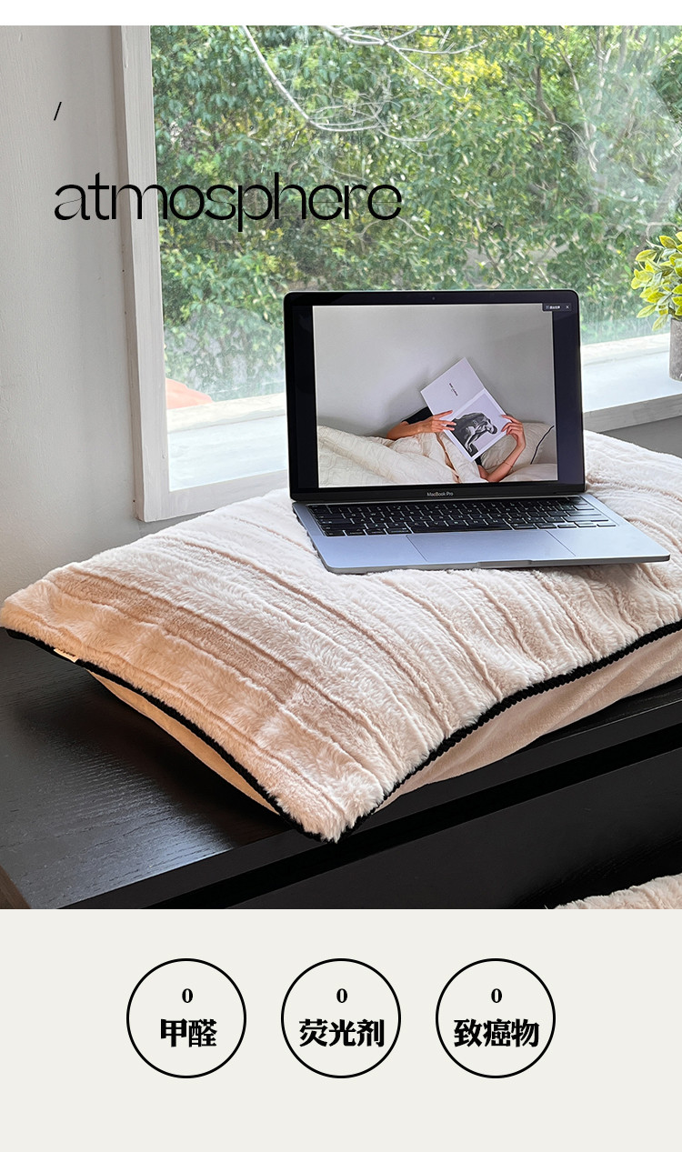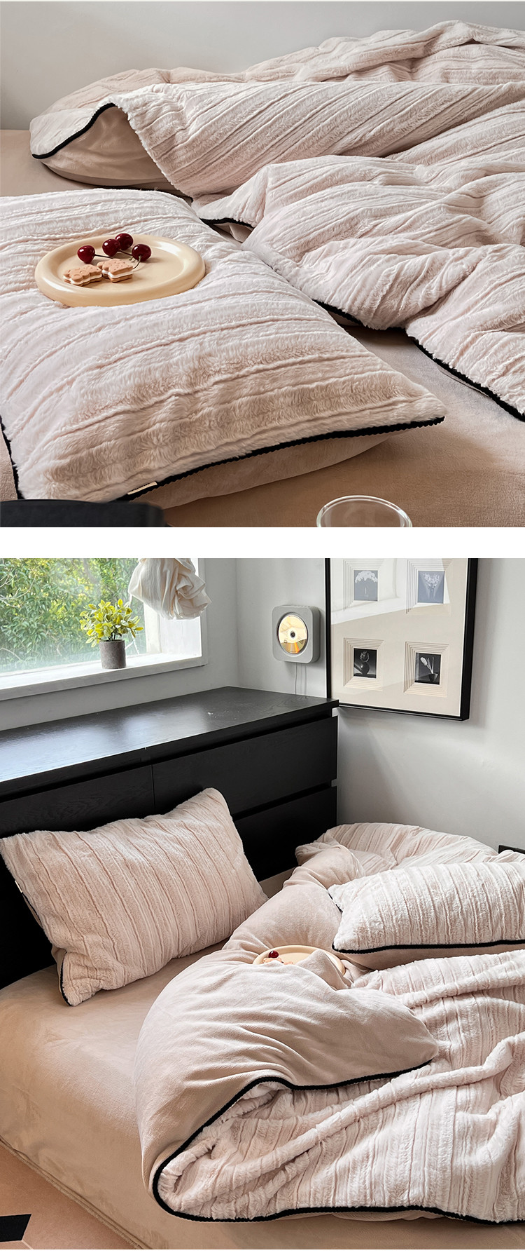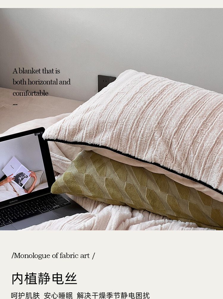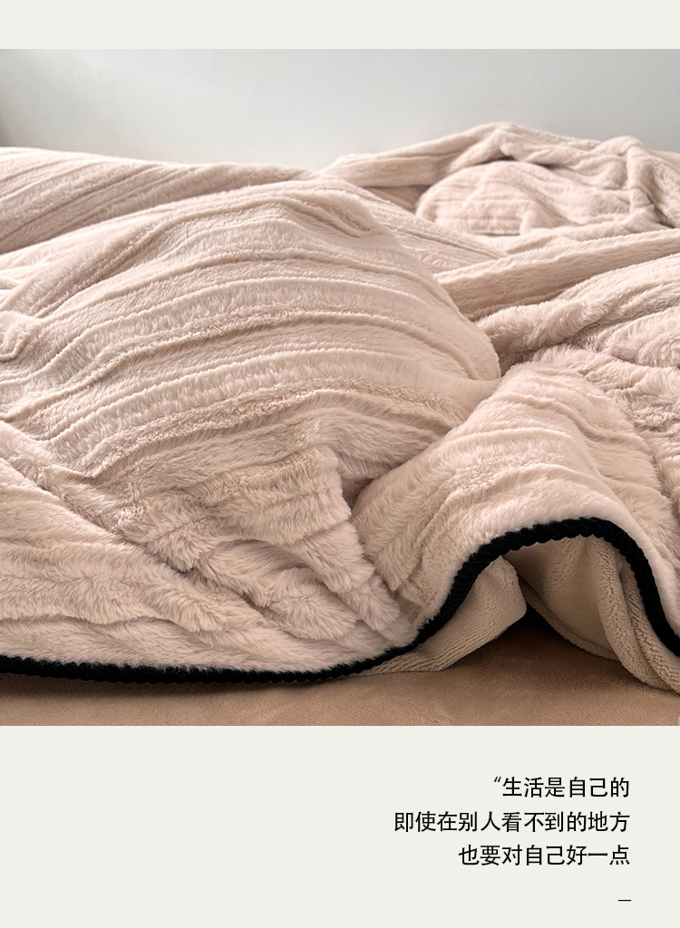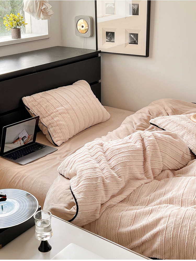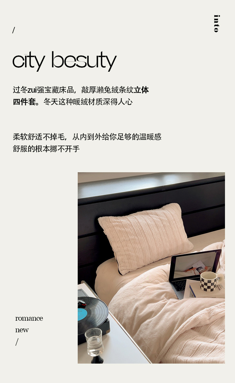 商品名称:桔子家纺 2022新款条纹濑兔毛绒系列四件套 浅米驼
