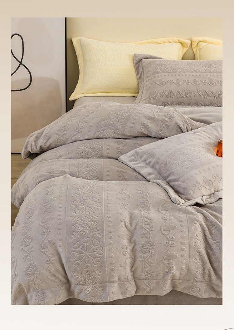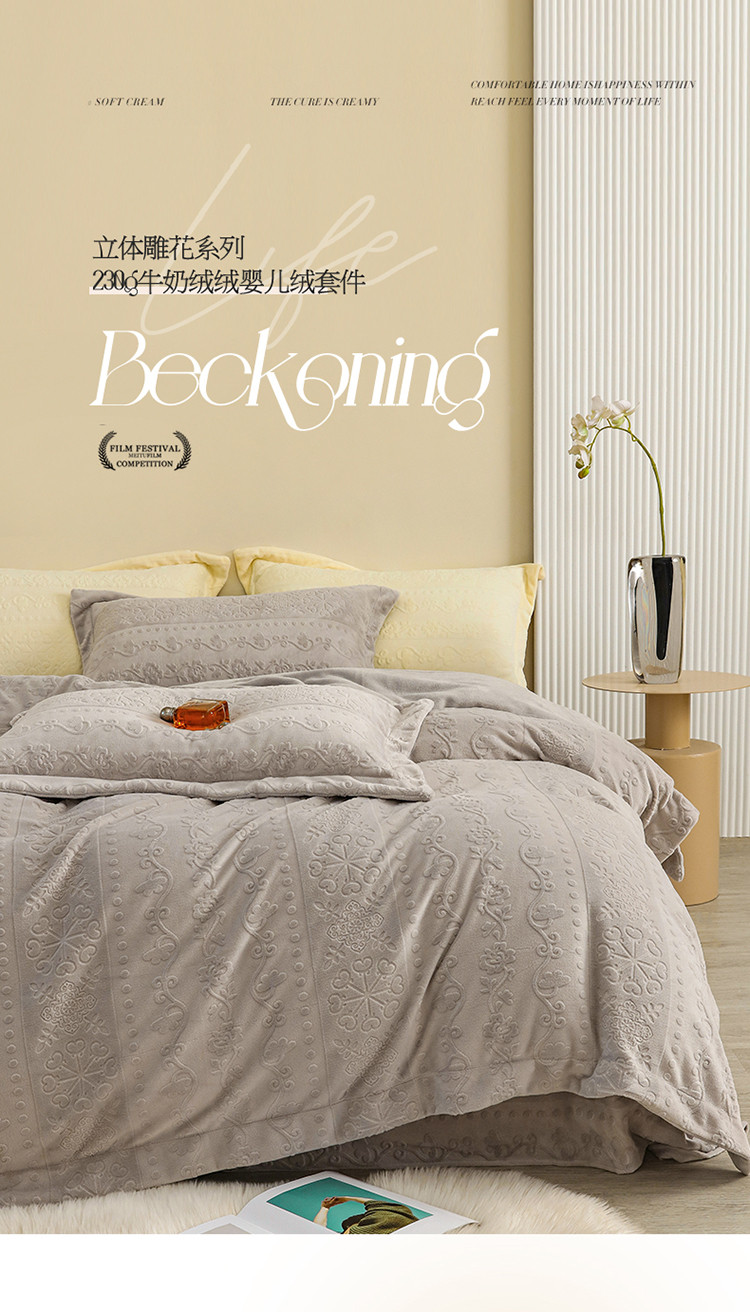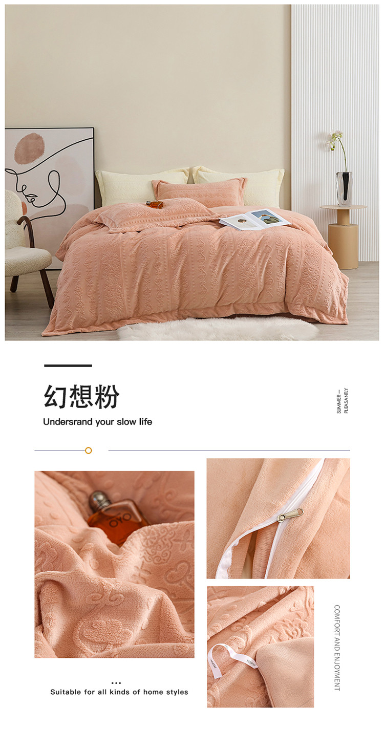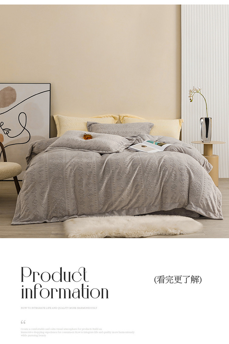总名品优仓 2022新款辛西娅系列230g牛奶绒雕花四件套