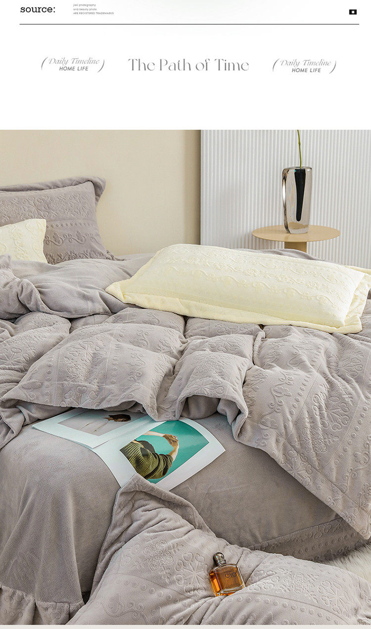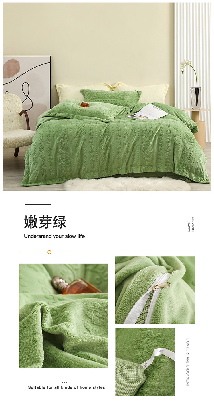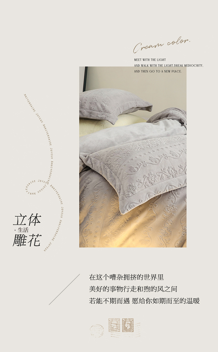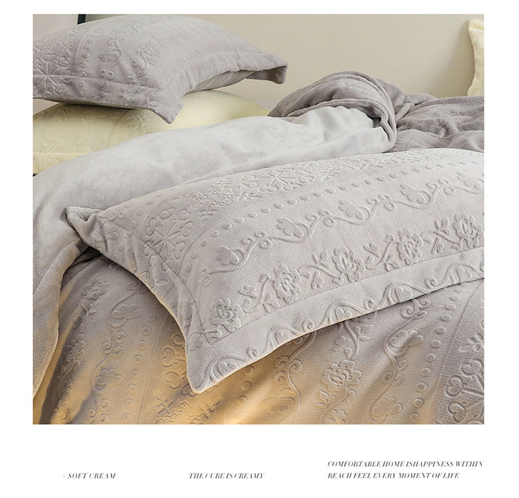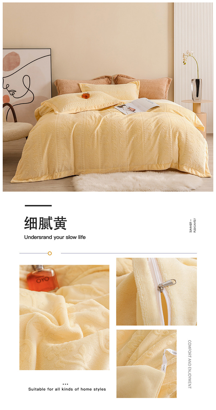 总名品优仓 2022新款辛西娅系列230g牛奶绒雕花四件套