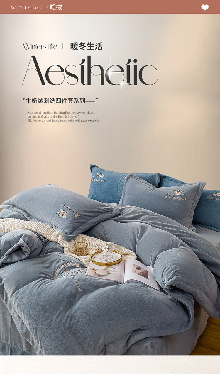 (总)名品优仓 2025新款220克牛奶绒绣花四件套-珊瑚,珊瑚-宝石蓝,珊瑚-粉色,珊瑚-姜黄,珊瑚-米杏,珊瑚-沫粉,珊瑚-杏粉