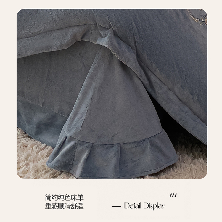 商品名称:名品优仓 2022新款图兰朵系列牛奶绒刺绣四件套 图兰朵-慕灰色